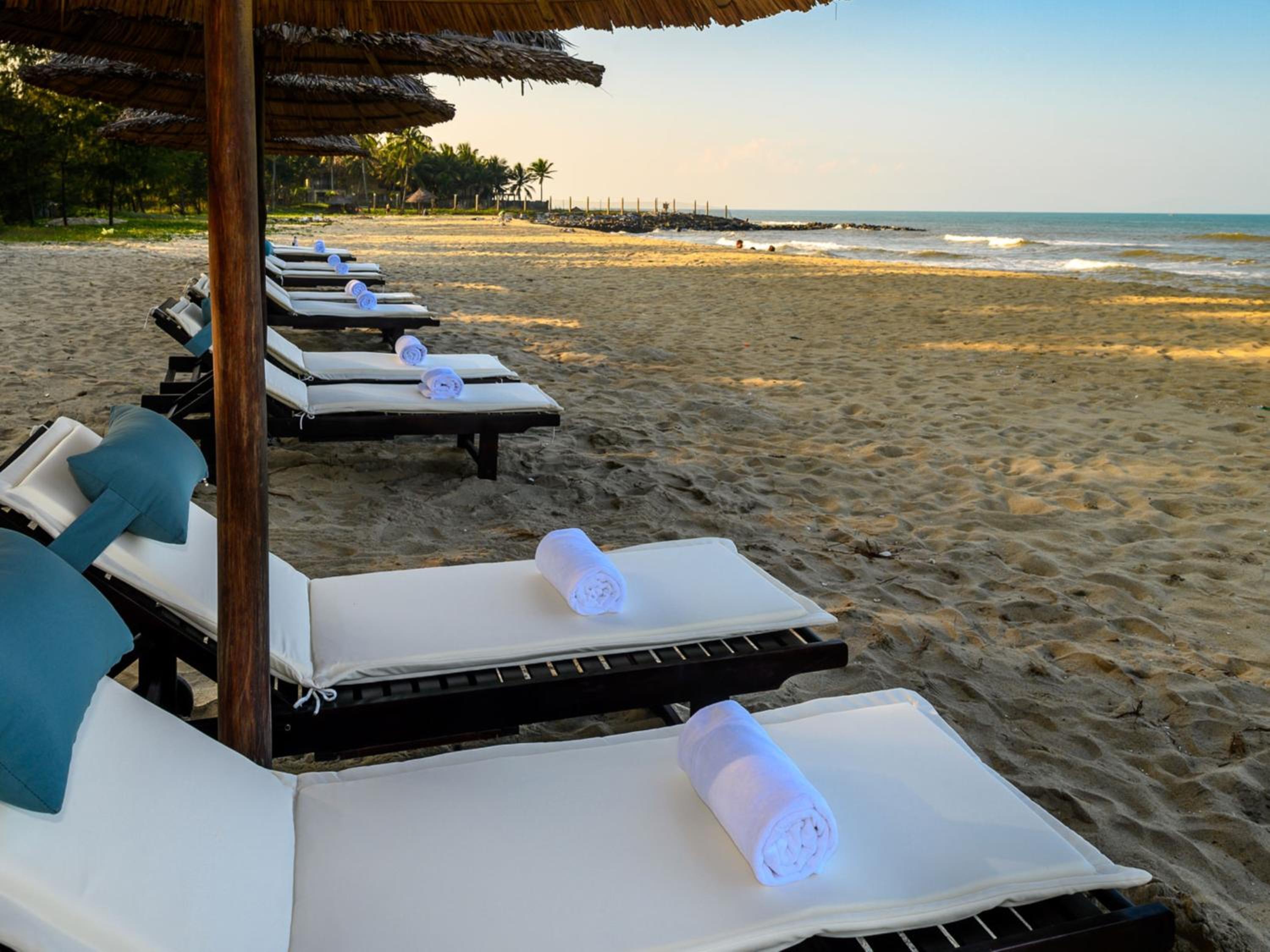 Пляж и дорога до пляжа. Скопление мусора по дороге на пляж даже из окна. На пляже как сироты стоят 3-4 покосившихся зонтика и 7-8 старых лежаков. Лежаки разные все, как будто их собрали из разных отелей. Пляж дикий, неухоженный совсем. Ты как будто попал случайно сюда, за пляжем никто не смотрит. Мы забронировали отель на 4 суток, в итоге прожили ночь и уехали в Дананг. Больше сюда не вернусь.