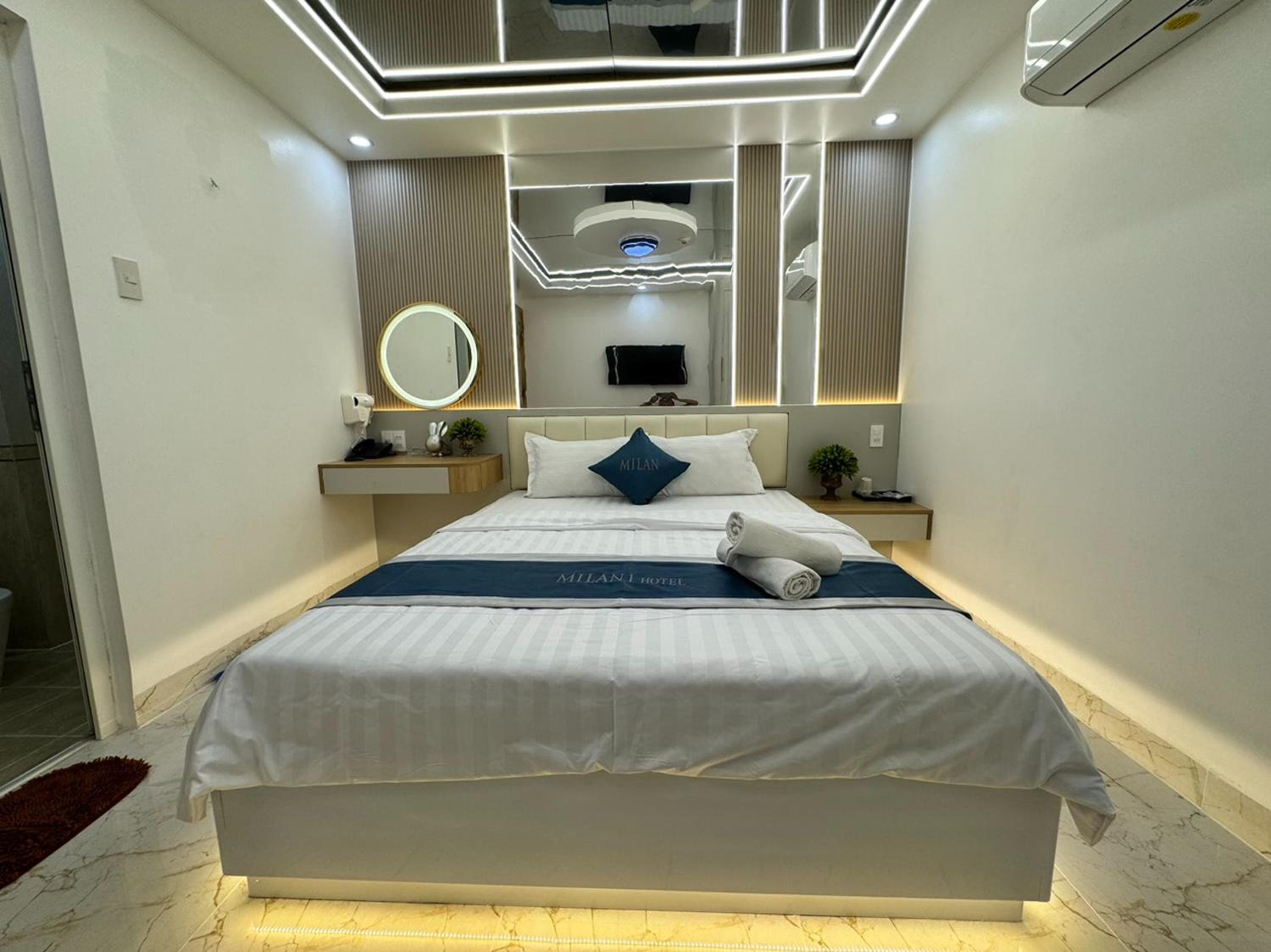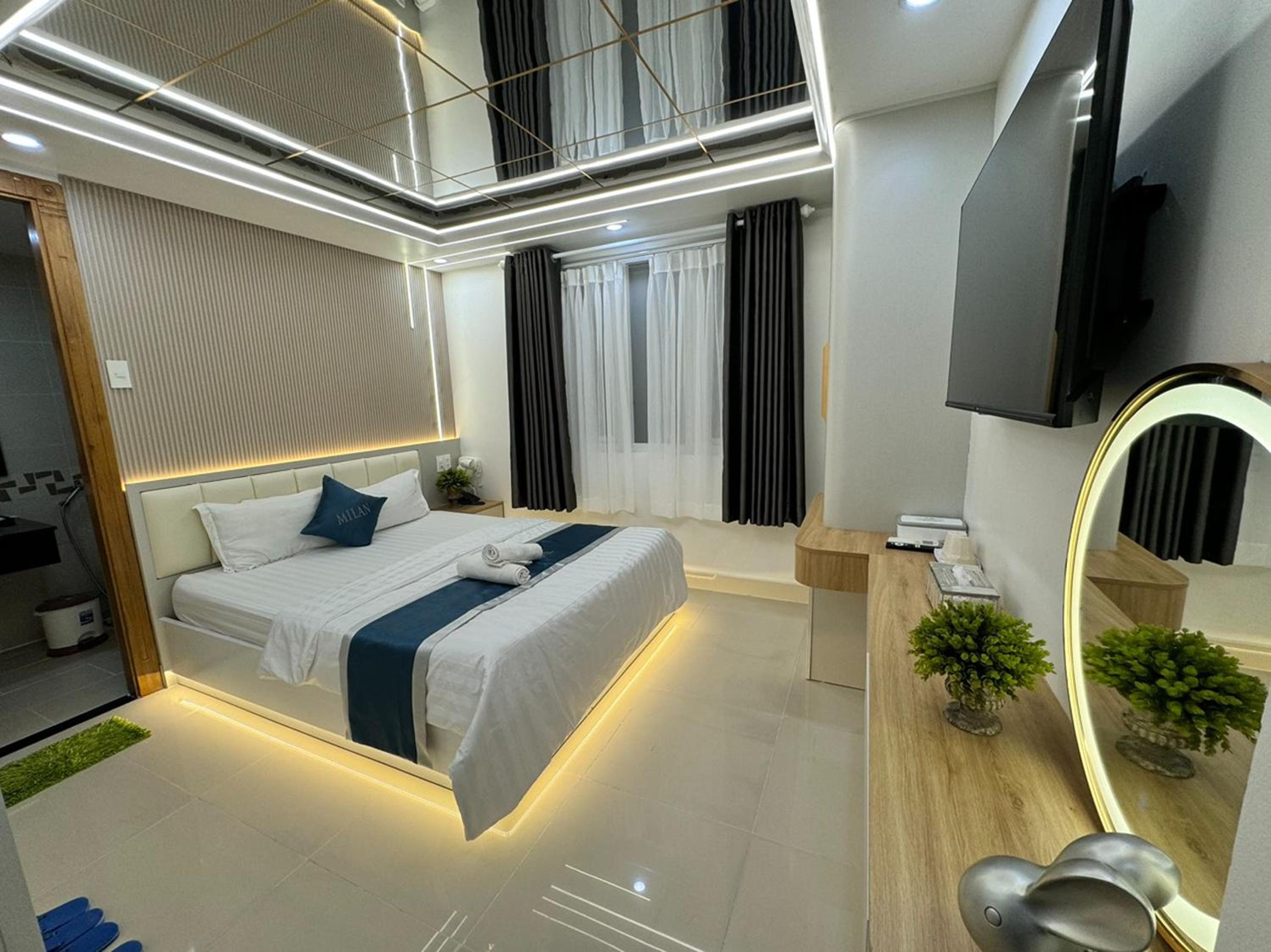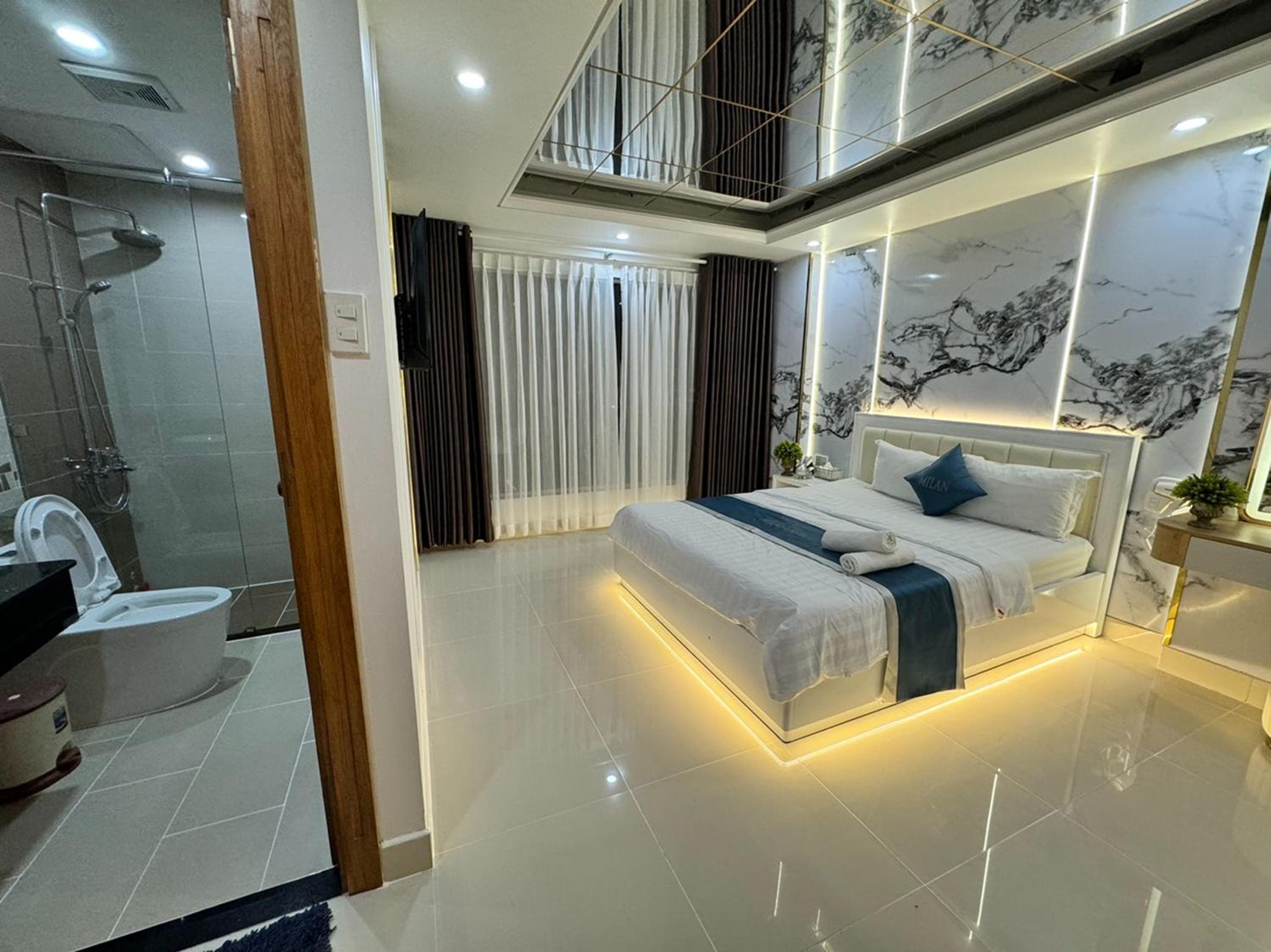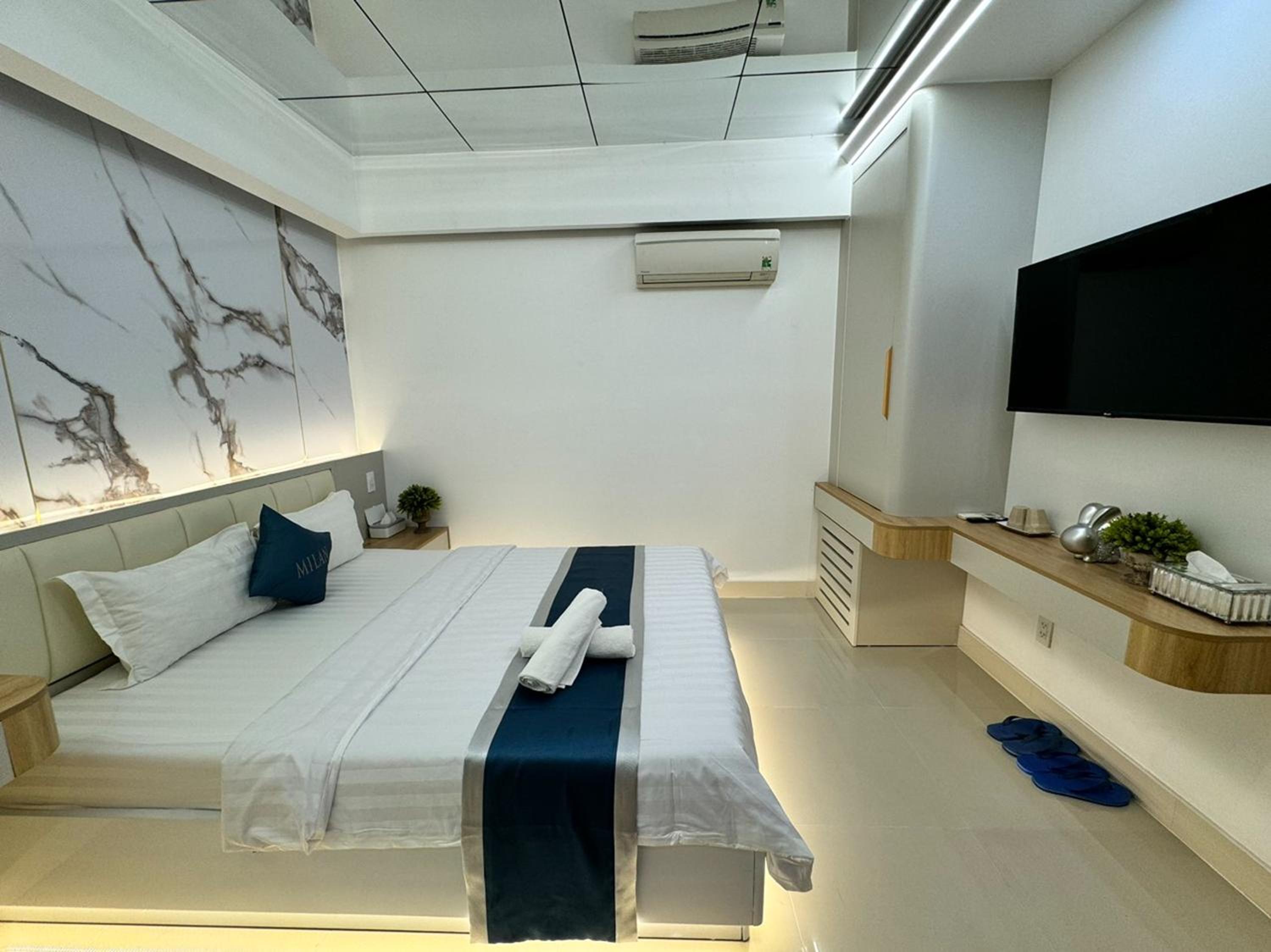 Experience modern comforts at Ngoc San San Hotel, equipped with air conditioning, flat-screen TVs, and free WiFi.