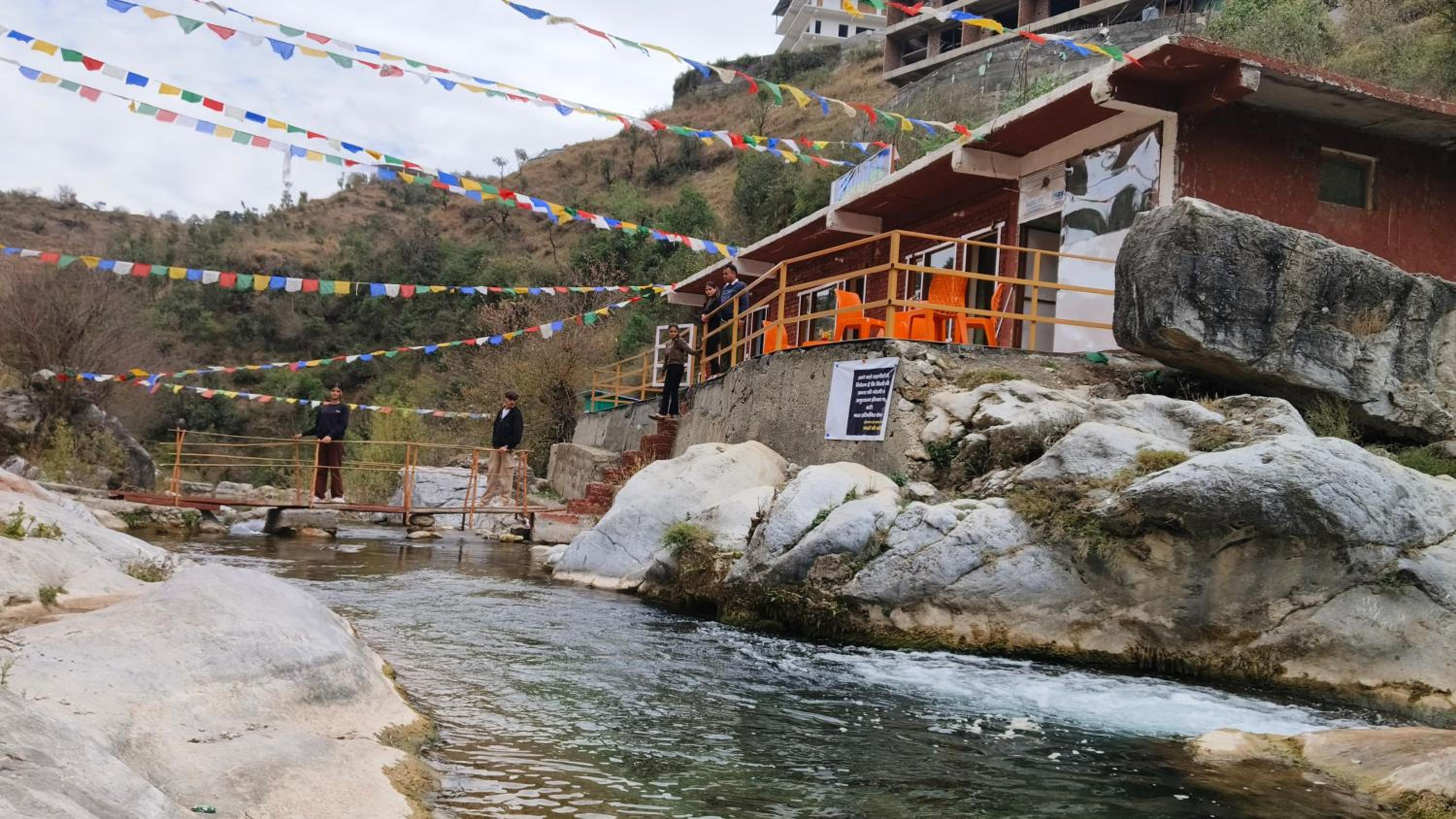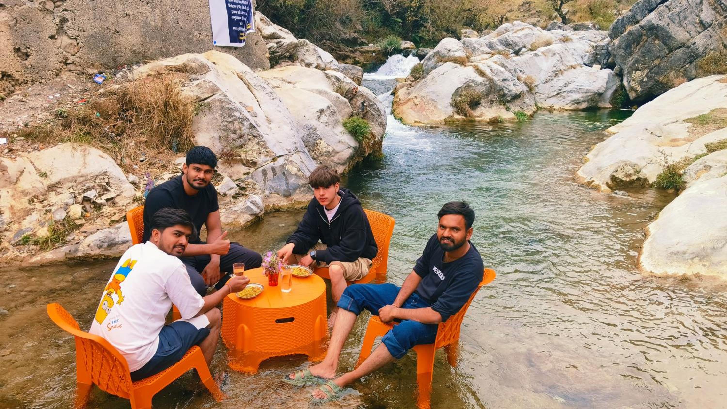 The location is beautiful but it is difficult to reach. It is a difficult hike. Only young people can climb up and down. Next to the river and the sounds of the river make you feel calm. You can spend the whole day sitting on the chair in the river. The road down from the hotel to Kempty falls is lovely and is a 20 minute hike. The staff is nice and helpful and polite.