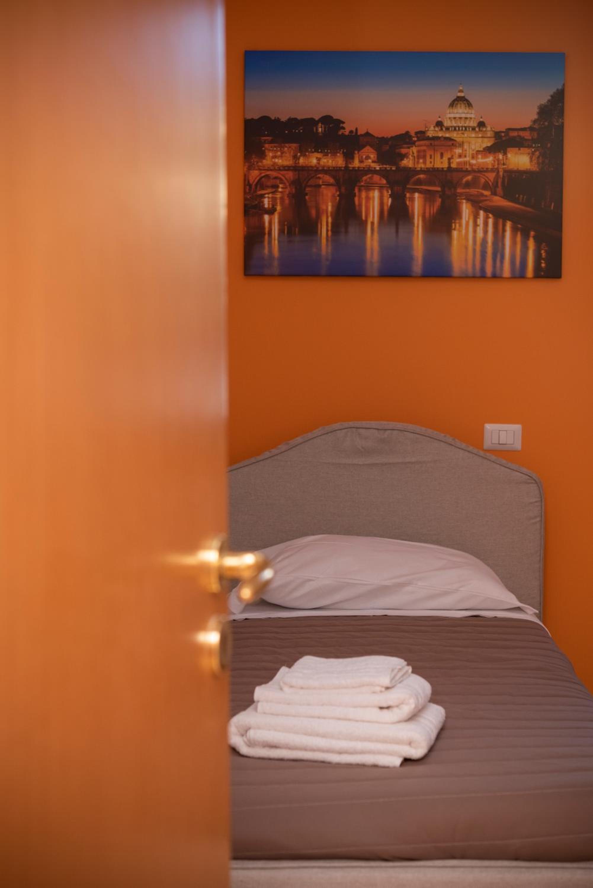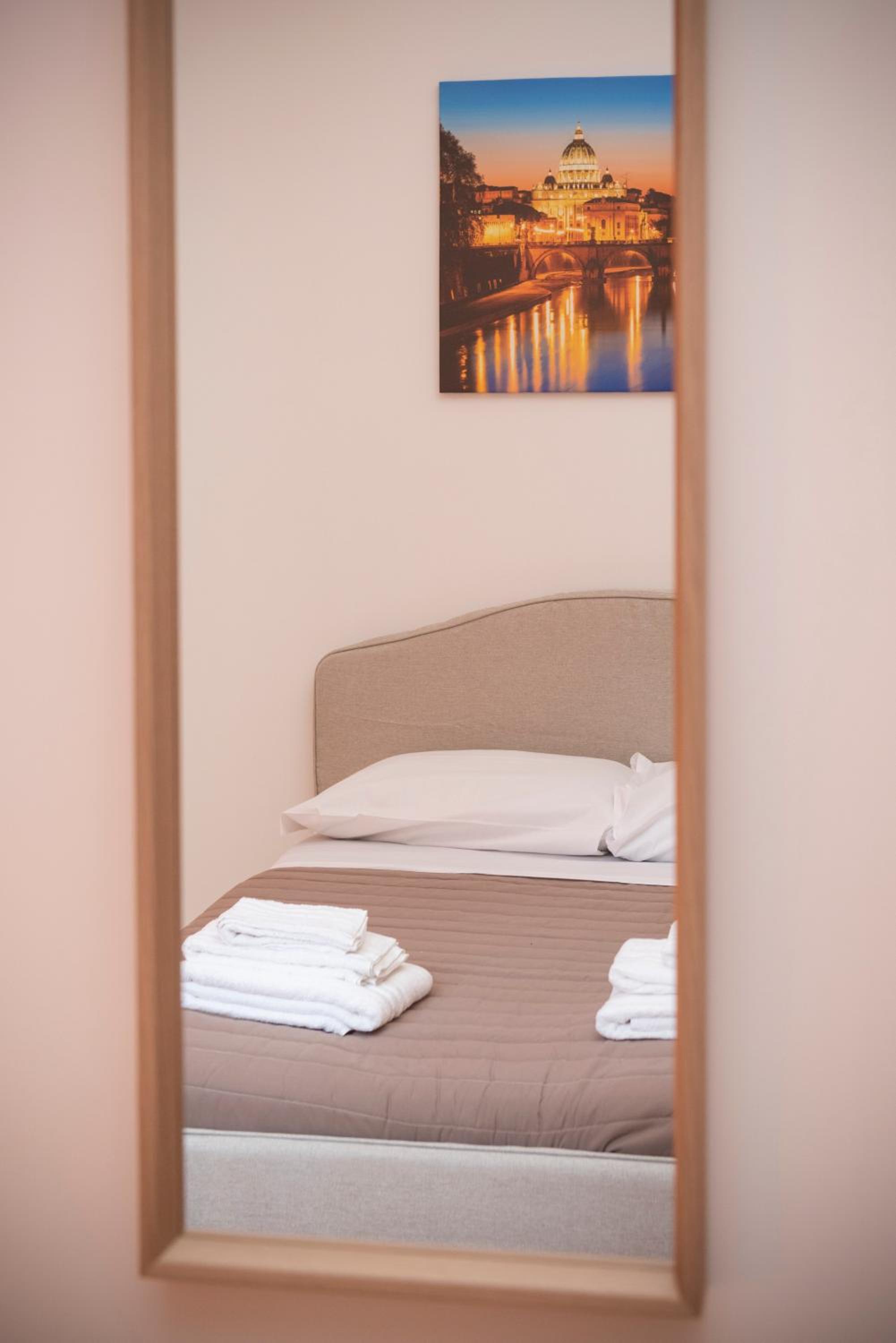 Отель расположен в тихом районе, пешком до центра города и входа в Ватикан далековато (минут 30), но рядом есть метро и можно быстро доехать до центра и всех достопримечательностей Рима. Рядом есть несколько супермаркетов, один из них круглосуточный. В отеле очень тихо, чисто, есть кухня с холодильником. В номере есть необходимый минимум.