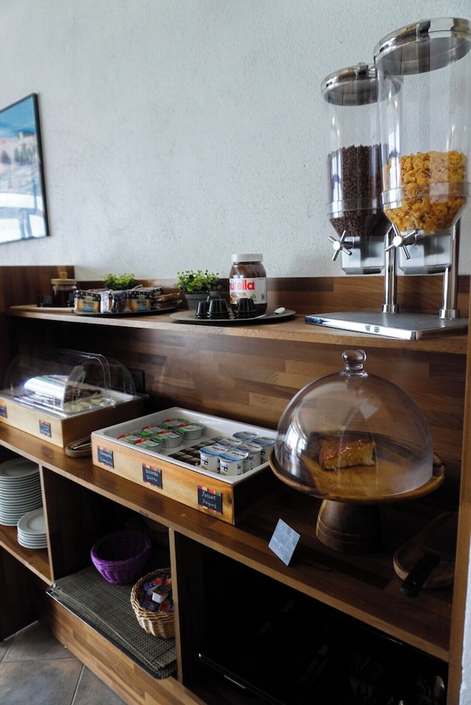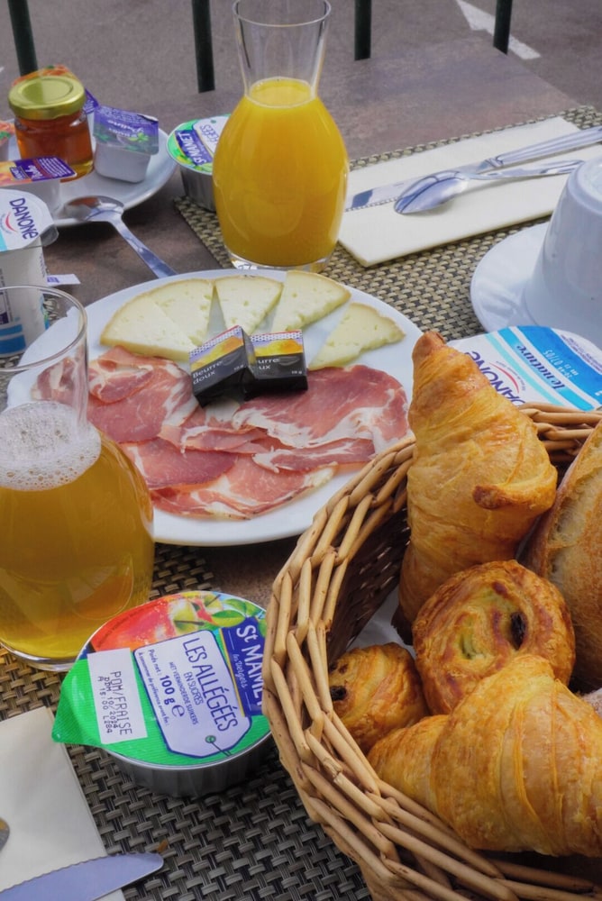 Petit déjeuner correct servi en terrasse.