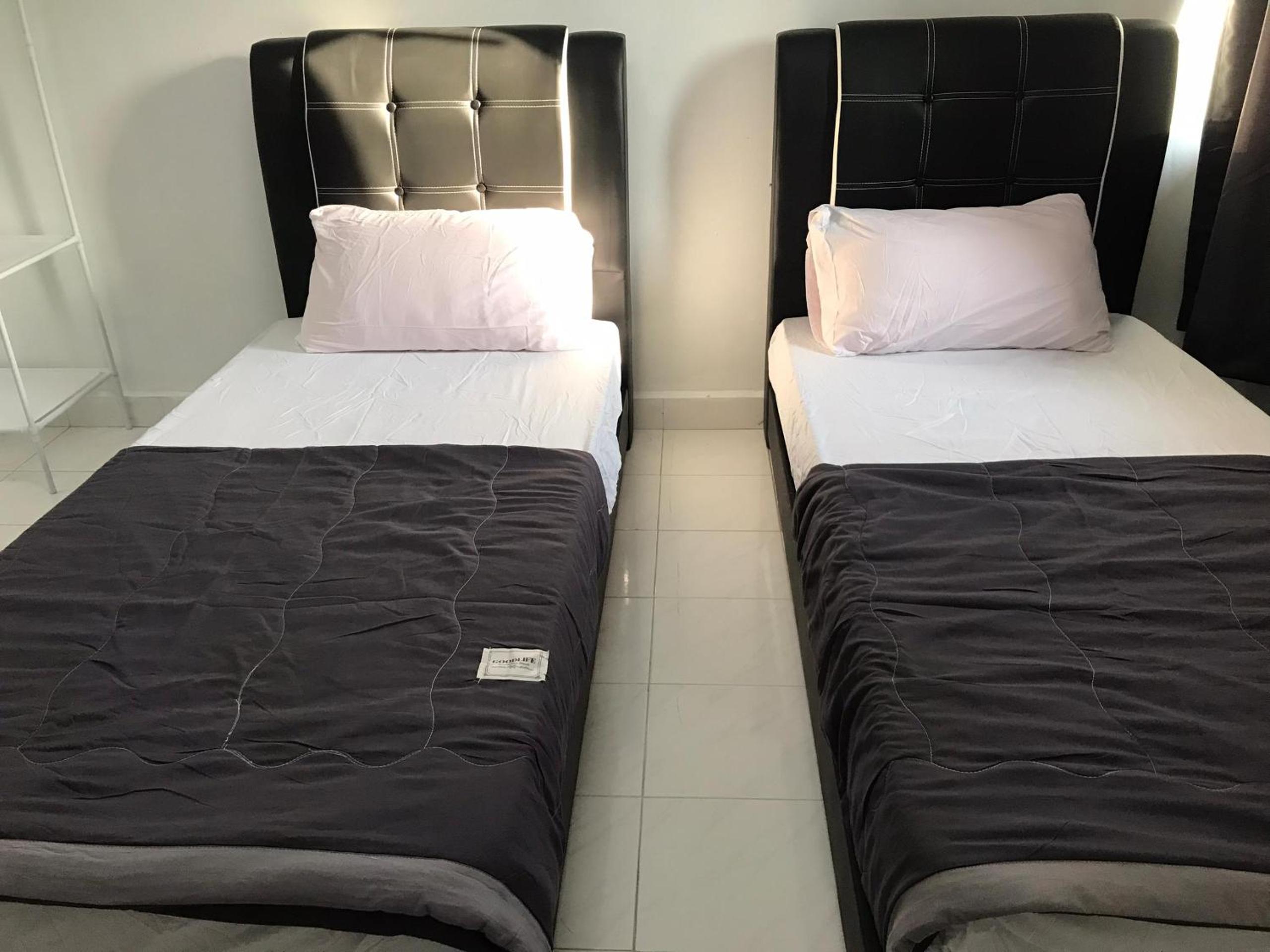 Book for double queen but received single twin. Pillow only one per bed. Should provide at least 2 for each of the bed. No one at counter as it is self check in.