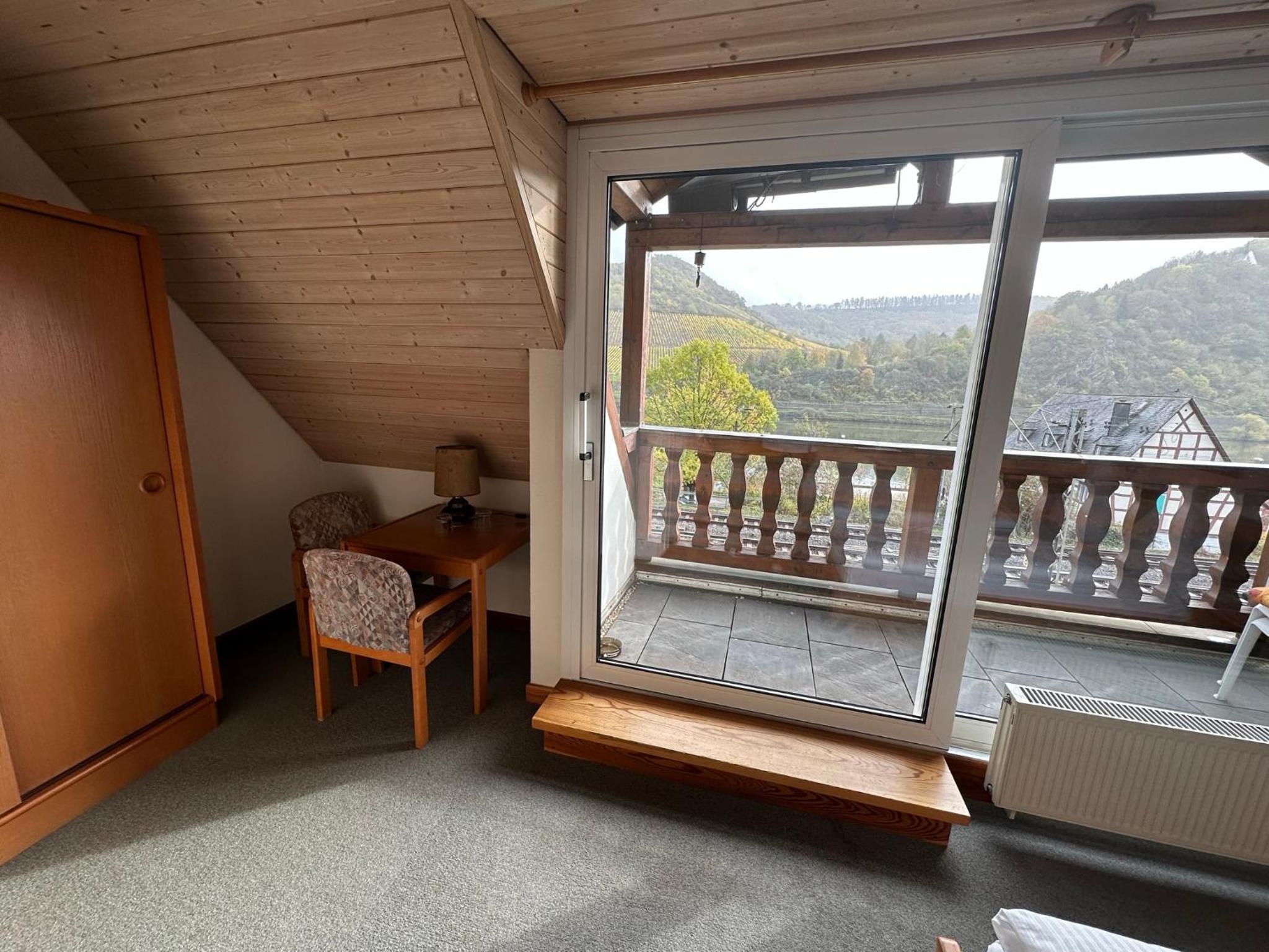 Wunderbar in Bahnhofsnähe gelegen, perfekt für Wanderer und Radfahrer! Freundlicher Empfang, Zimmer im Nebengebäude, schön saniert und ausgestattet! Fön, Kühlschrank und Wasserkocher vorhanden, auch Tee, Mineralwasser und Becher/Gläser. Bequemes Bett, Aussicht vom Balkon auf die Mosel und die Gleisanlagen. Bei geschlossenem Fenster trotzdem ruhig!