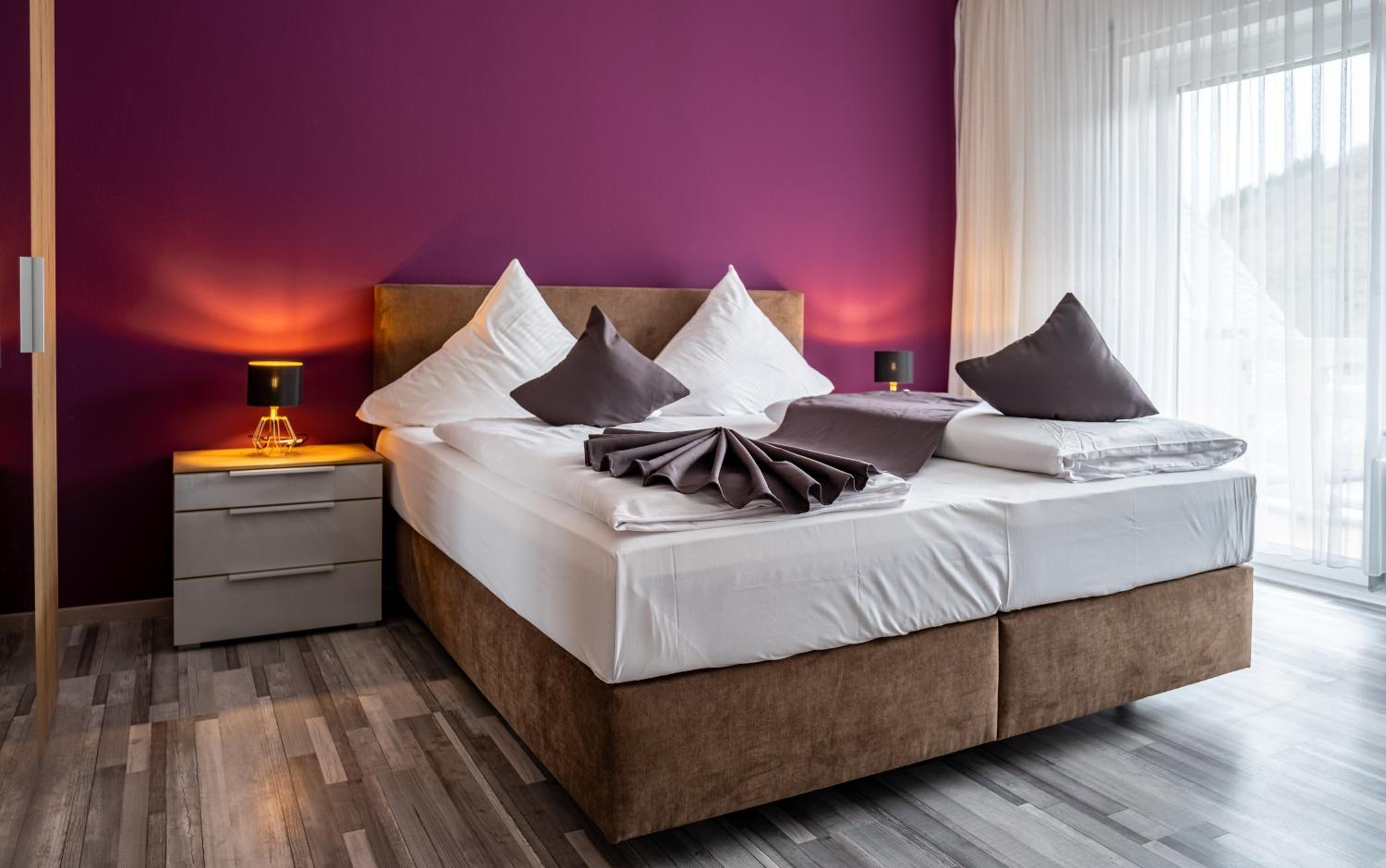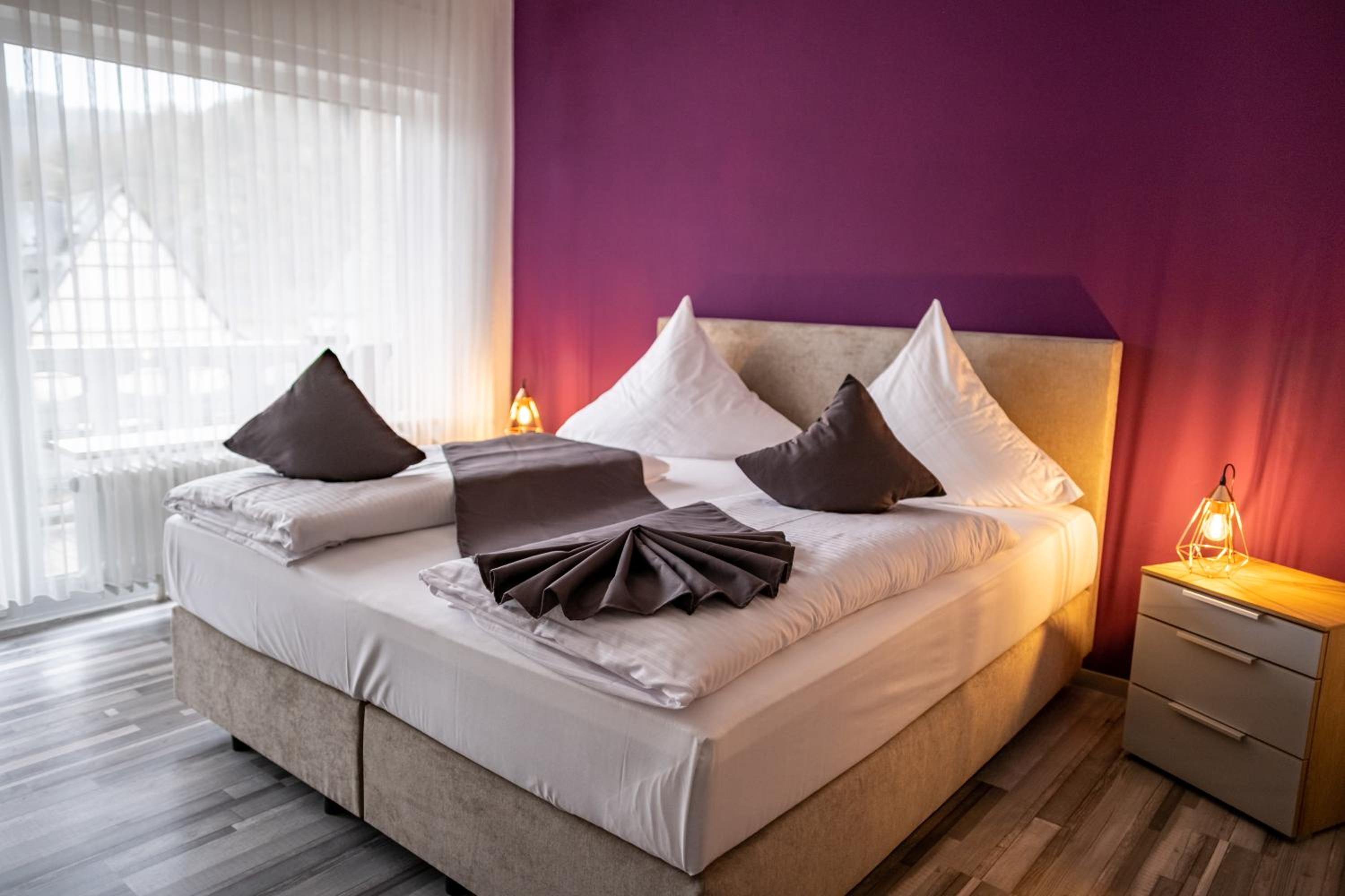 Mike's Mosel Lodge offers elegant rooms with modern amenities such as flat-screen TVs, safety deposit boxes, and private bathrooms. Some rooms even feature balconies with stunning city views. Guests can unwind in comfort with cozy seating areas and complimentary toiletries provided.