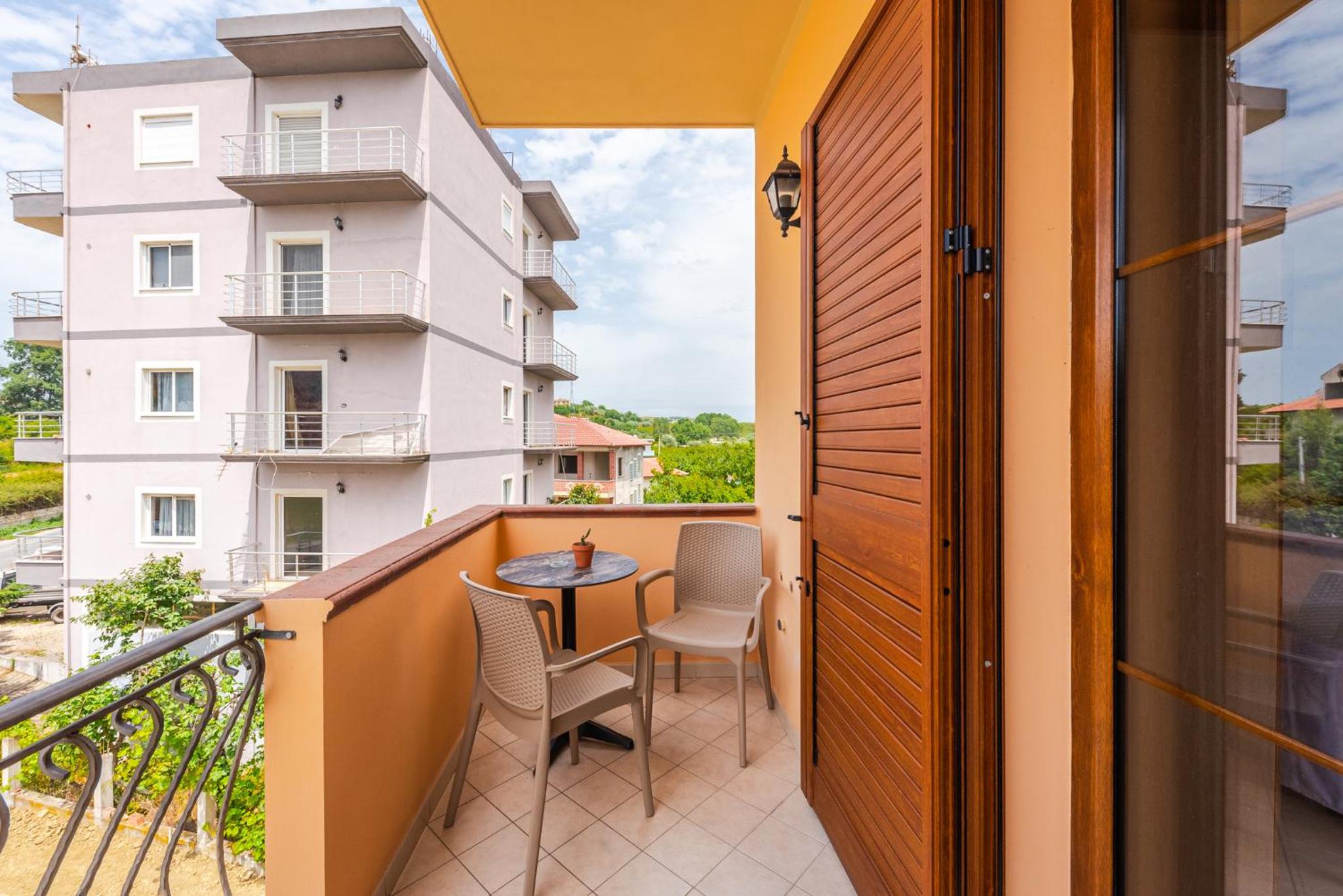 Het was mooi en heel schoon. Het bed was comfortabel we hebben heerlijk geslapen. Een goed werkende airco.Balkonnetje was heel leuk om ‘s ochtends te ontbijten en ‘s avonds lekker buiten zitten. Ieder 2 a 3 dagen werd de kamer schoongemaakt, lakens en handdoeken gewisseld. De gastvrouw en haar gezien waren super aardig en behulpzaam.