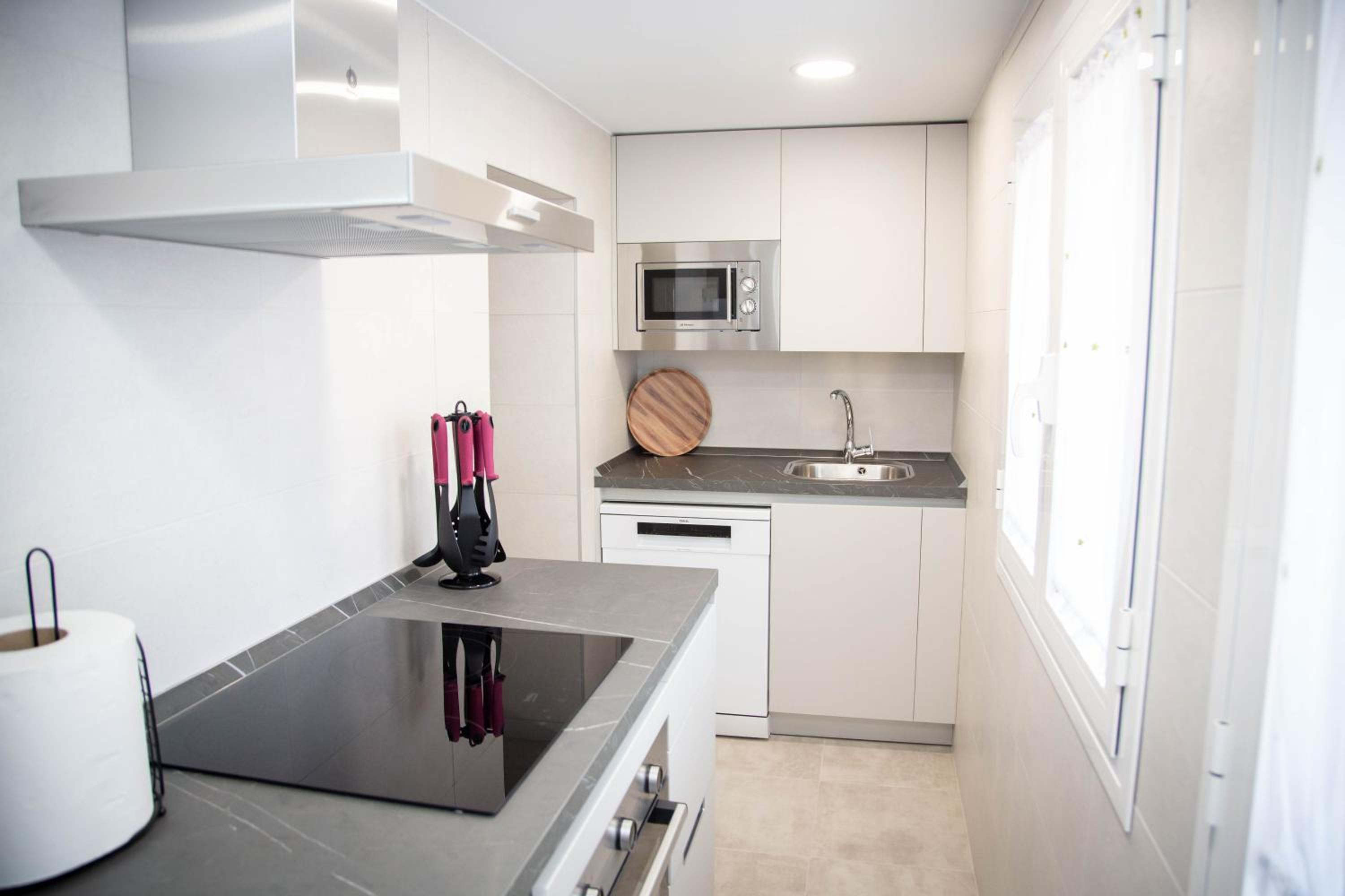 El espacio del “salón” y de la cocina es muy limitado si vas 6 personas.
