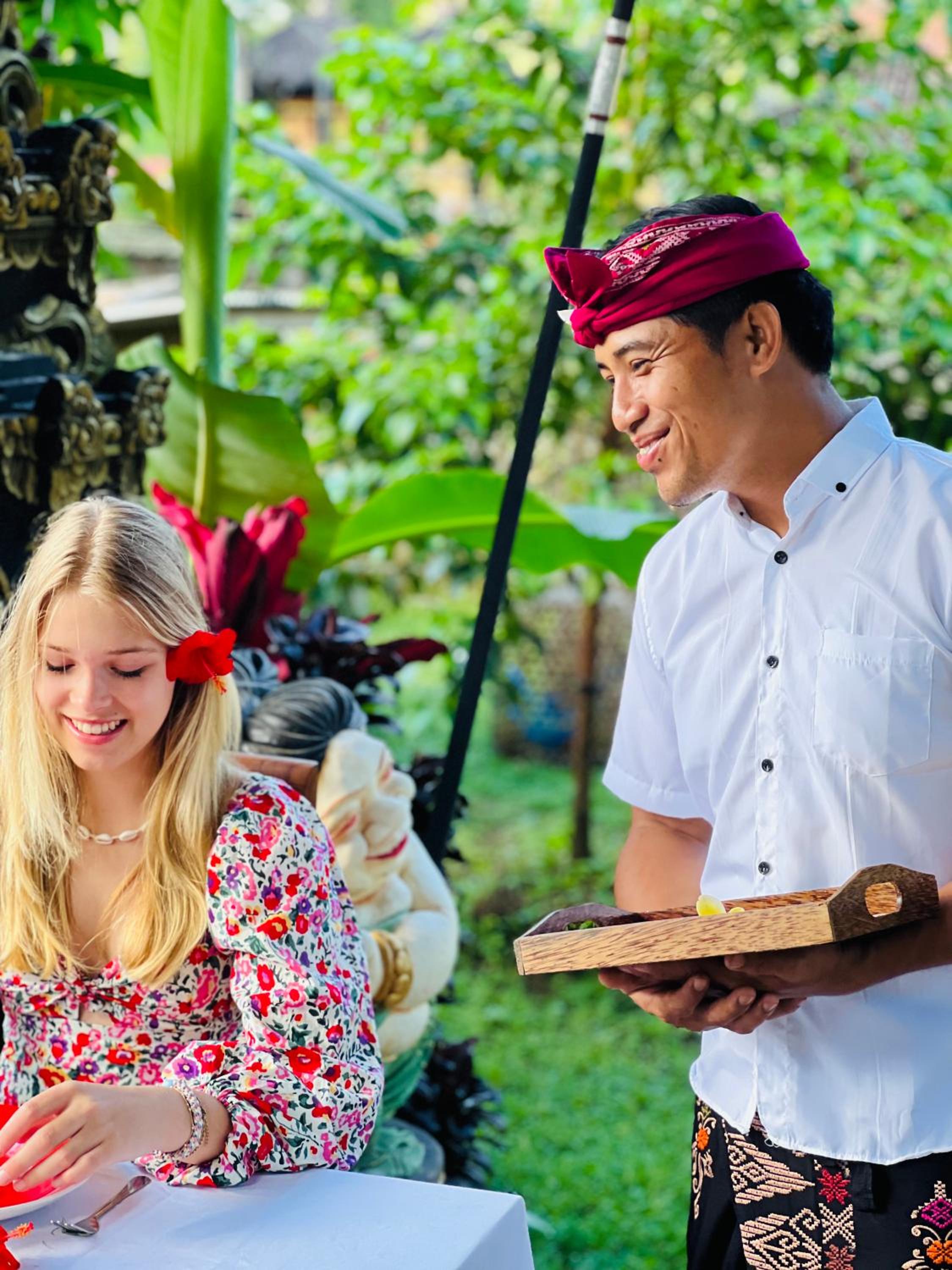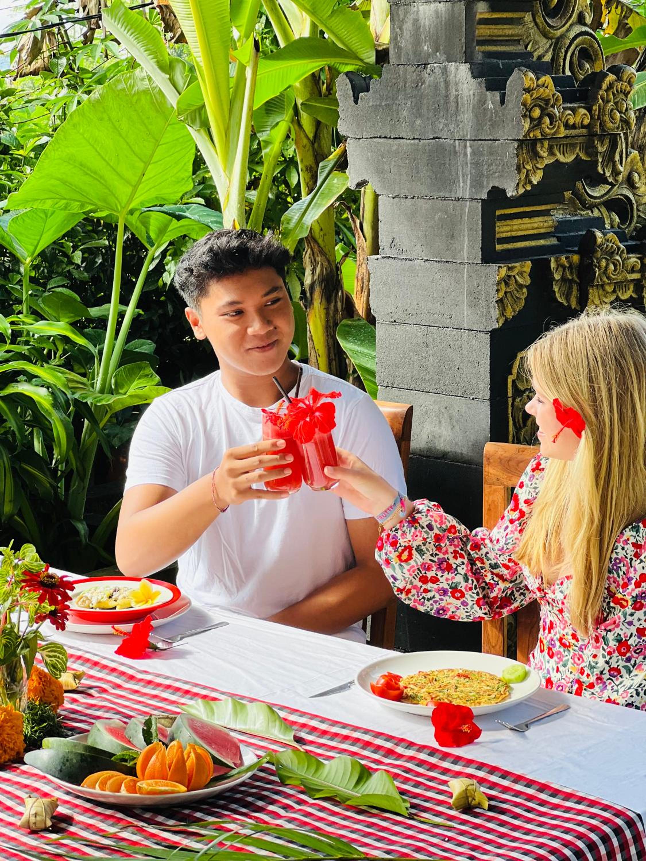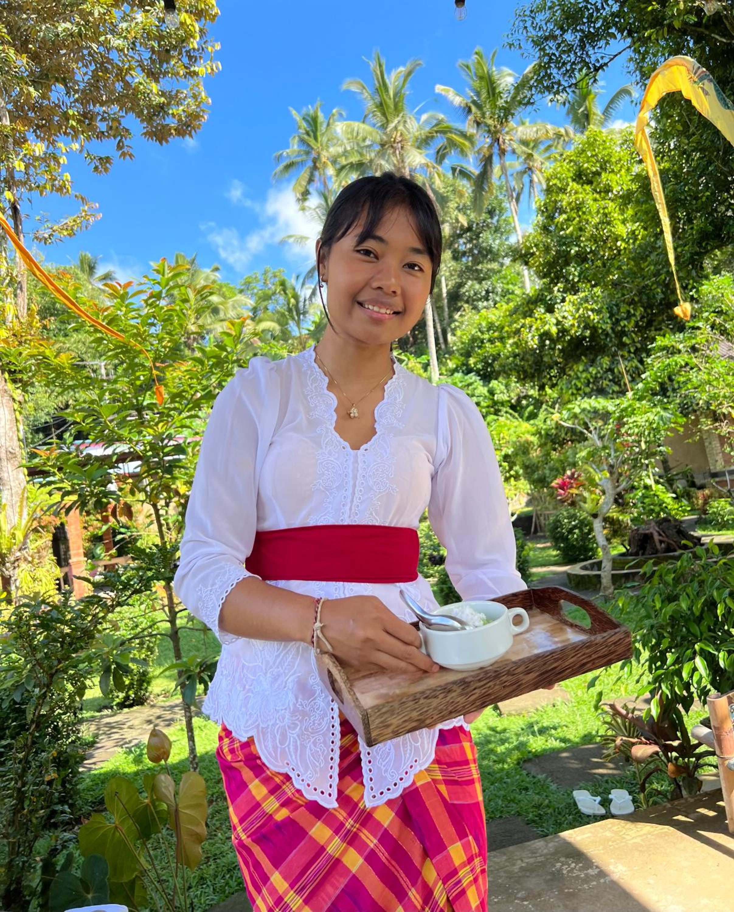 Het was anders dan onze andere accommodaties in bali. Zoals de eigenaar zelf ook zegt, het is een homestay. Dat betekent dat er wat minder zelf te kiezen valt. Er is geen ontbijt- of dinermenu maar eten wat de pot schaft :-)