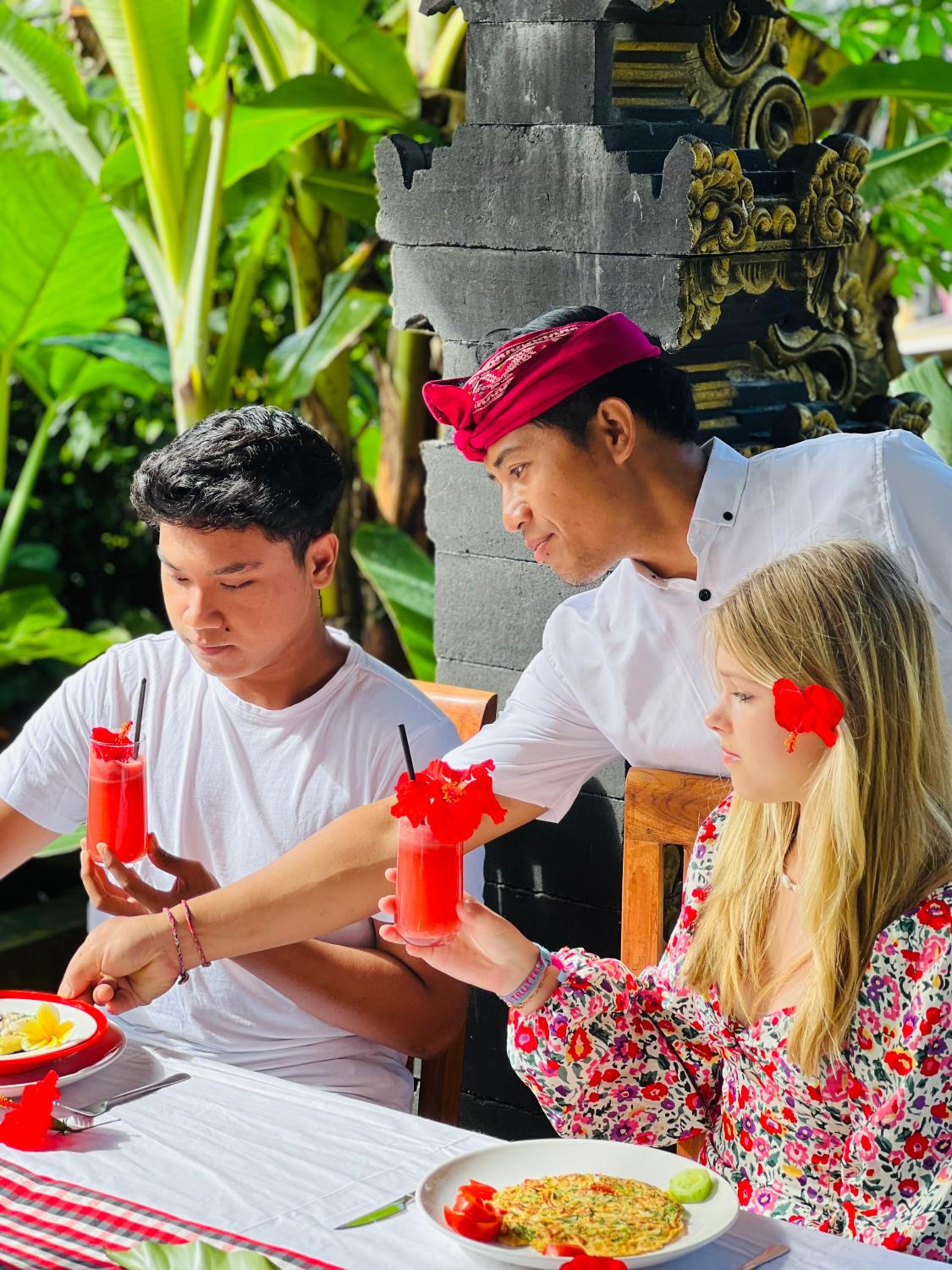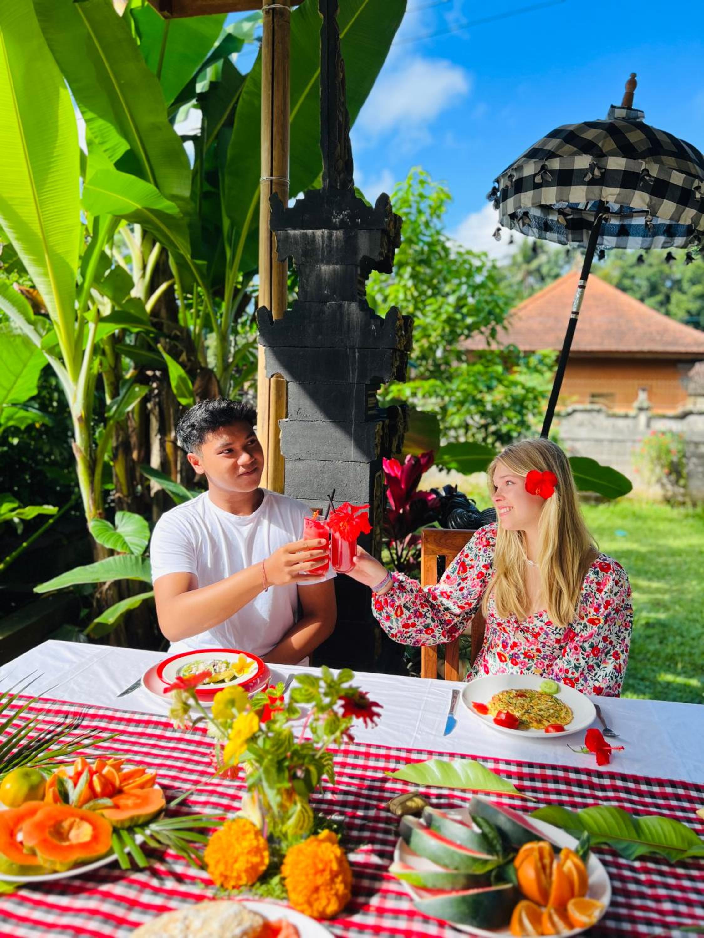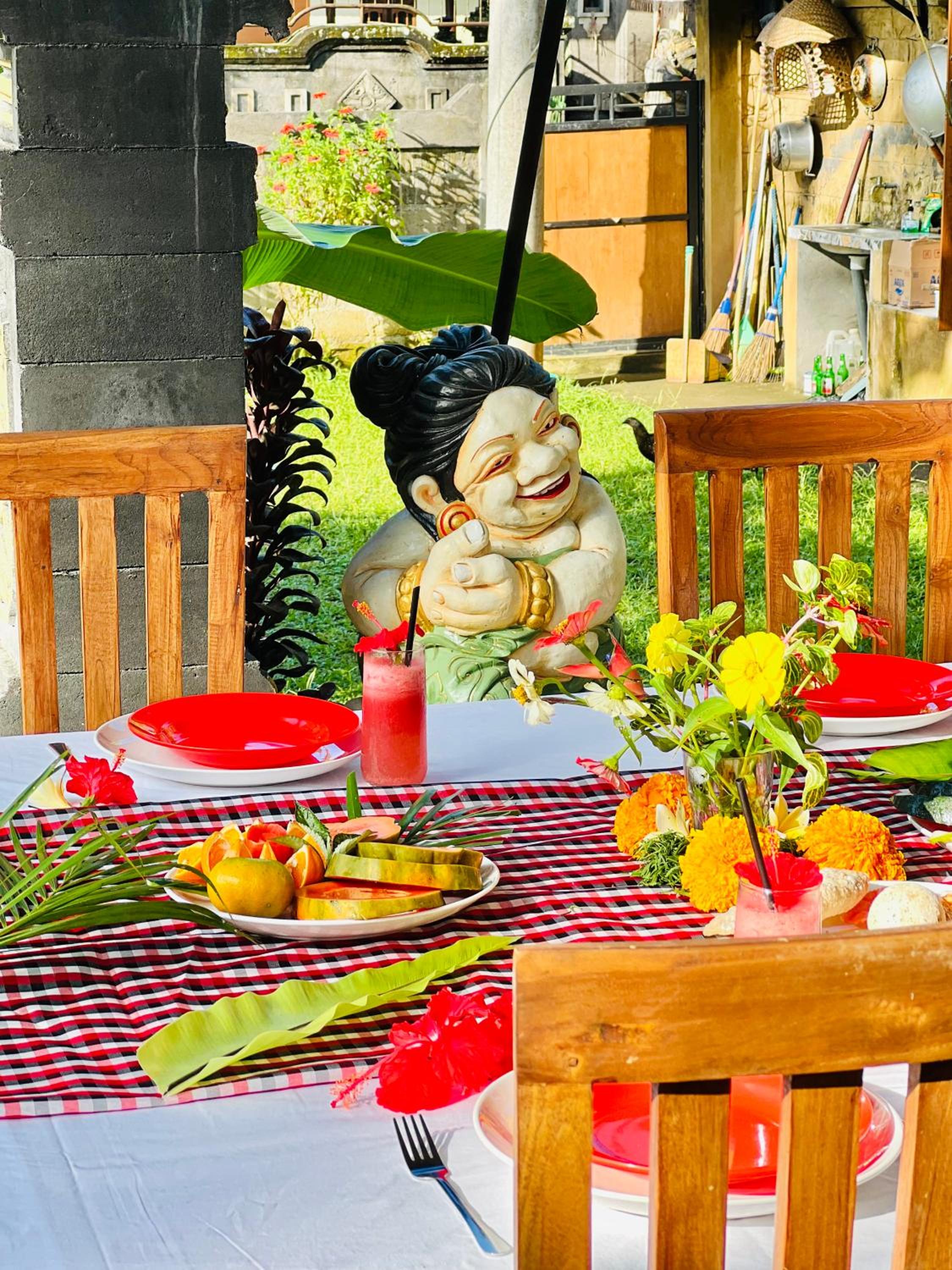 Het was anders dan onze andere accommodaties in bali. Zoals de eigenaar zelf ook zegt, het is een homestay. Dat betekent dat er wat minder zelf te kiezen valt. Er is geen ontbijt- of dinermenu maar eten wat de pot schaft :-)