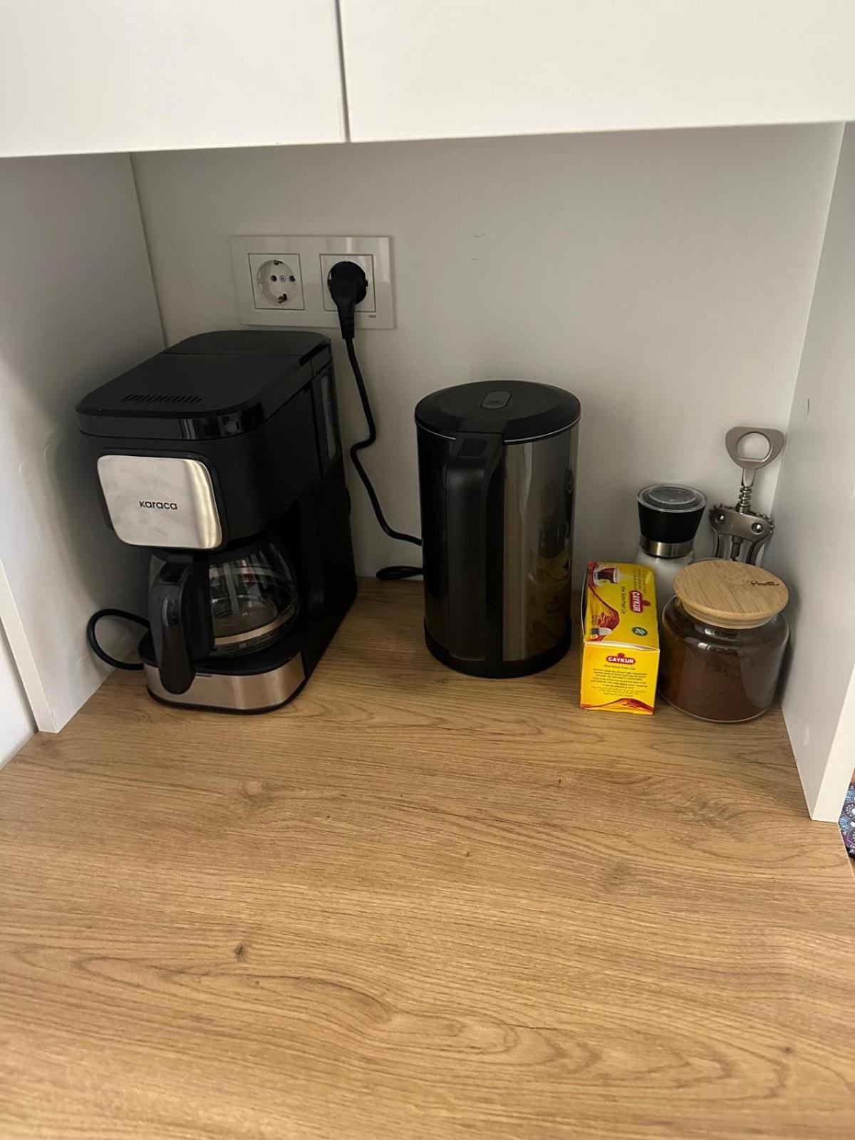 An electric kettle was available and useful.