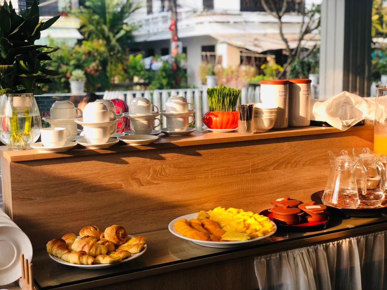 Die Unterkunft liegt sehr nahe an der Altstadt auf einer vorgelagerten Insel und ist sehr ruhig. Frühstück war auswählbar und OK. Wir hatten das Binh Mi mit Ei, Früchte mit Müsli und Black Coffee mit Milch am Vorabend bestellen müssen. Der Kaffee kommt automatisch gesüsst, also explizit ungesüsst bestellen, wenn nicht gewünscht.