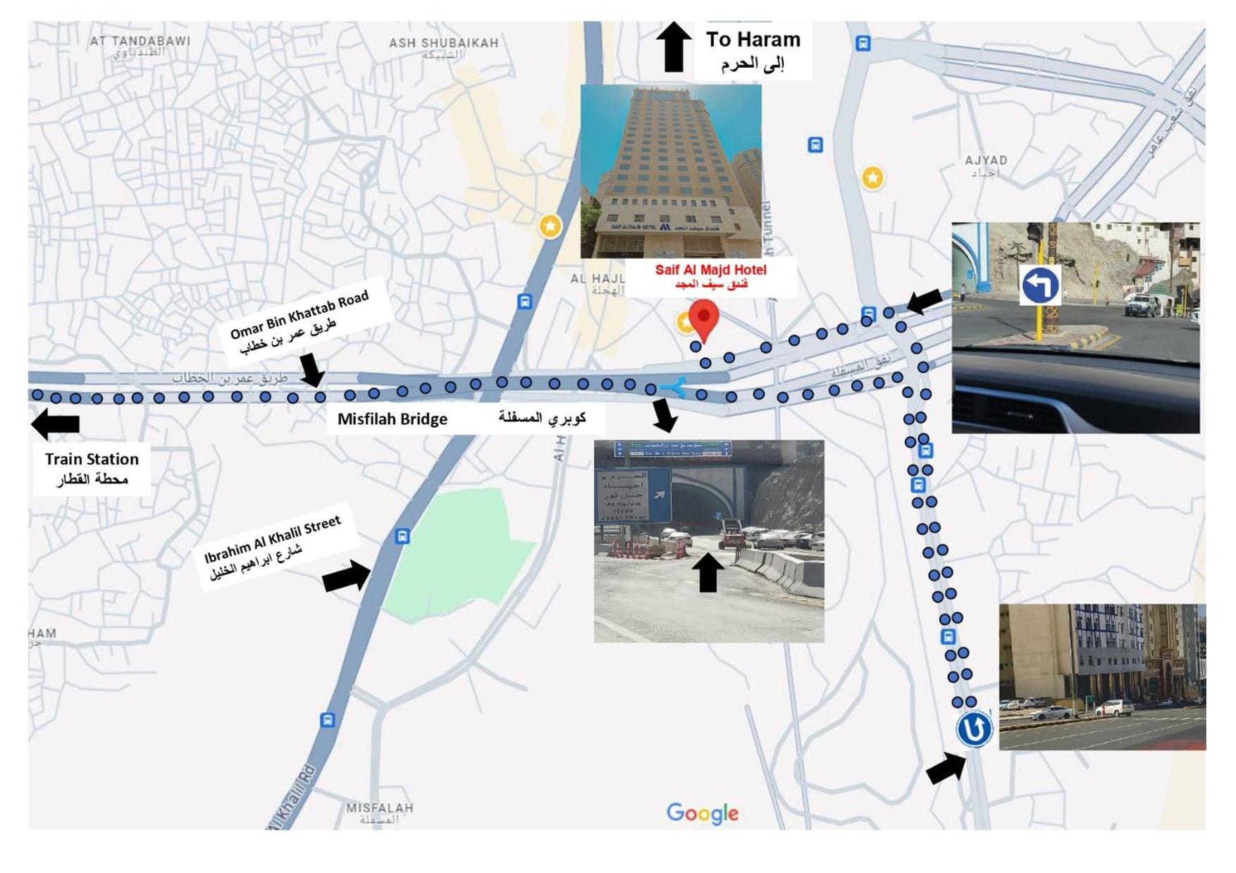 Distance to the haram. The walk back was hard going up hill. Not very comfortable