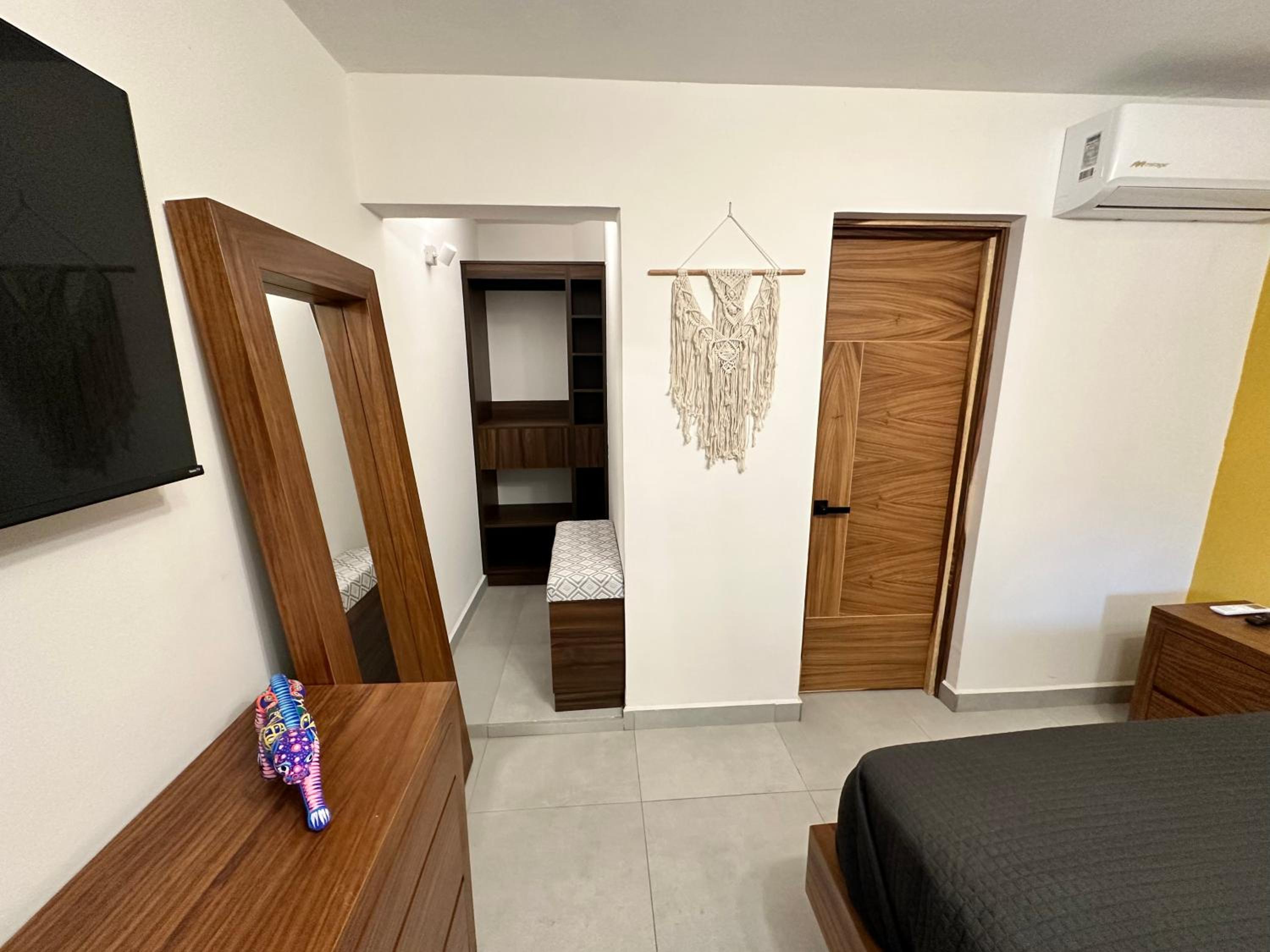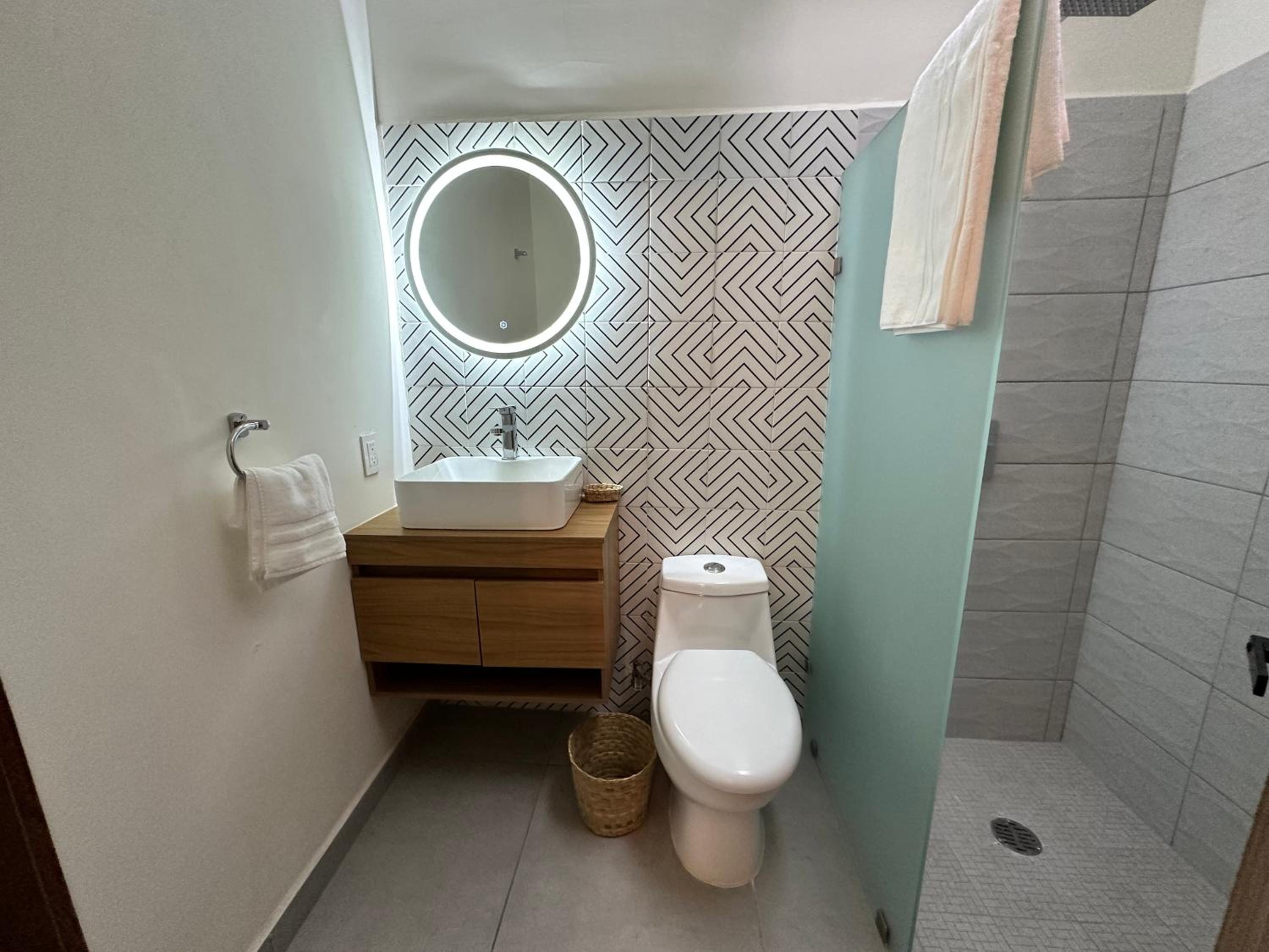 No tiene salida de vapor el baño empieza a oler a humedad , deberían dejar un trapeador y artículos de limpieza para cuando nos quedamos varios días nosotros mismos realizar una limpieza al día , con la alberca mojamos mucho el interior del cuarto