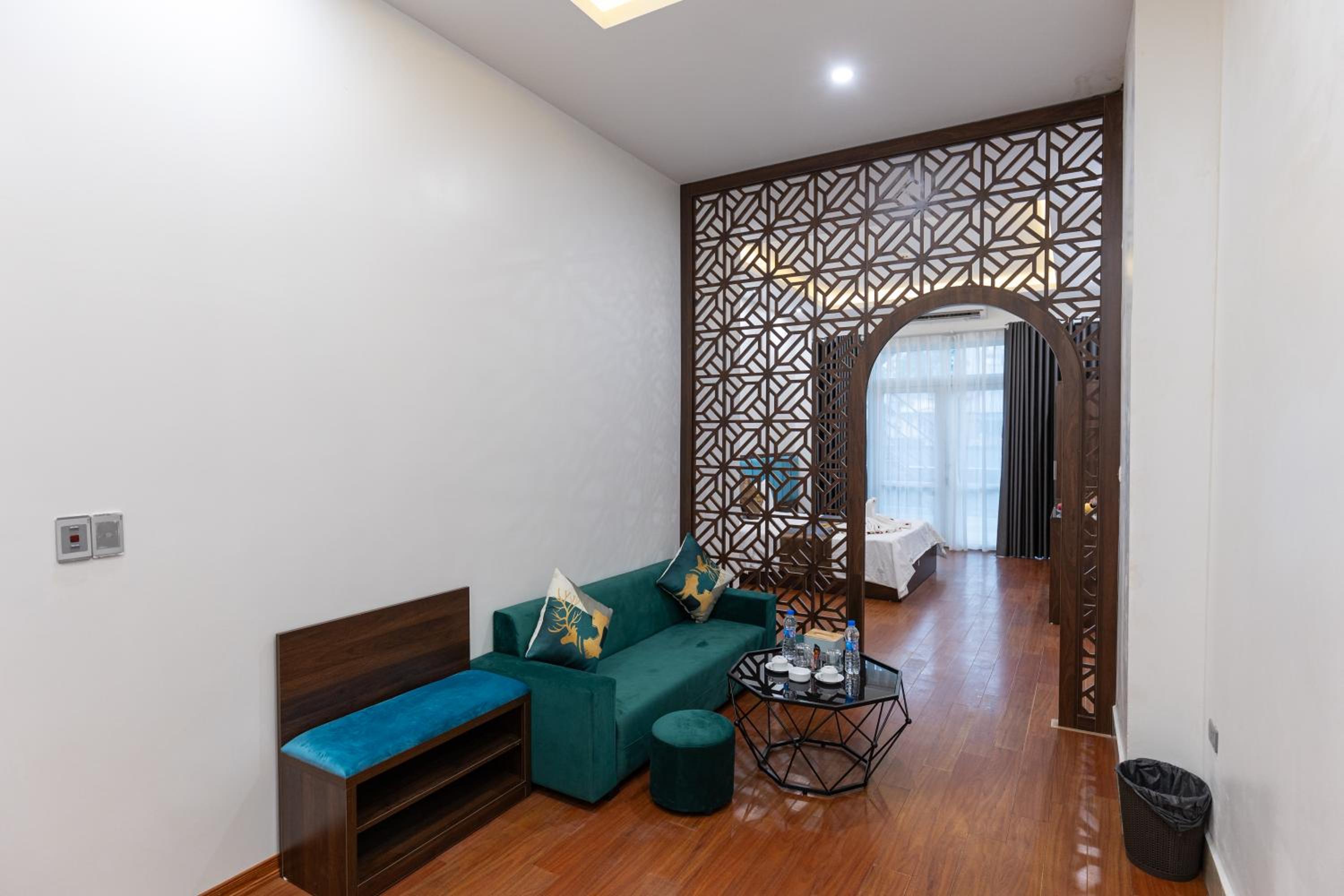 Explore HOÀNG GIA Hotel ĐÔNG ANH's lush garden, perfect for a peaceful retreat amidst the city's hustle and bustle.
