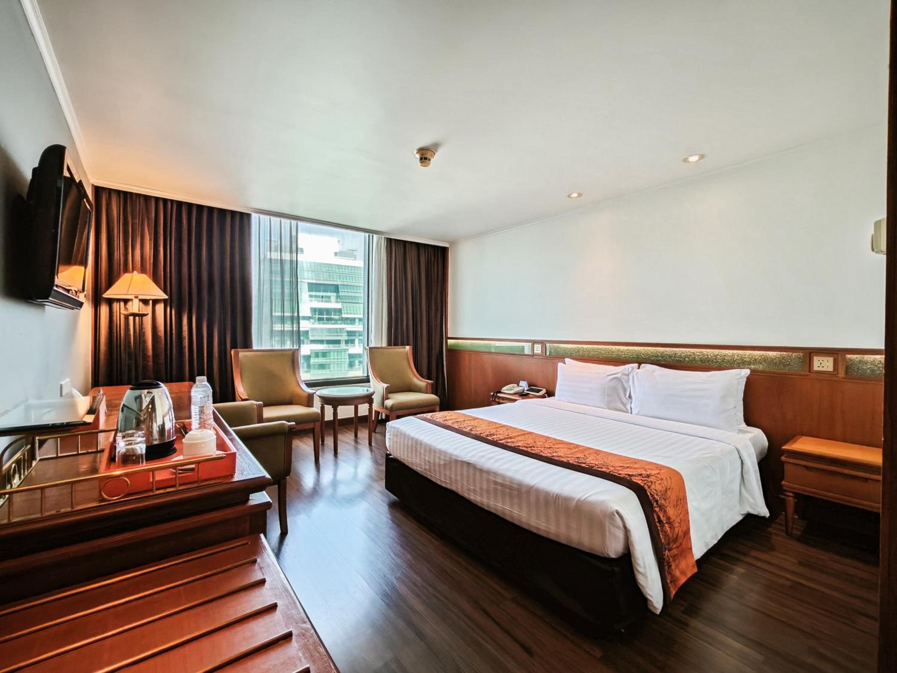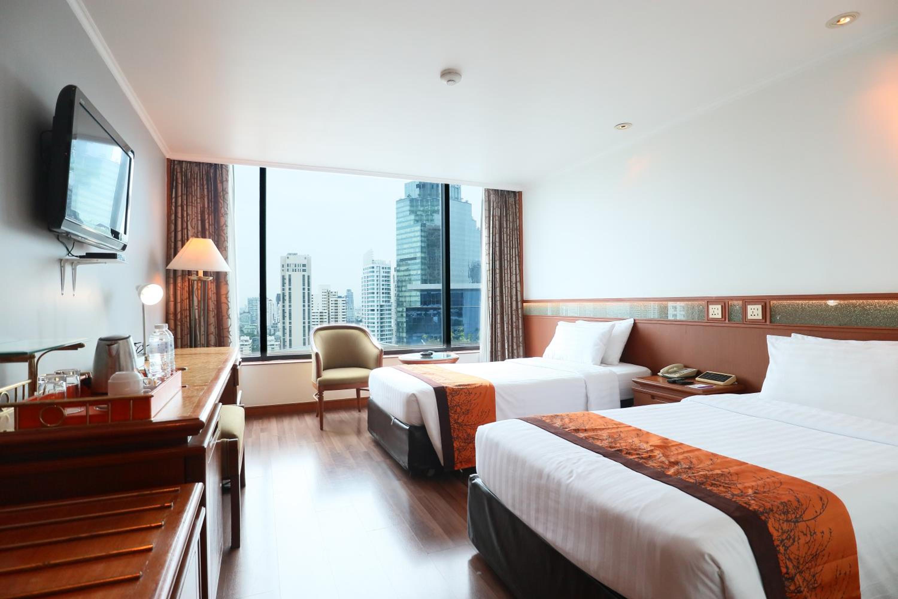 The location was great. It was in what could be considered the center of Bangkok. The room was comfortable enough. Our main control unit malfunctioned a bit, but we didn't experience any problems while sleeping that night. The breakfast was quite satisfactory, both for a European breakfast and for an Asian breakfast.