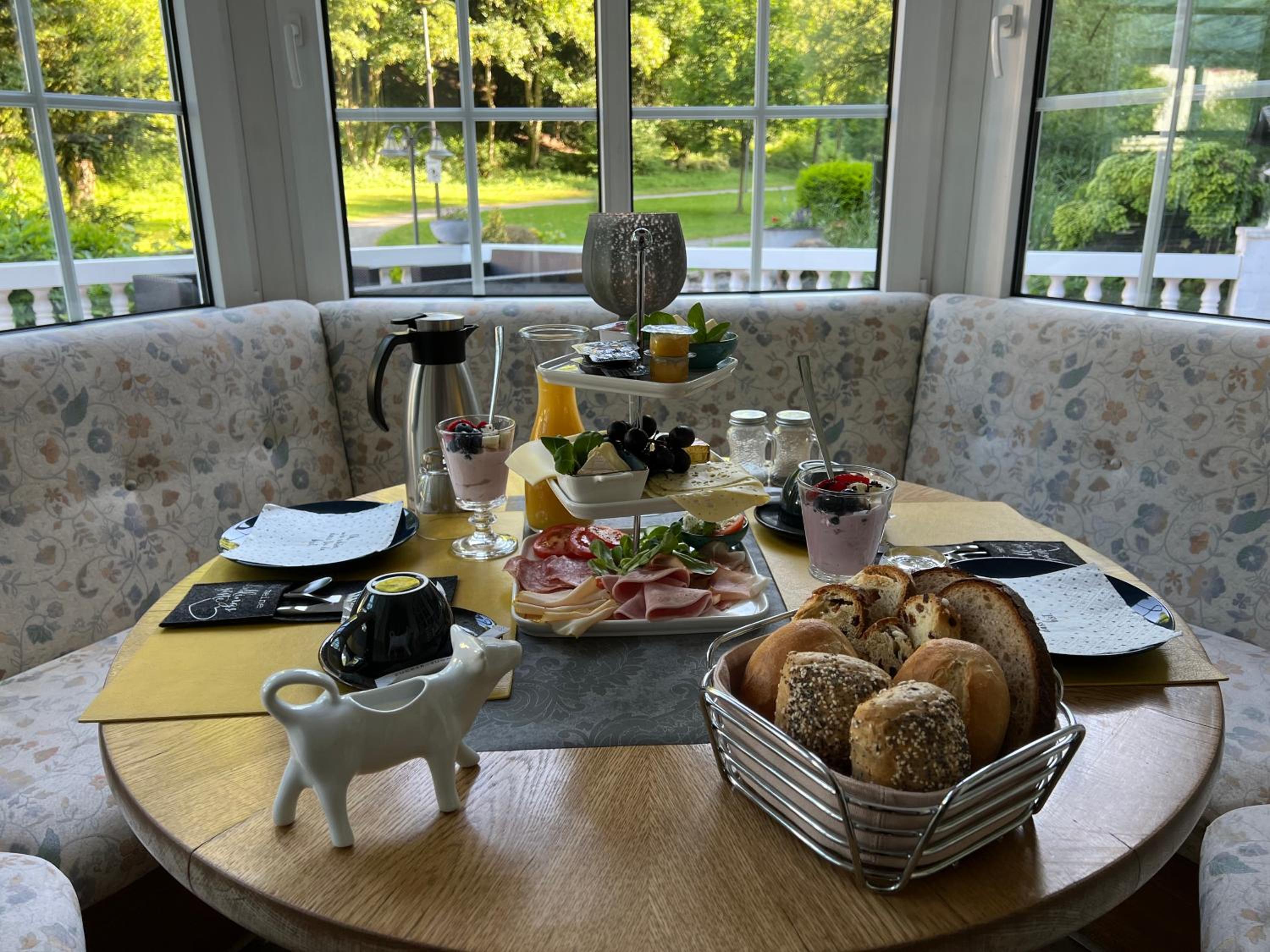 Das Hotel liegt an einem kleinen Weiher, sehr romantisch. Es ist sehr ruhig, man schläft fantastisch. Ich hatte ein Zimmer im Dachgeschoss, sehr gross und super eingerichtet, ebenerdige Dusche, alles war im Sanitärbereich neu. Die Wirtin empfing mich sehr herzlich, und man hatte das Gefühl, angekommen zu sein. Das Personal war ausnahmslos sehr gefällig und freundlich, es wurden sogar Sonderwünsche erfüllt. Das Frühstück war umfangreich, viele Sorten Brot und Brötchen, grosse Auwahl an Aufschnitt und Käse, alles liebvoll angerichtet. Kaffee gab es in einer Kanne am Tisch, alles andere war am Buffet, auch eine Müsli Ecke fehlte nicht. Da blieben keine Wünsche offen. Parkmöglichkeit war genug vorhanden, bei den Koffern wurde gerne geholfen.