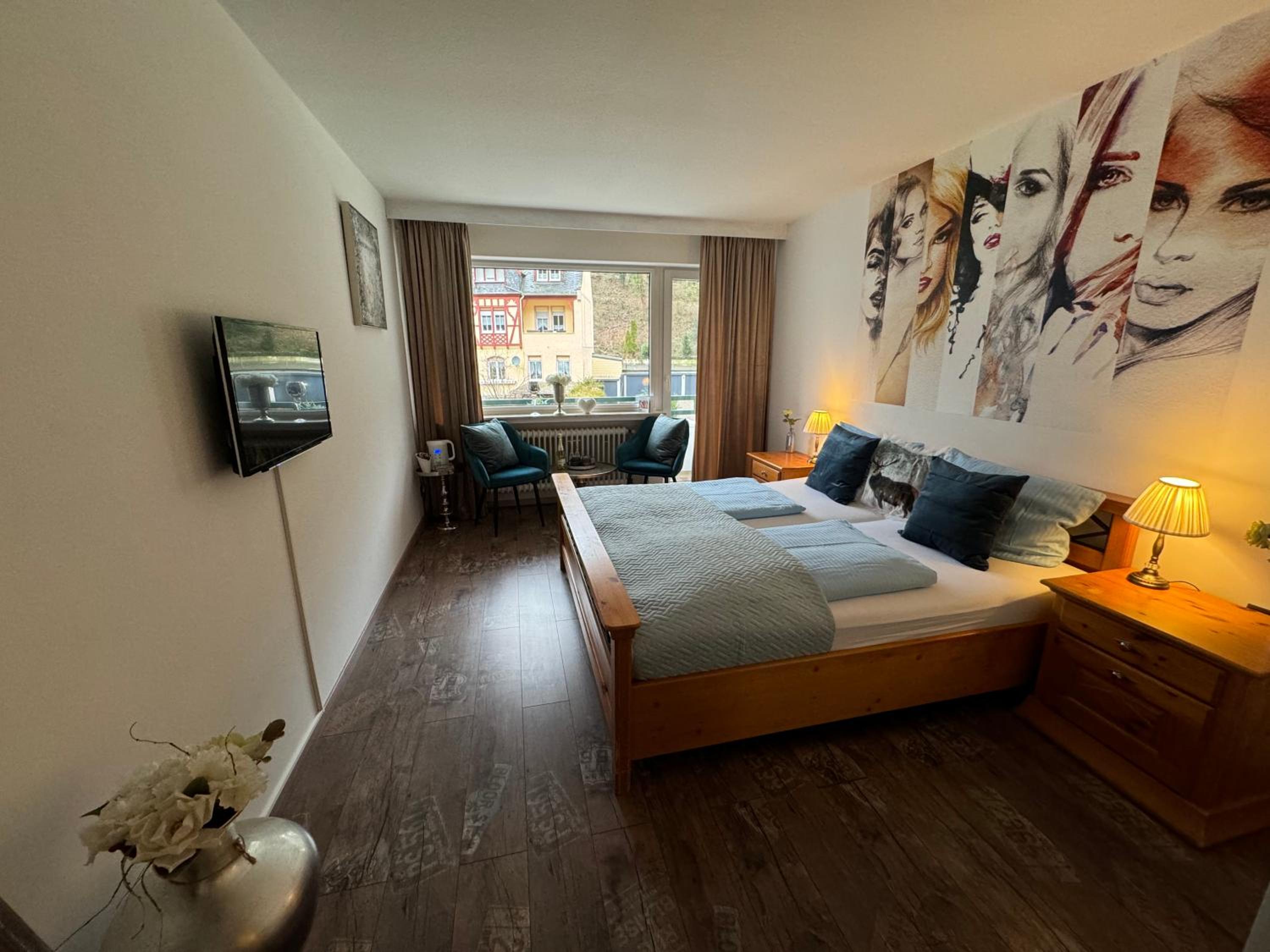 Das Hotel liegt außerhalb der Fußgängerzone, an einem kleinen Teich. Auf der anderen Seite kann man direkt in den Park gehen. Bad Bertrich ist ein toller Ausgangspunkt für Wanderungen. Das Frühstück war ganz toll. Das Zimmer war sehr schön. Das Personal und die Besitzerin waren sehr nett.