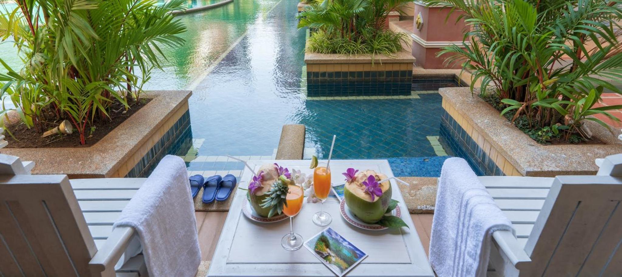 Modern Amenities: Enjoy a comfortable stay in our air-conditioned rooms equipped with flat-screen TVs, safety deposit boxes, and private bathrooms. Some rooms even feature balconies with pool views for a truly relaxing experience.