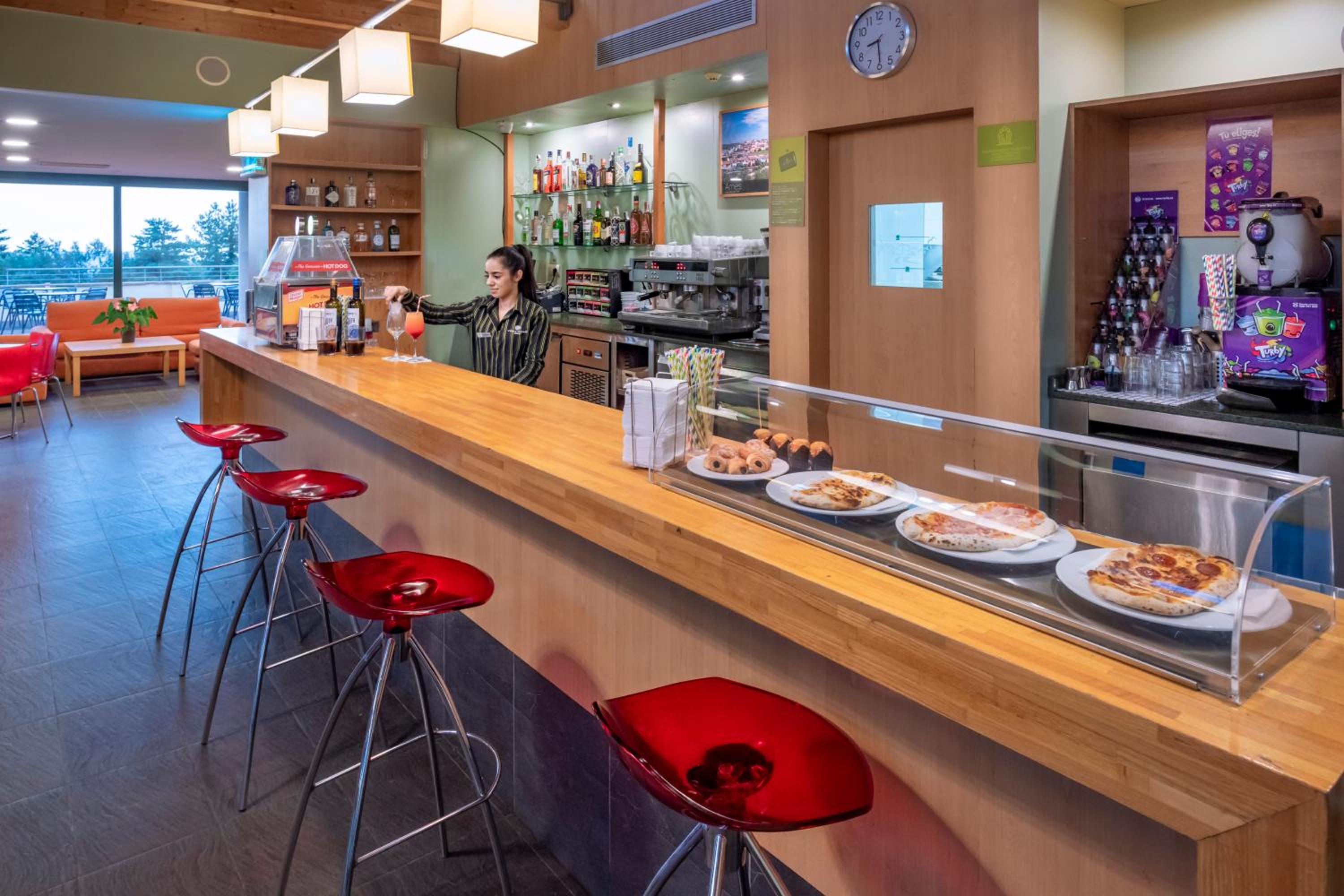 Todo correcto, desayuno muy completo, el bar podría mejorar en la atención la camarera se olvida de cosas y no echaron de lugar que estabamos cenando para montar discoteca movil y luego dejaron sentar otros en nuestra mesa para tomar algo que a los 5 min. echaron tambien a otro lugar donde habia un chico borracho que no se podia estar de los gritos que pegaba jugando al futbolin. El bar casi no tiene opciones para cenar si no es , precocinados. A las 9 cierra cocina.