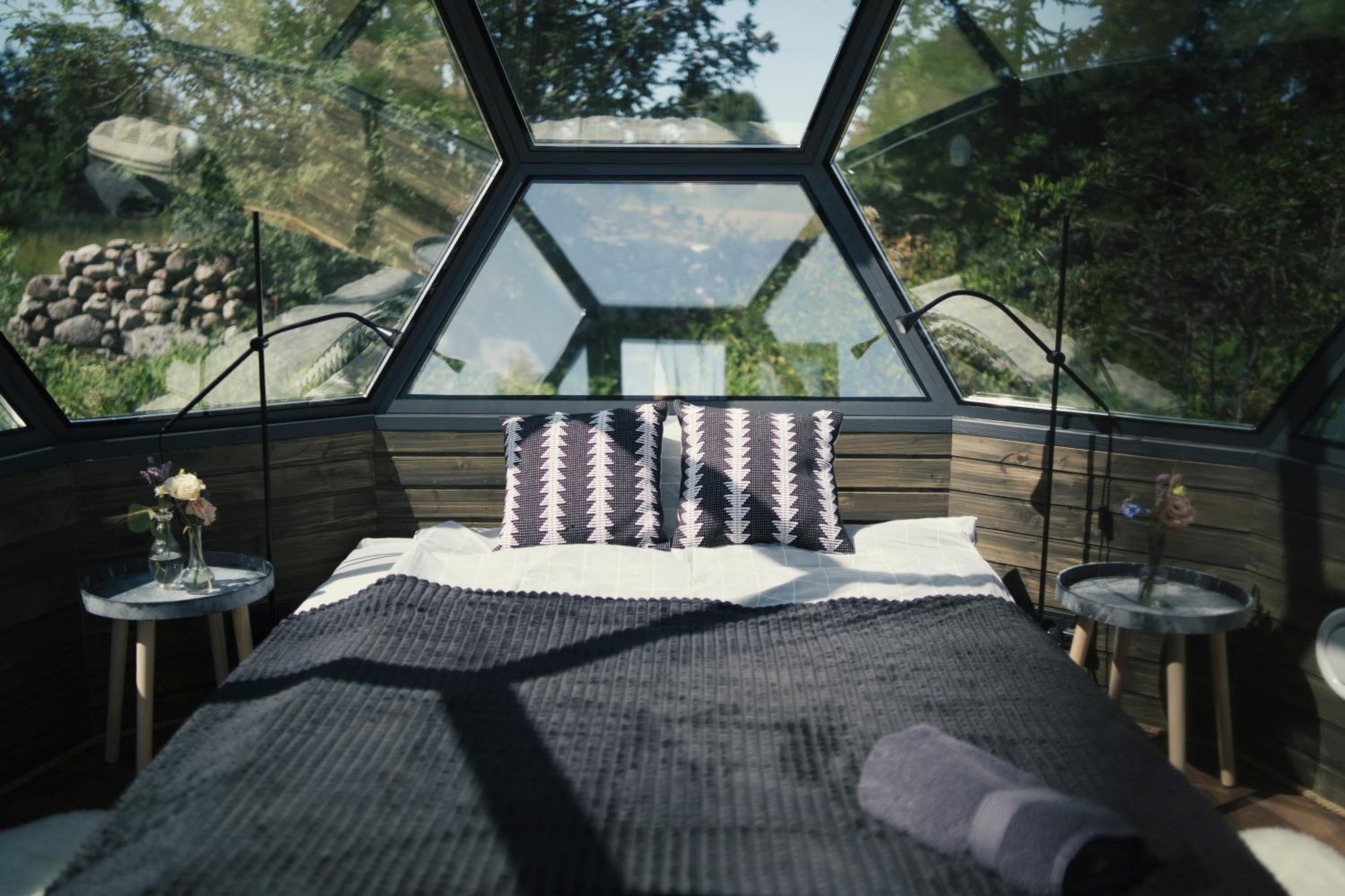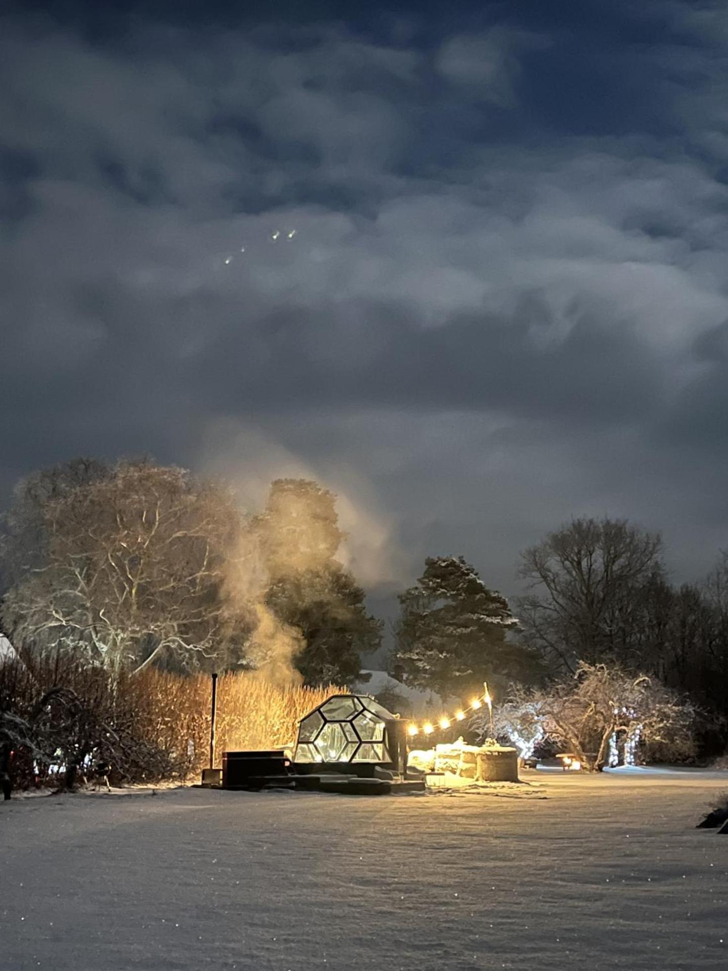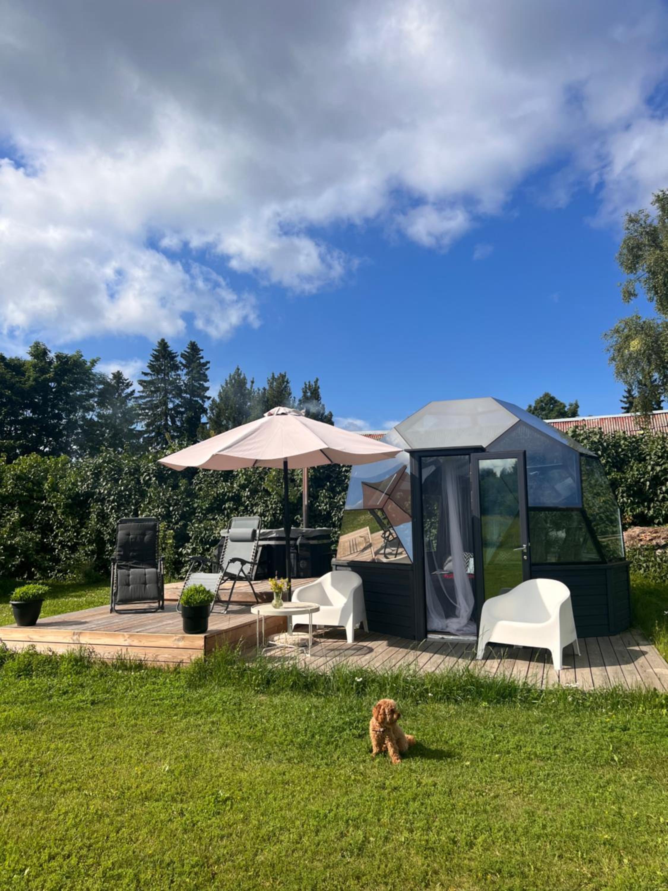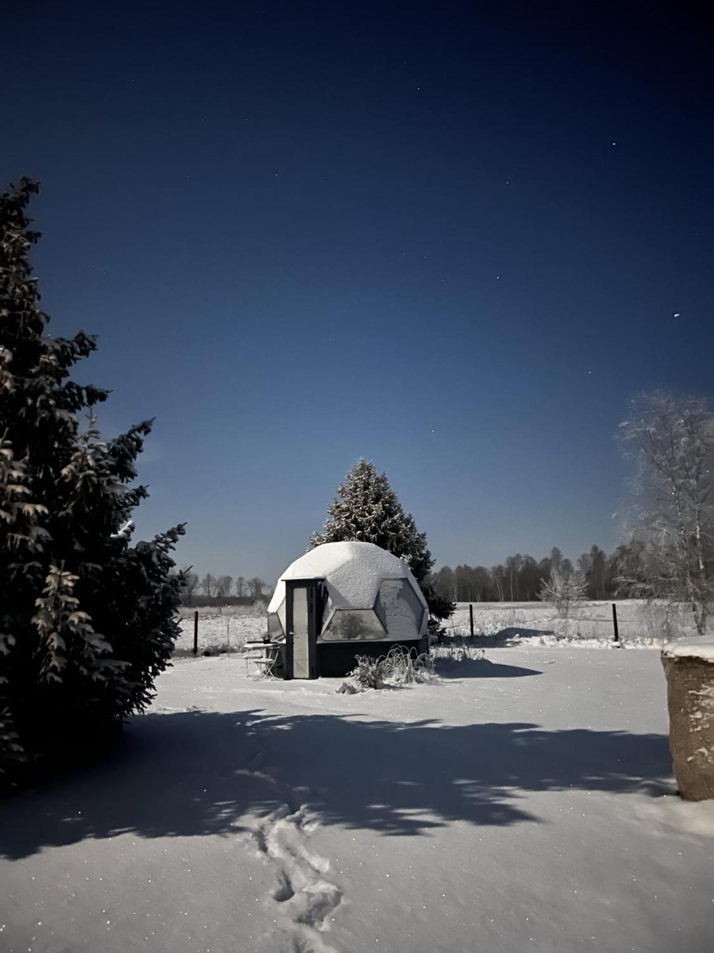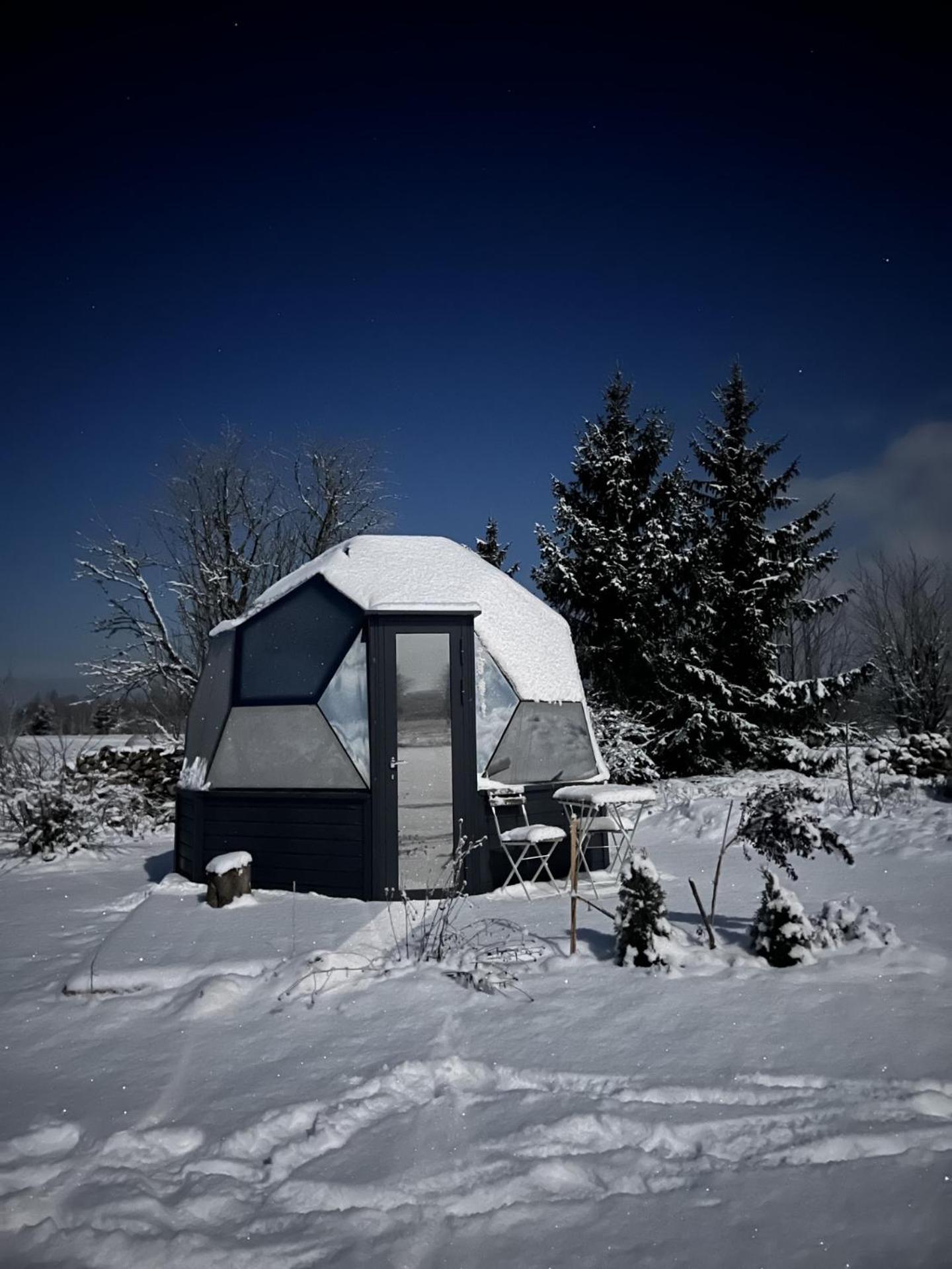 Olen nõus juba eelnevate külaliste poolt kirjeldatuga. Lisaks veel huvitav vaade, mille nö katuse puudumine voodis lamades annab ning taluaia lilledest peenar kupli ees.