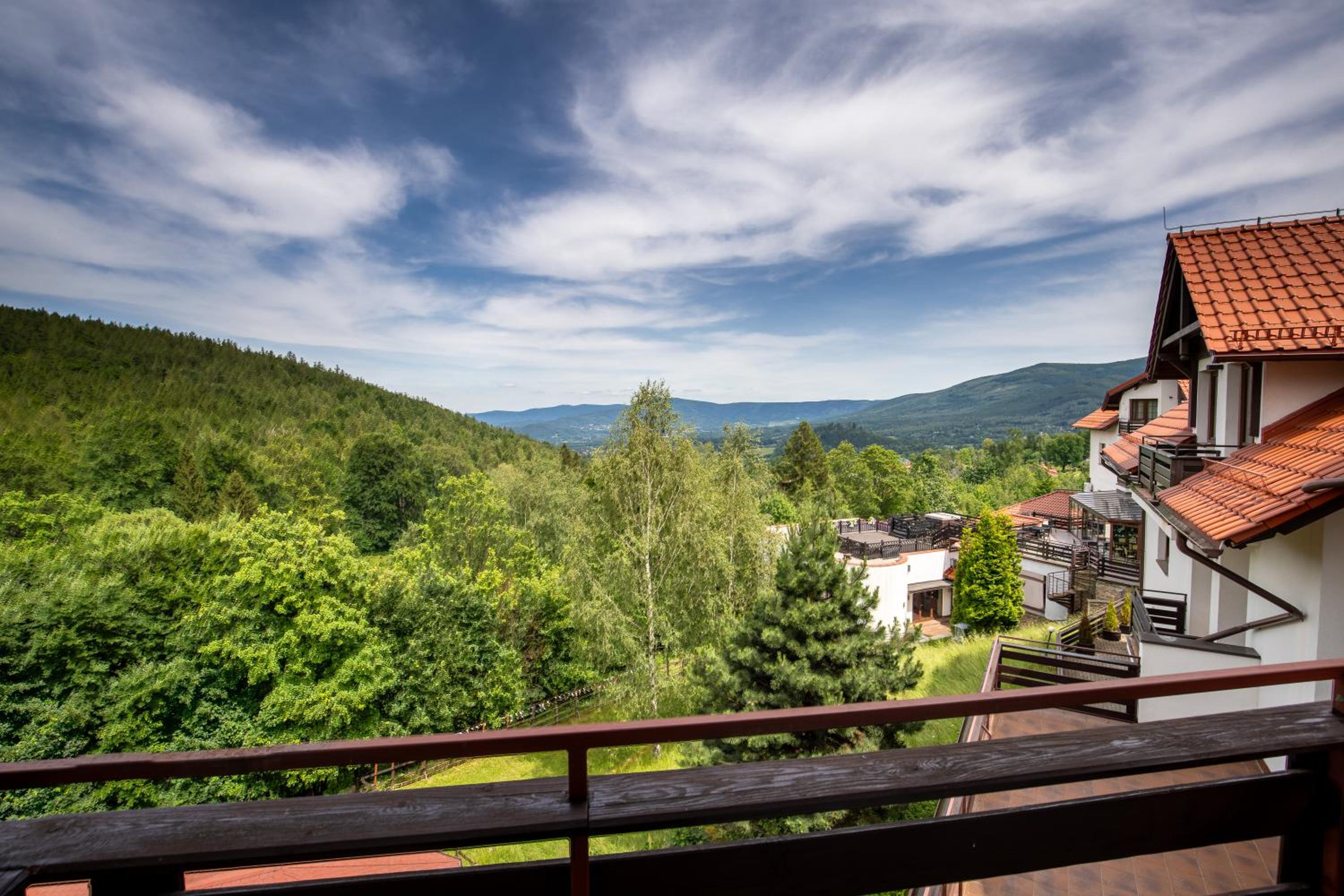 Hotel czysty, wyposażony w basen i sauny. Można skorzystać z zabiegów w SPA. Dobre i zróżnicowane jedzenie. Jest możliwość spędzenia czasu w ogrodzie zimowym, na bilardzie. Położony blisko szlaku do Sosnówki. Bardzo mi się podobał. Wrócę tu.