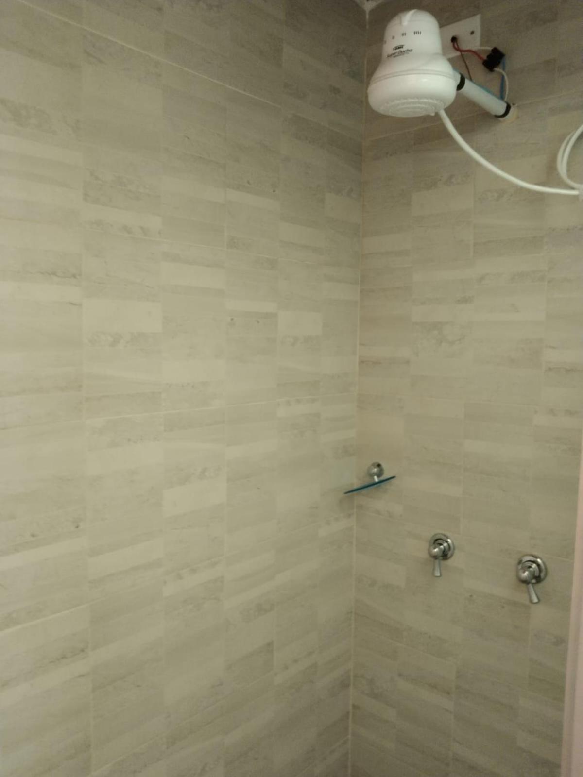 The shower area could perhaps be cleaned more thoroughly, grouting in edges etc.