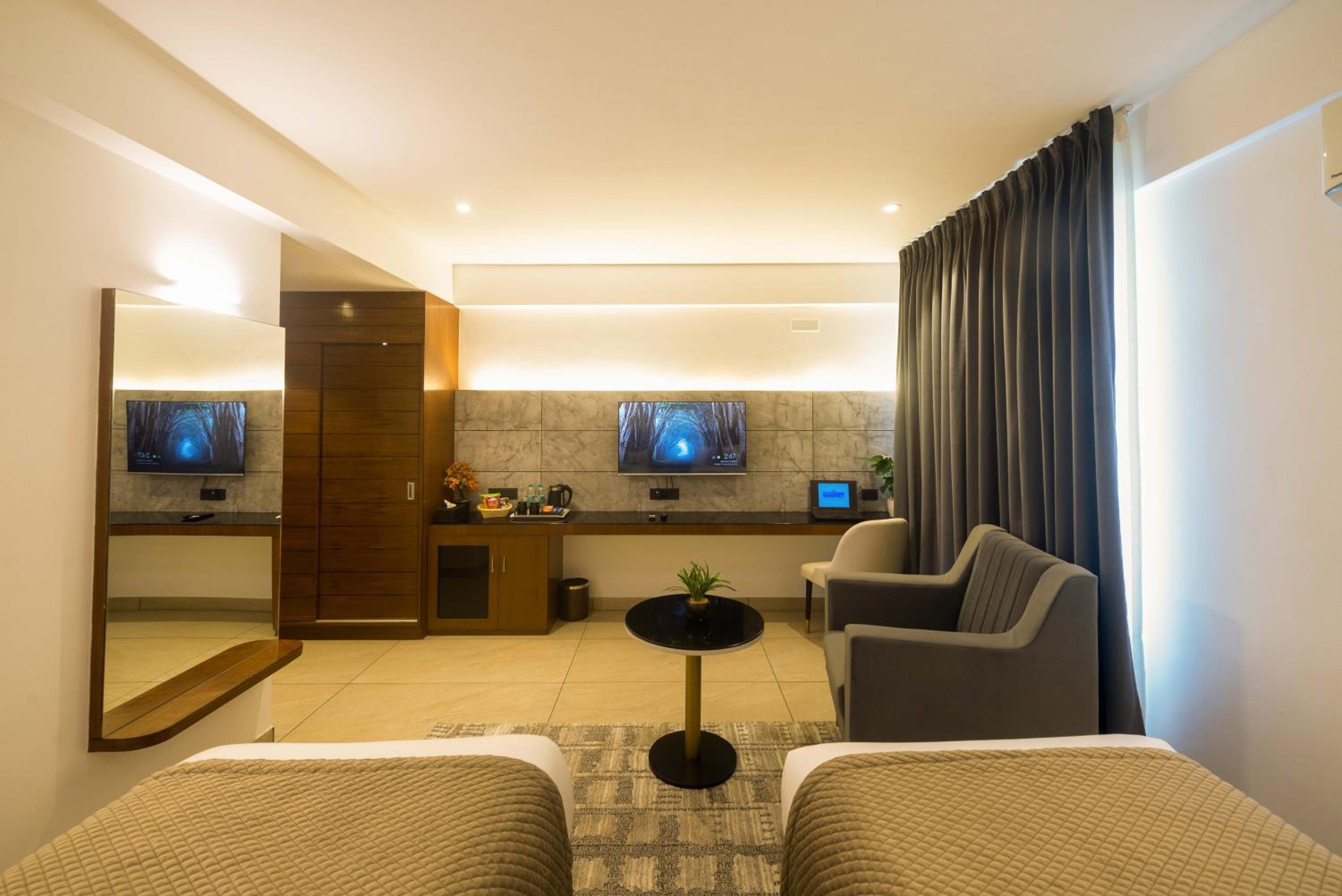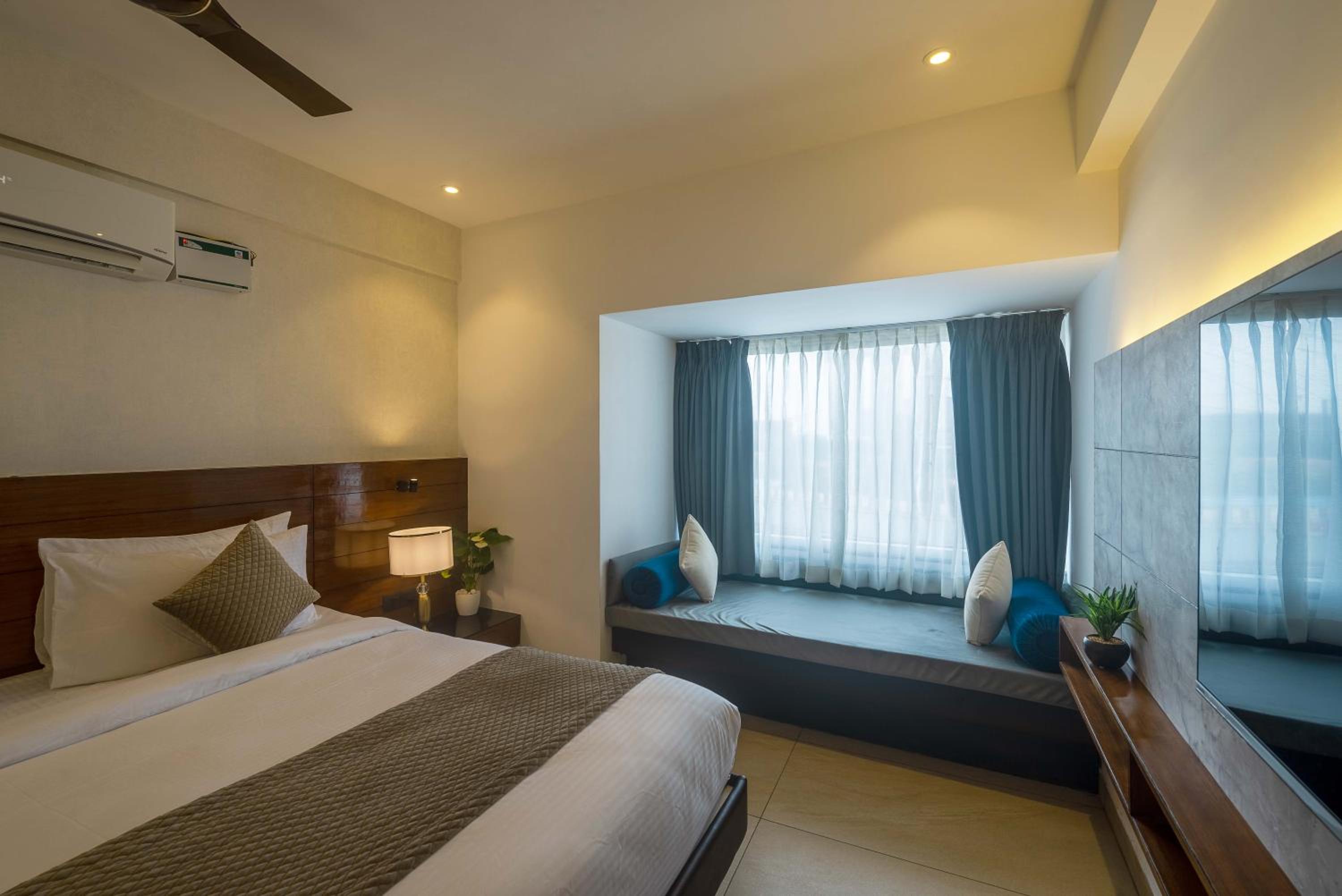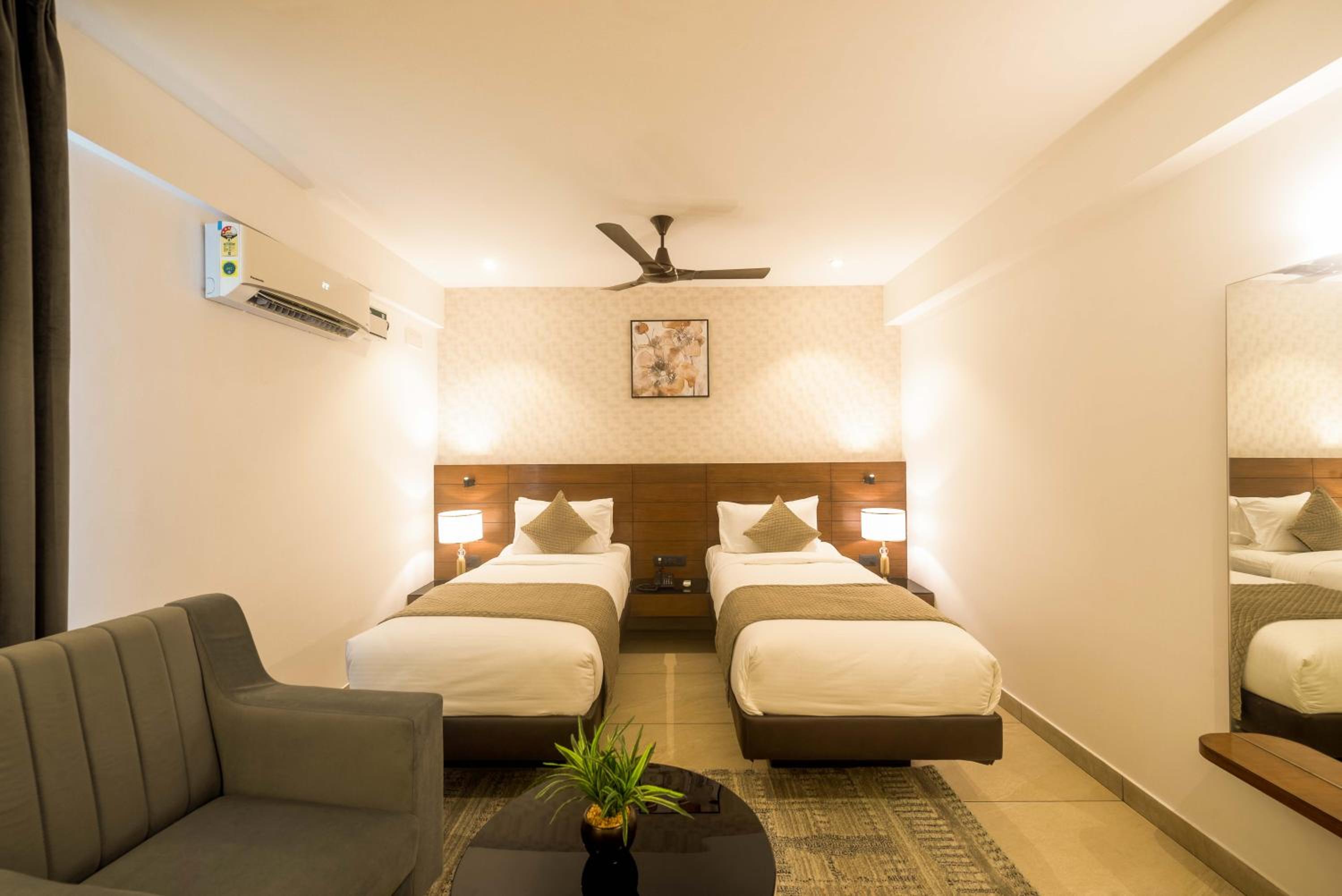 Experience a lavish stay at Royal Ace Boutique Hotel - Manyata Techpark, offering stylish guest rooms equipped with modern amenities like air conditioning, flat-screen TVs, and scenic city views.