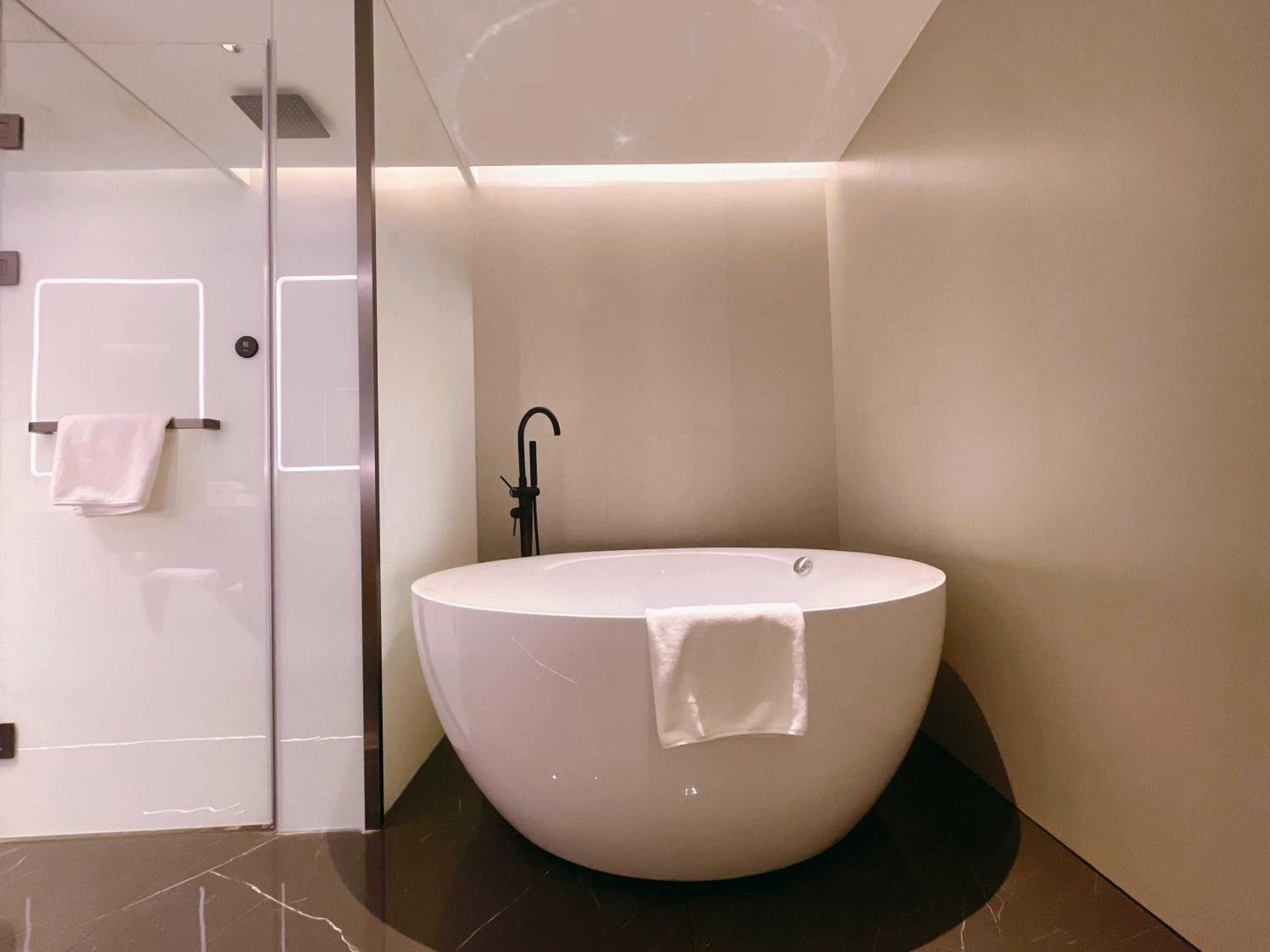 Professional staff, very clean rooms and installations. Location is a bit far and staff does not speak English.