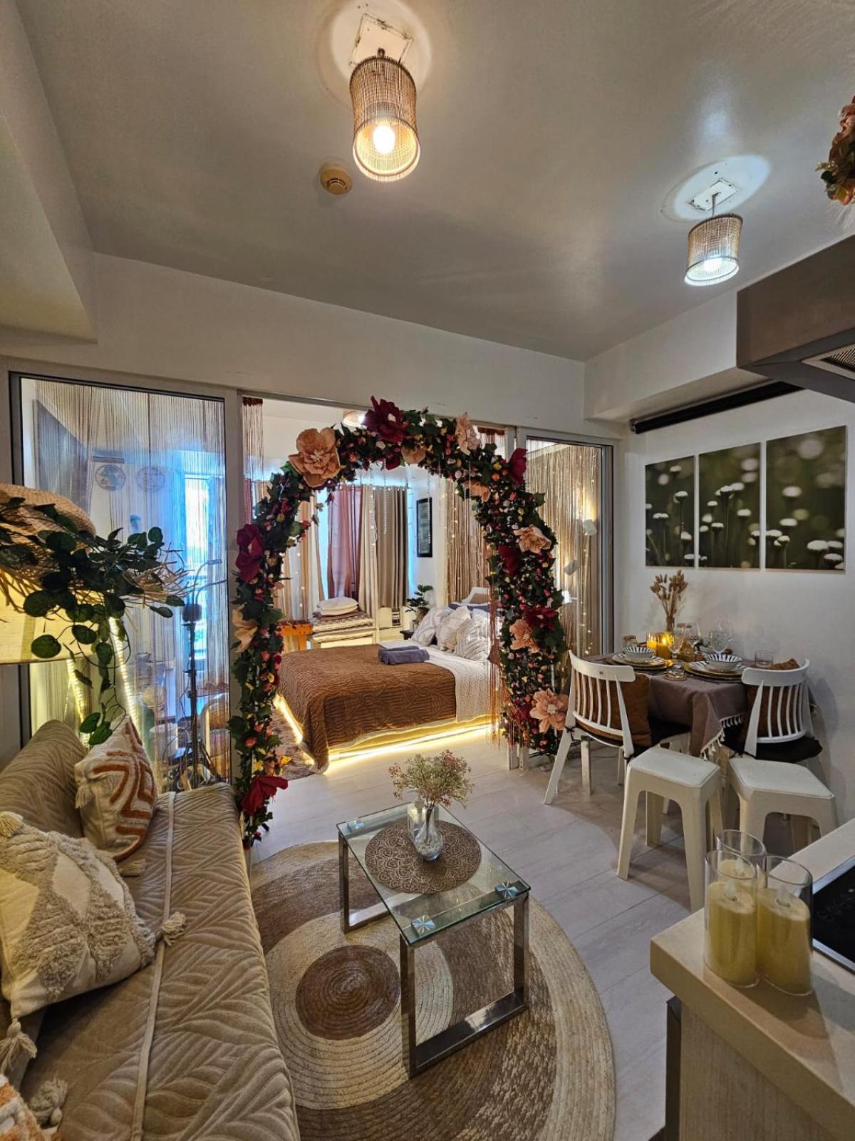 Experience comfort and style in the heart of Manila with a fully equipped kitchen, dining area, and a cozy balcony at Azure Urban Residences 1 Bedroom unit.