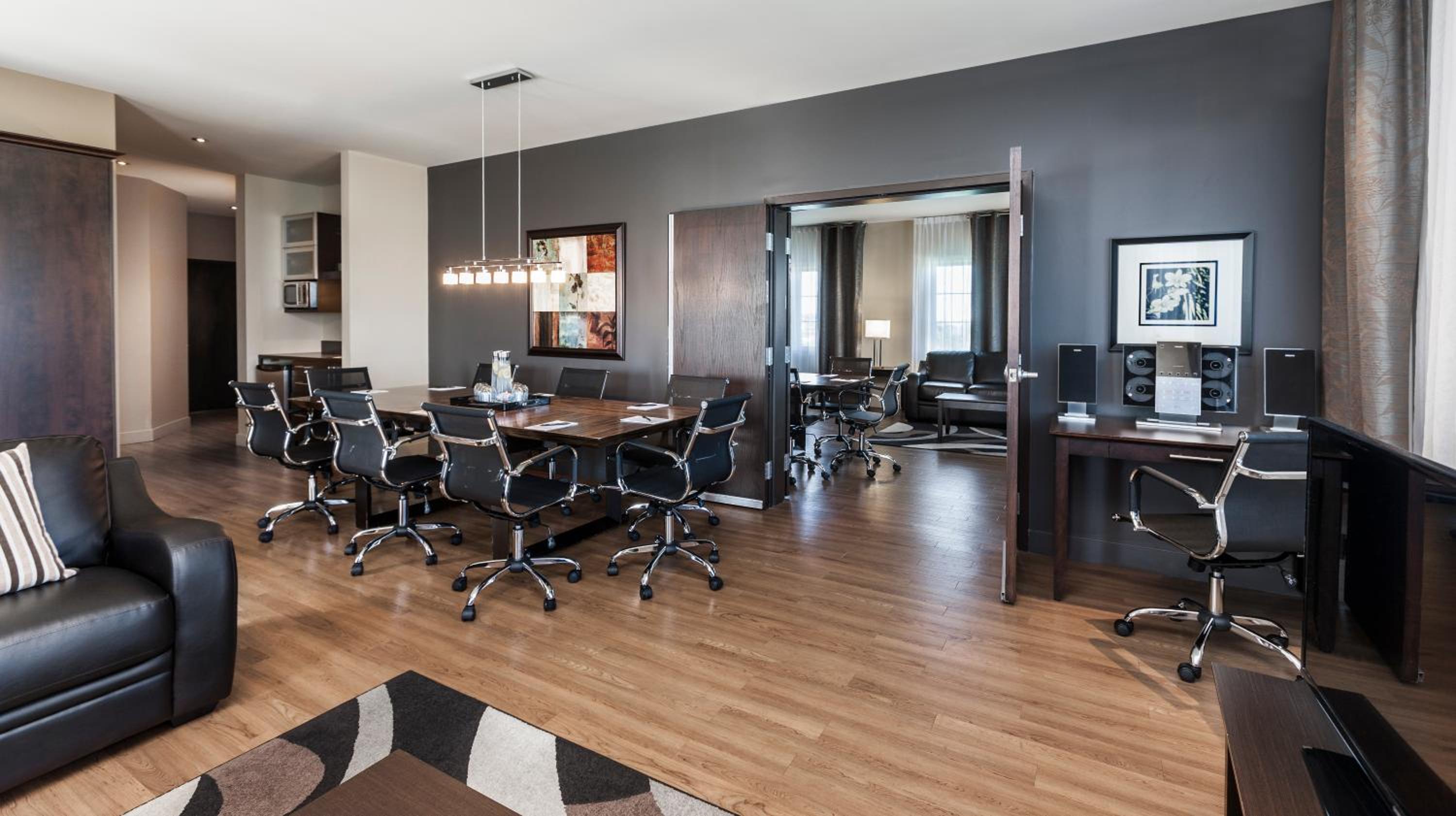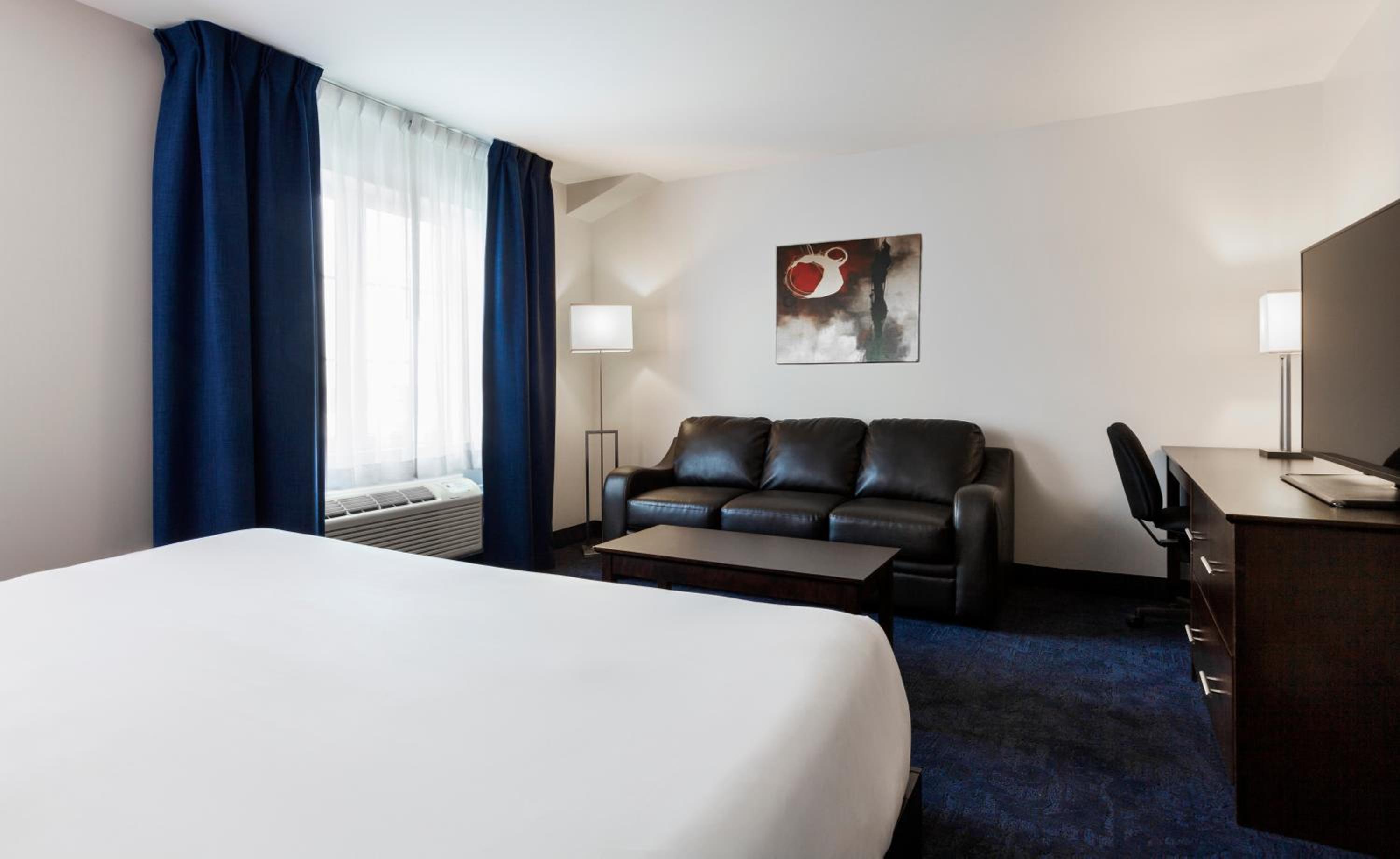 Each room at Imperia Hotel & Suites Saint-Eustache boasts a flat-screen TV, dark wood furniture, ironing facilities, and air conditioning for ultimate comfort during your stay.