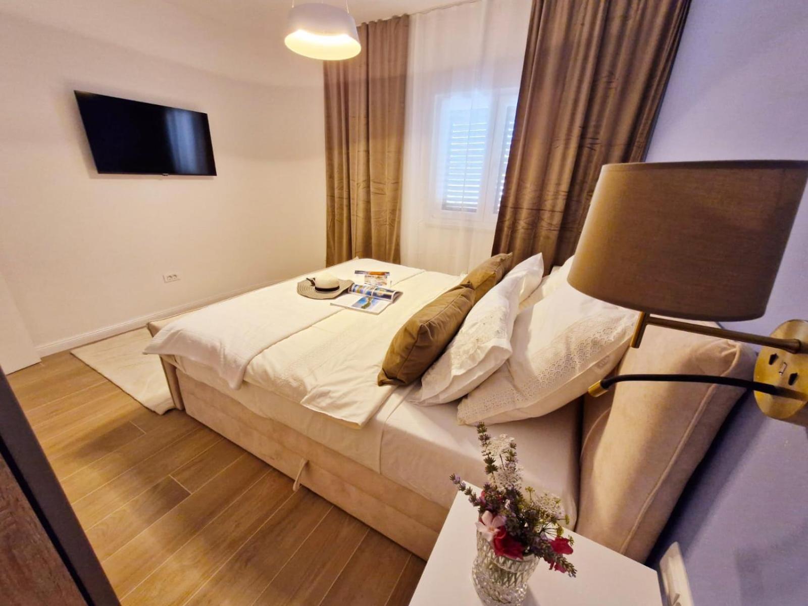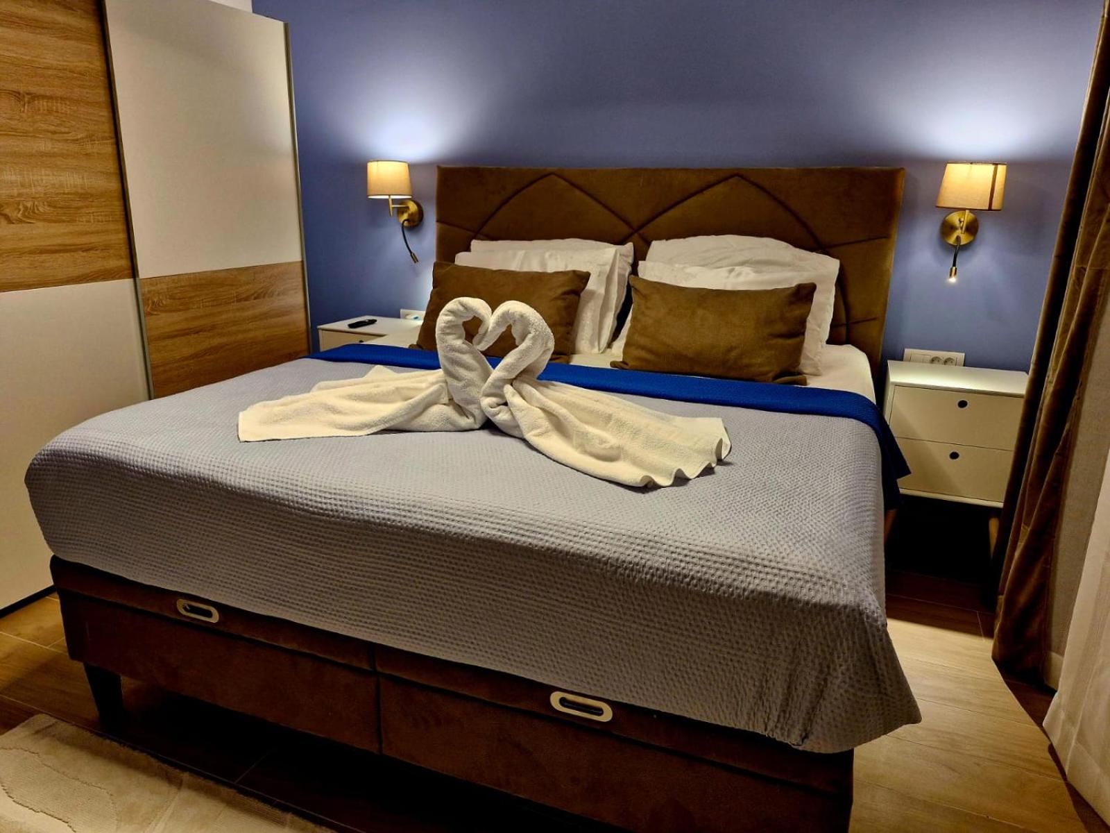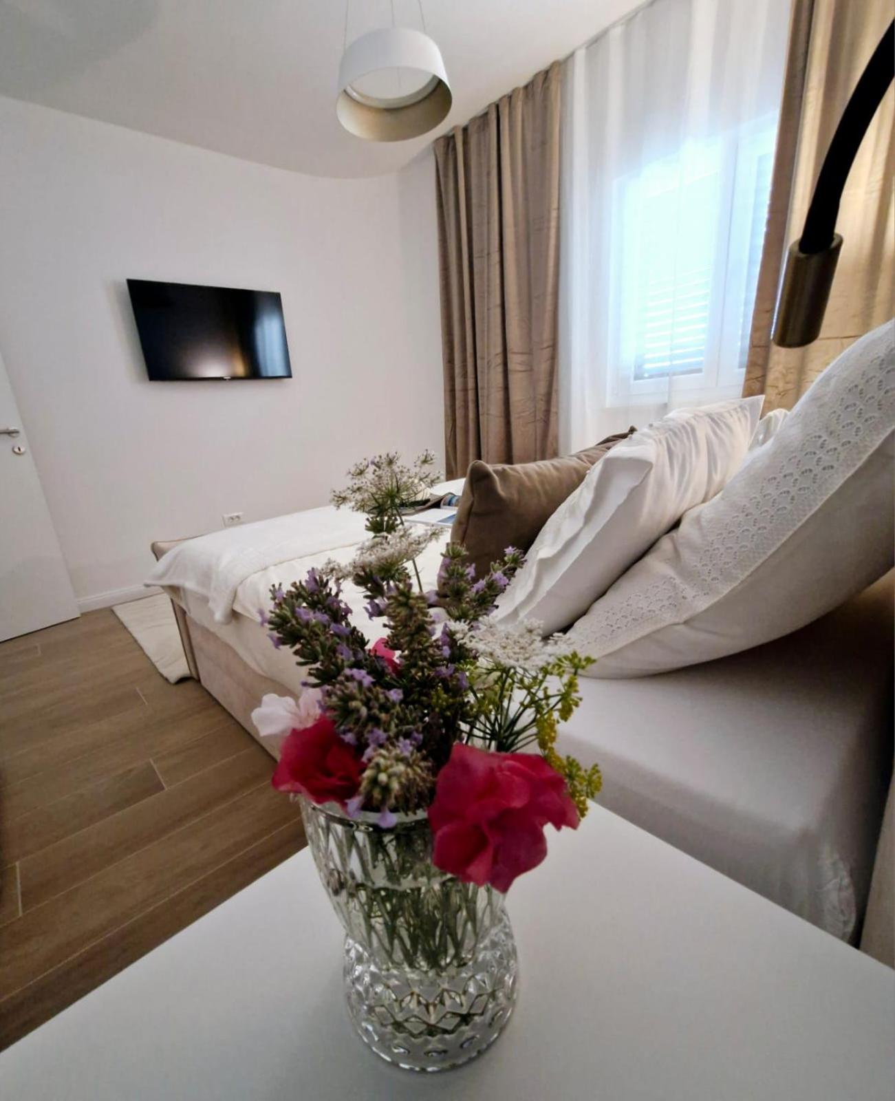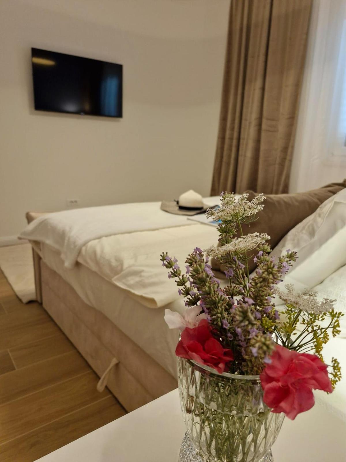 Experience the ultimate relaxation at Sea view Luxury Apart Hotel Villa Conte with its romantic SPA, infinity pool, and sauna. Savor the stunning views of both the mountains and pool while enjoying top-of-the-line amenities.