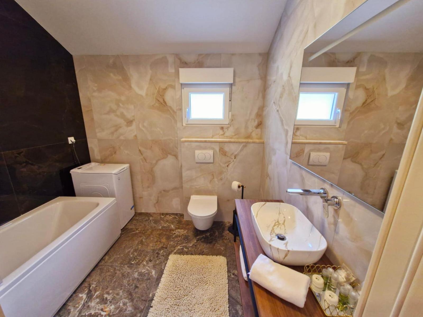 Place with incredible view. This is a place where we fully rest. Peace and quiet, beautiful view, very friendly owner ☺️ we highly recommend! Jacuzzi is for apartment and you can use it as much as you want, brillant!