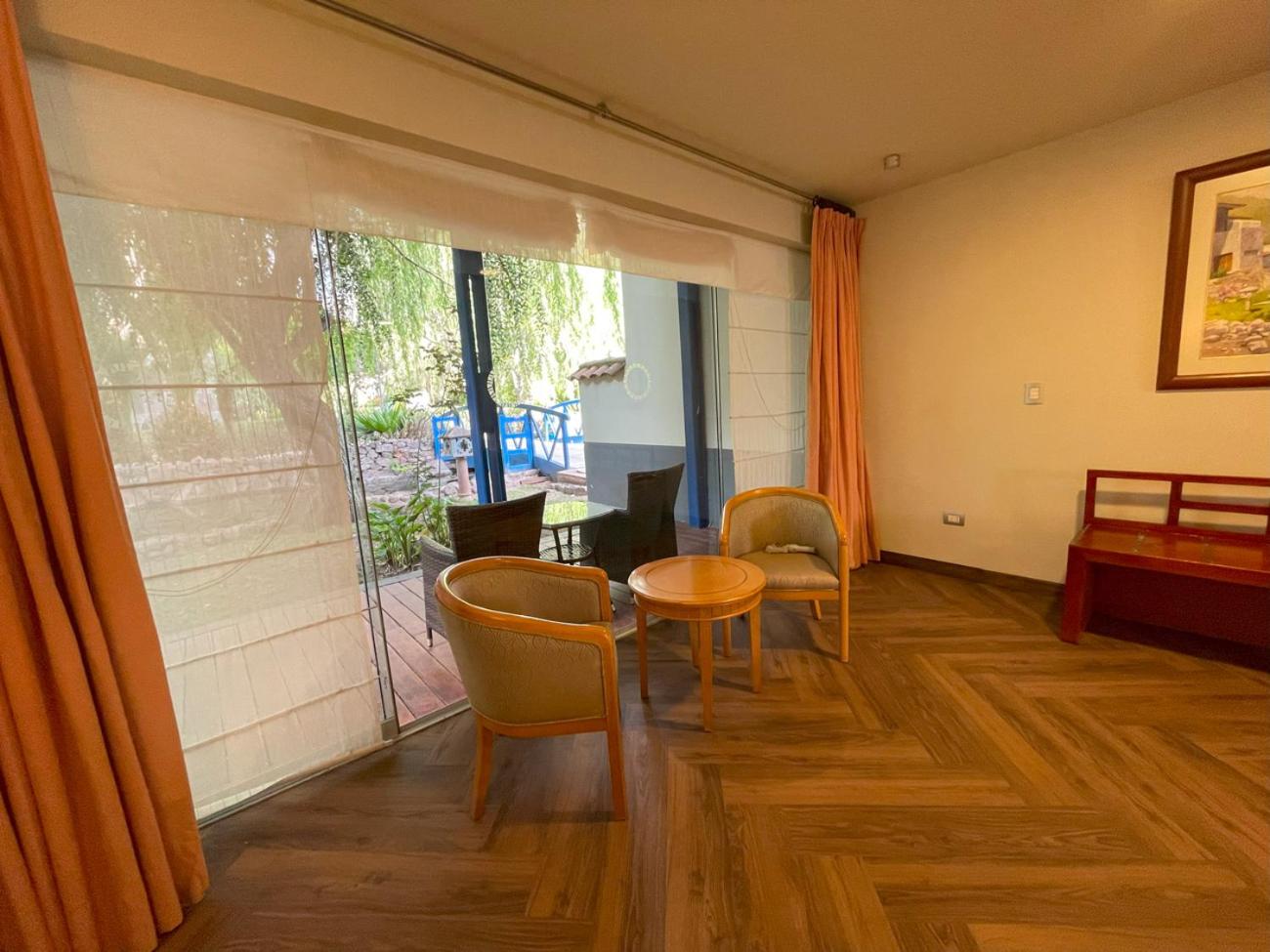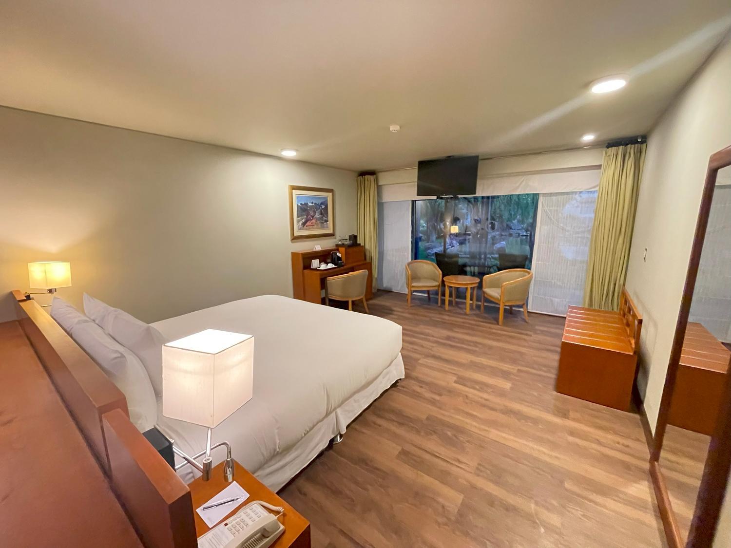Sauna un poco caro pero lo disfrutas hazta altas hr dela noche, perfecto para familias mis hijos encantados con los animales las camas cómodas el desayuno está bien 👌🏻 y todo lo único que fue difícil es axeso ya que l hotel tiene transporte privado y cuesta mucho en dólares así que tuvimos que llamar taxi 🚕 de la cuidad 30 soles a Urubanba o menos incluso nos cobraron la cosa es que en hotel