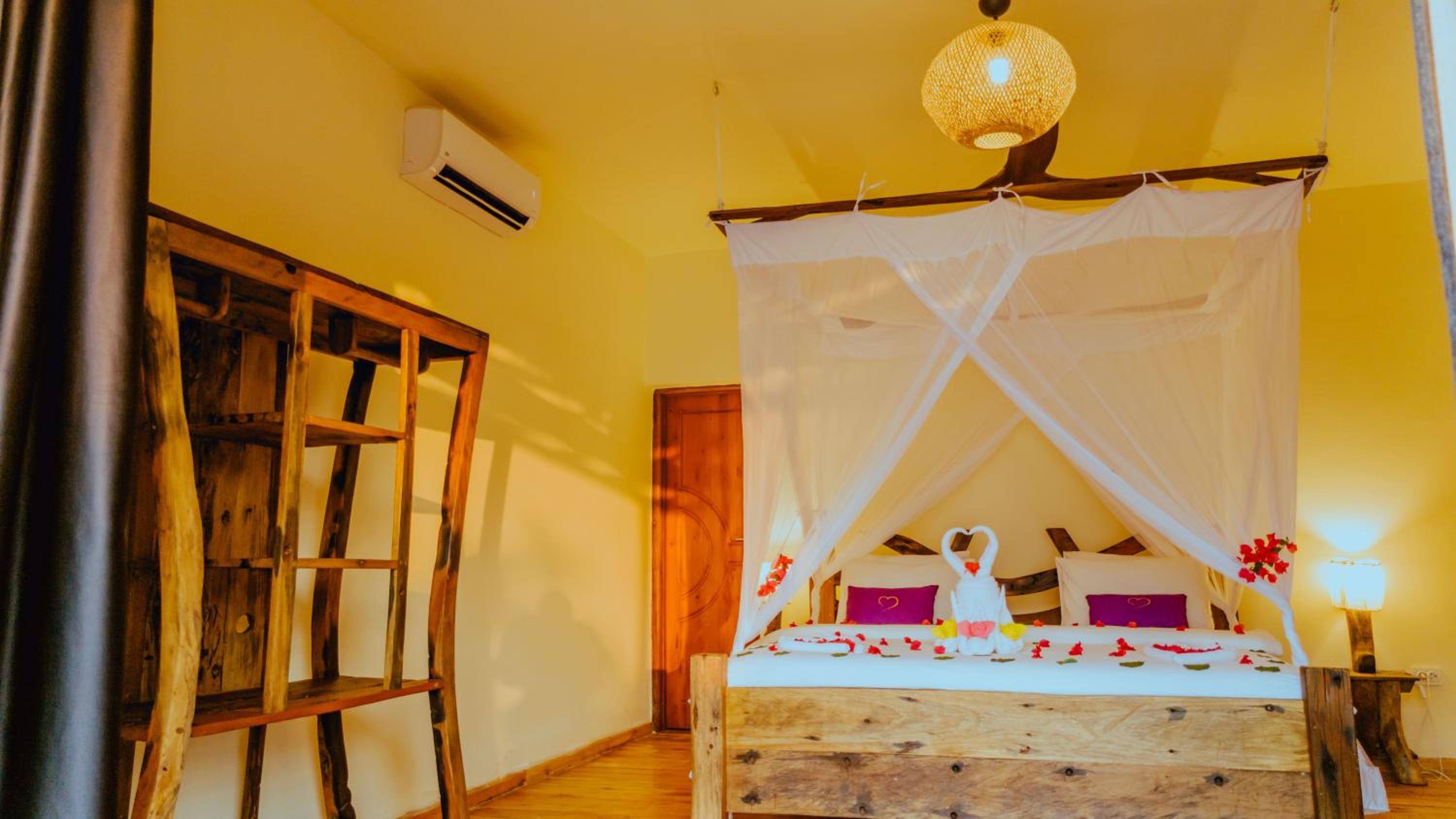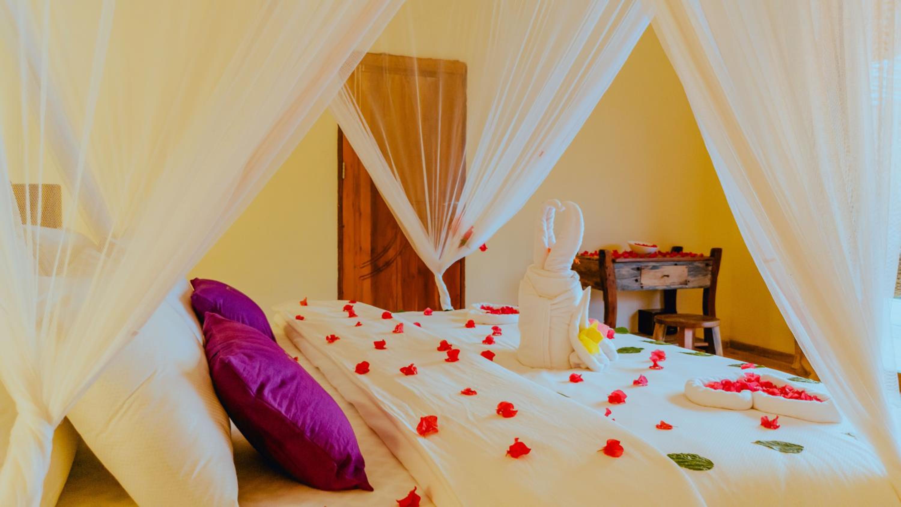 The staff who take care of us were very friendly, Isaac and Mohamed will especially remain in our hearts, the chef was also very helpful and even taught us their excellent local Chapatti. Cleanliness very high level. Mosquito treatment included every evening. We used the local spa and treated ourselves to relaxation in the form of a typical Zanzibarian full body massage. When we left, we were pleasantly surprised by the receptionist who got up at 5 am to come and say goodbye to us and give us a warm hug. The location was very quiet, the tides of the sea were variable.