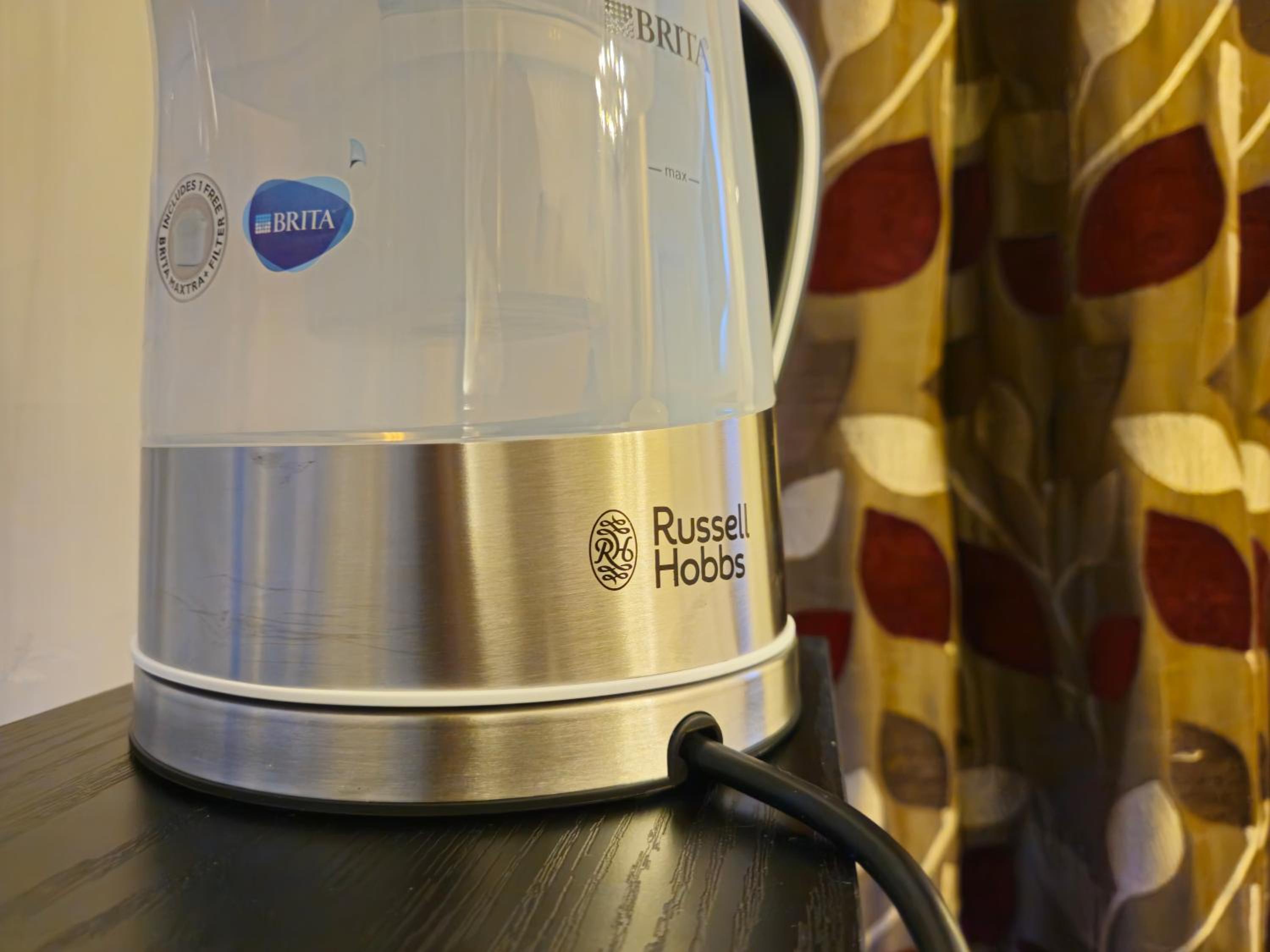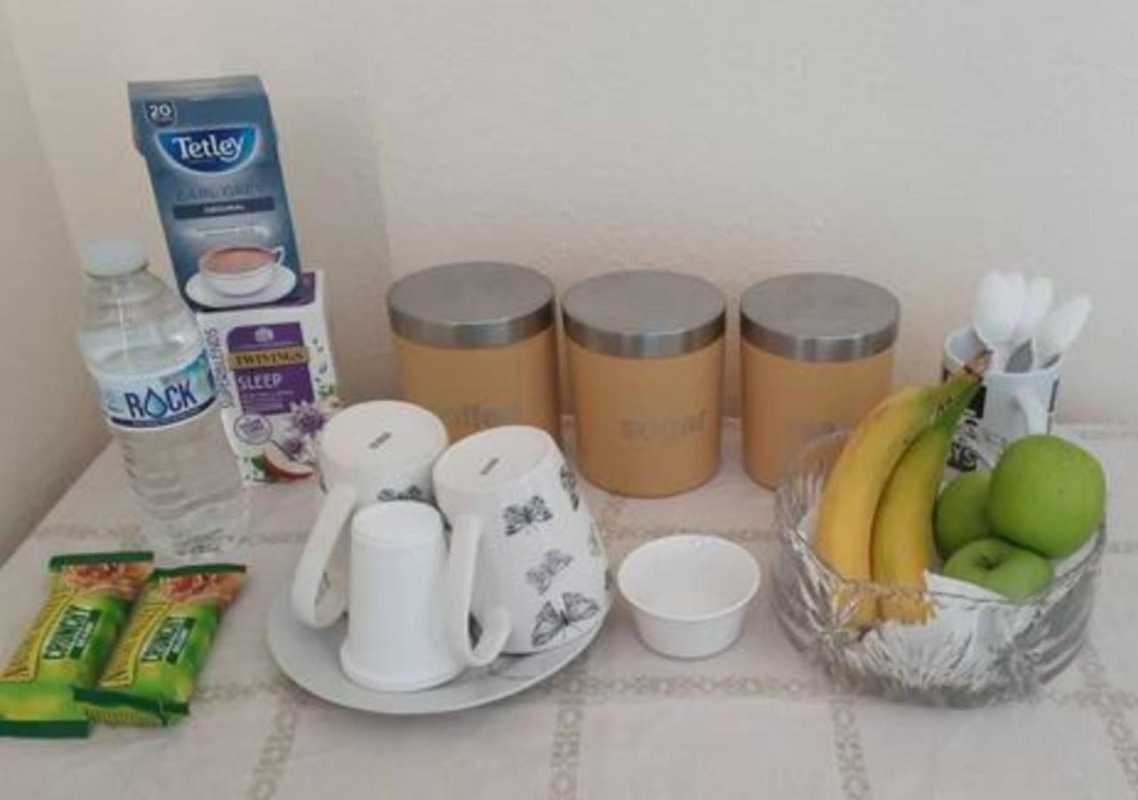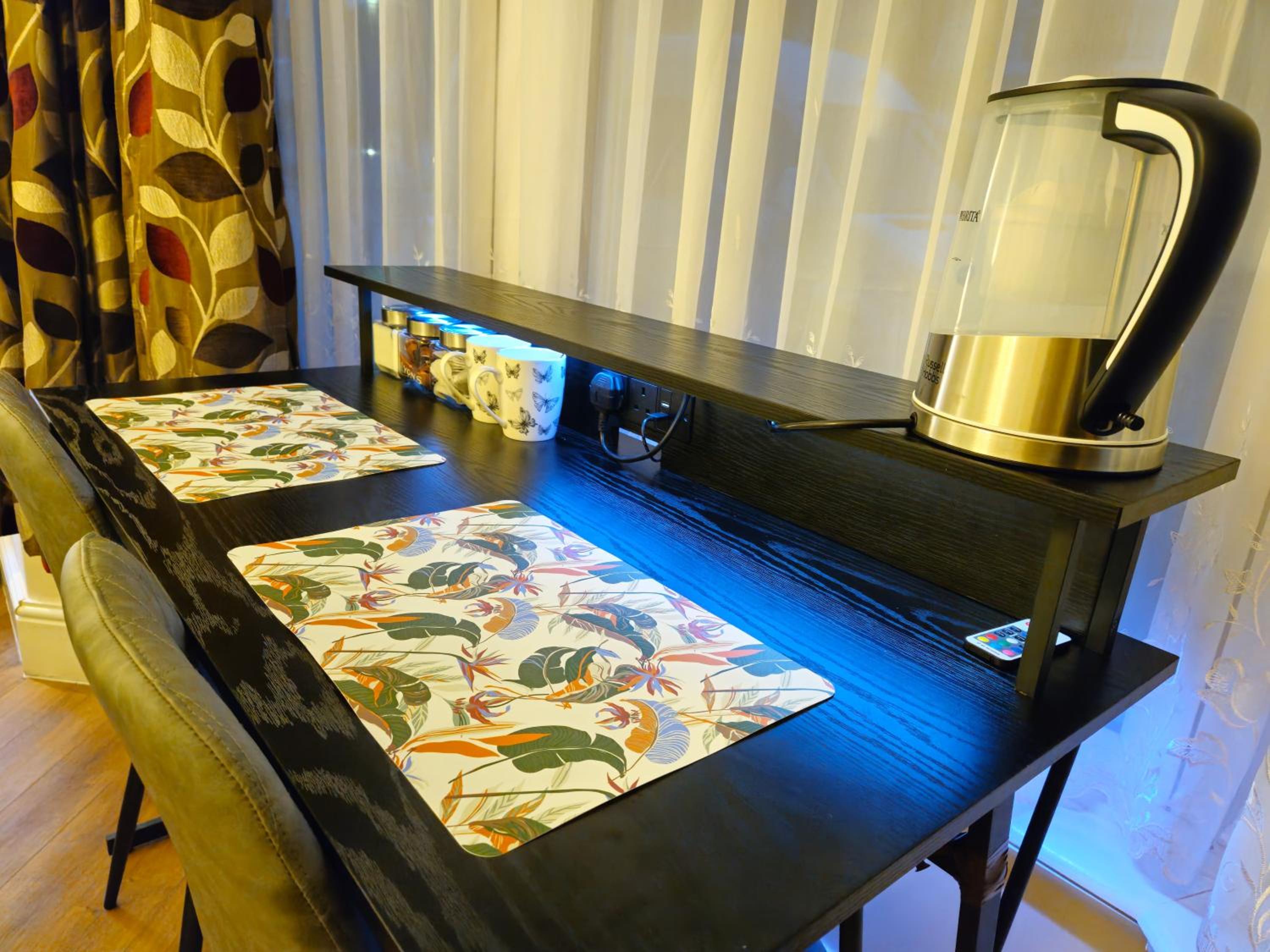 A desk with a filter kettle and tea and coffee was supplied although we always take our own it was a lovely addition and bottled water was supplied.