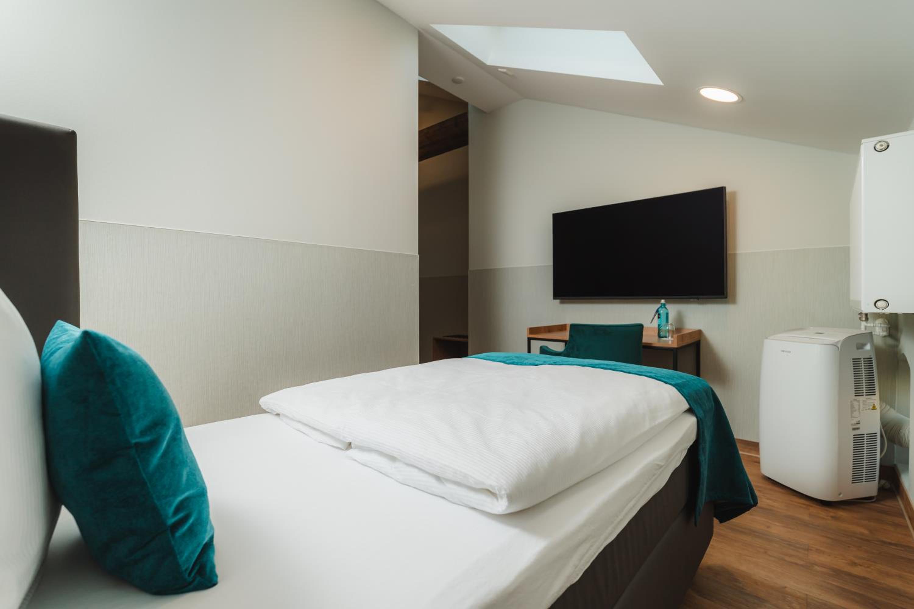 Schnelle und unkomplizierte Buchung. Buchungsbestätigung und Zugangscode schnell und gem. den Vorgaben auf Handy angekommen. Einchecken völlig problemlos über Handy. Parken und Zimmerzugang ebenfalls völlig unkompliziert. Zimmer sehr sauber und für wenig Übernachtungen völlig ausreichend. Bad sehr schön. Frühstück regional und ausreichend. Sehr nette Bedienung. Gerne wieder.