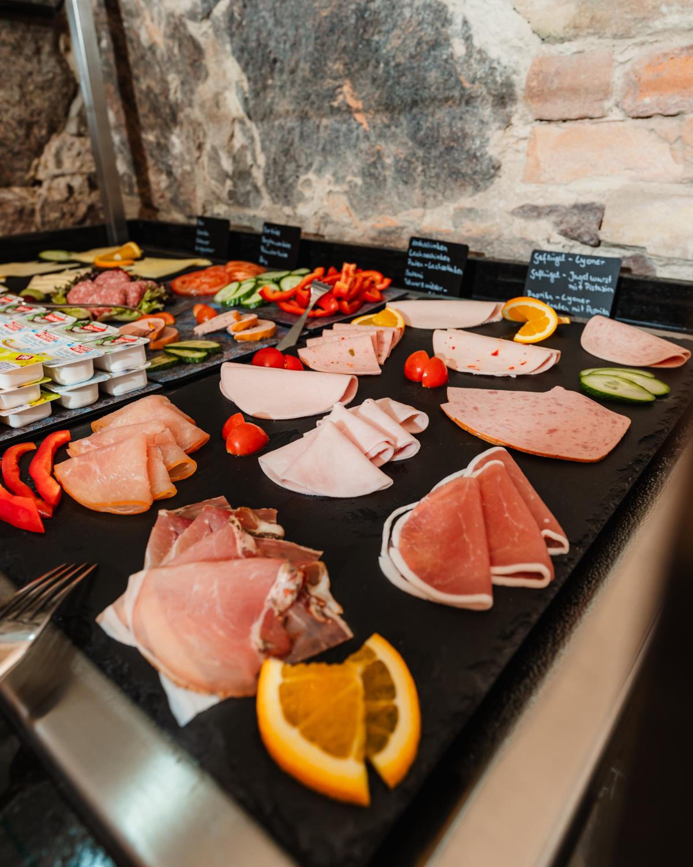Frühstück und Räumlichkeiten.