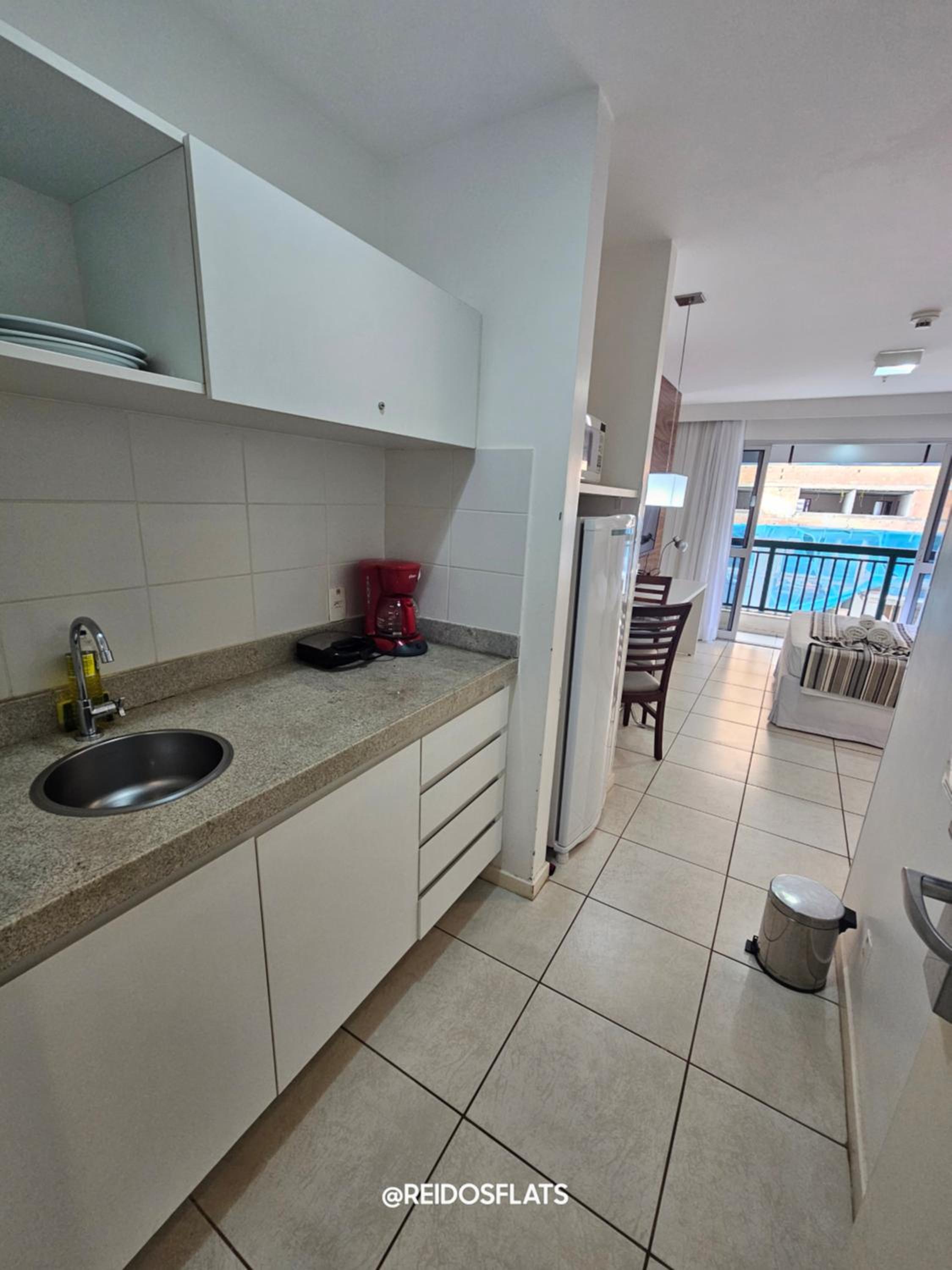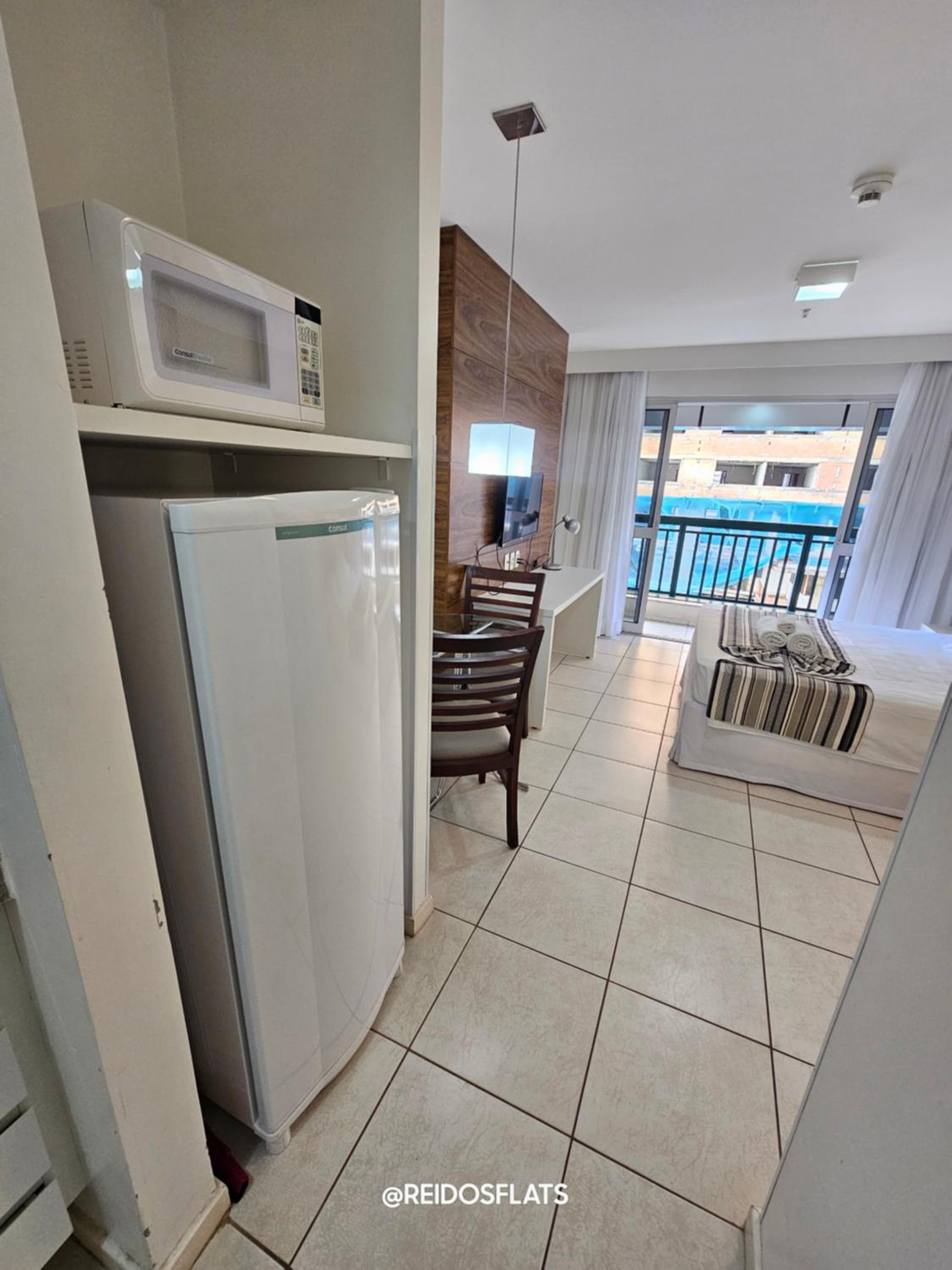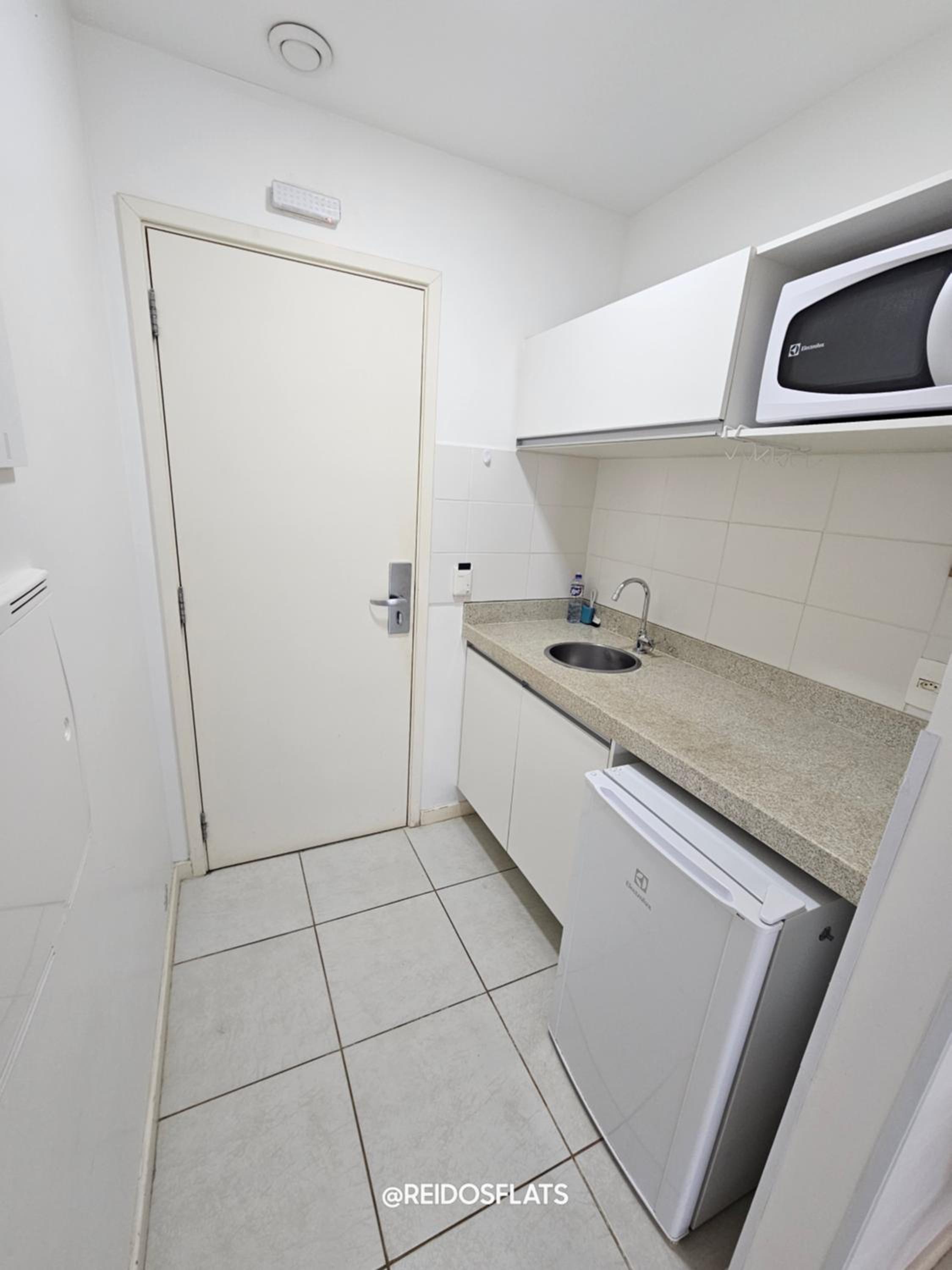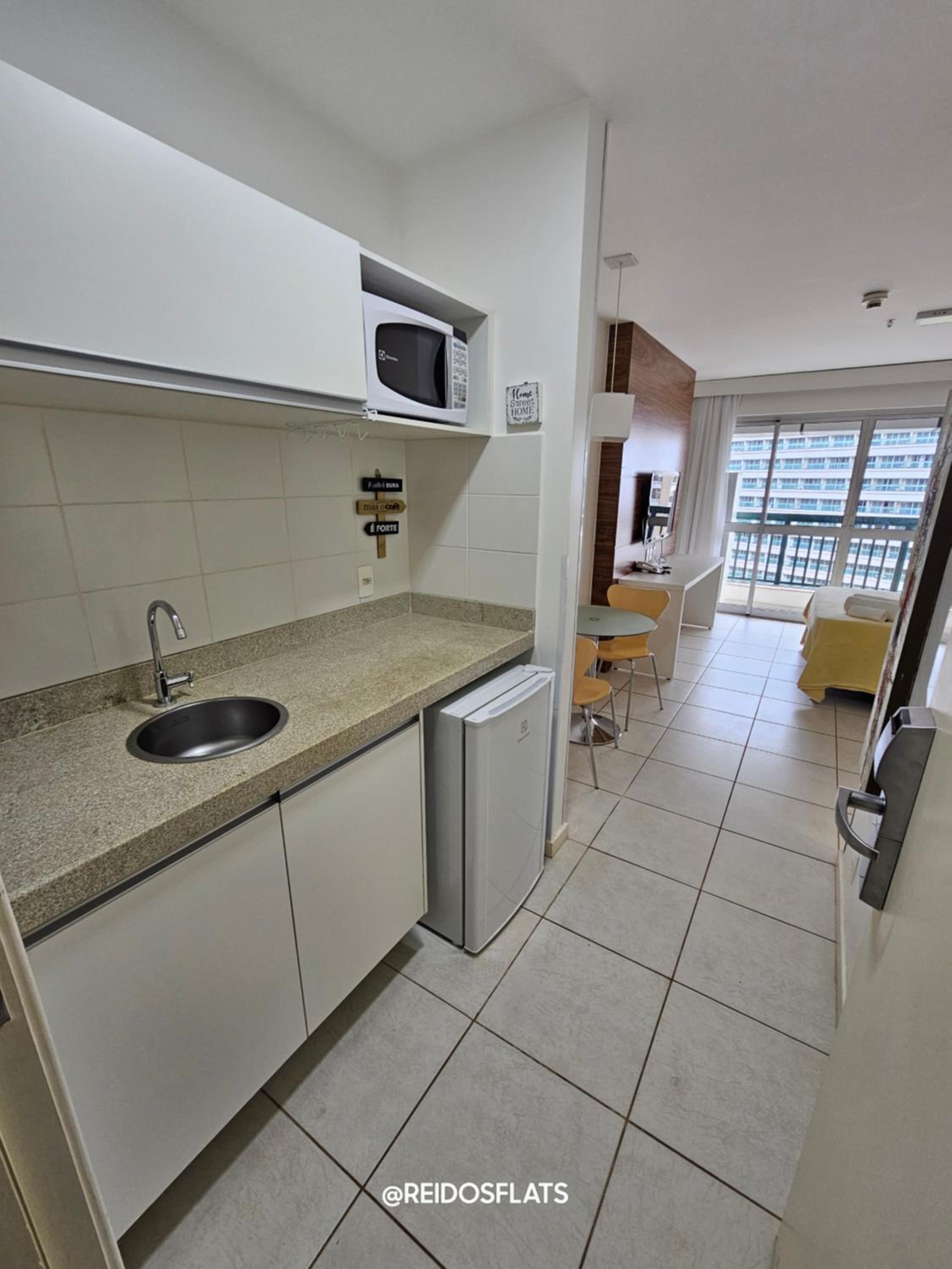 Flat completo com eletrodomésticos disponíveis para uso.