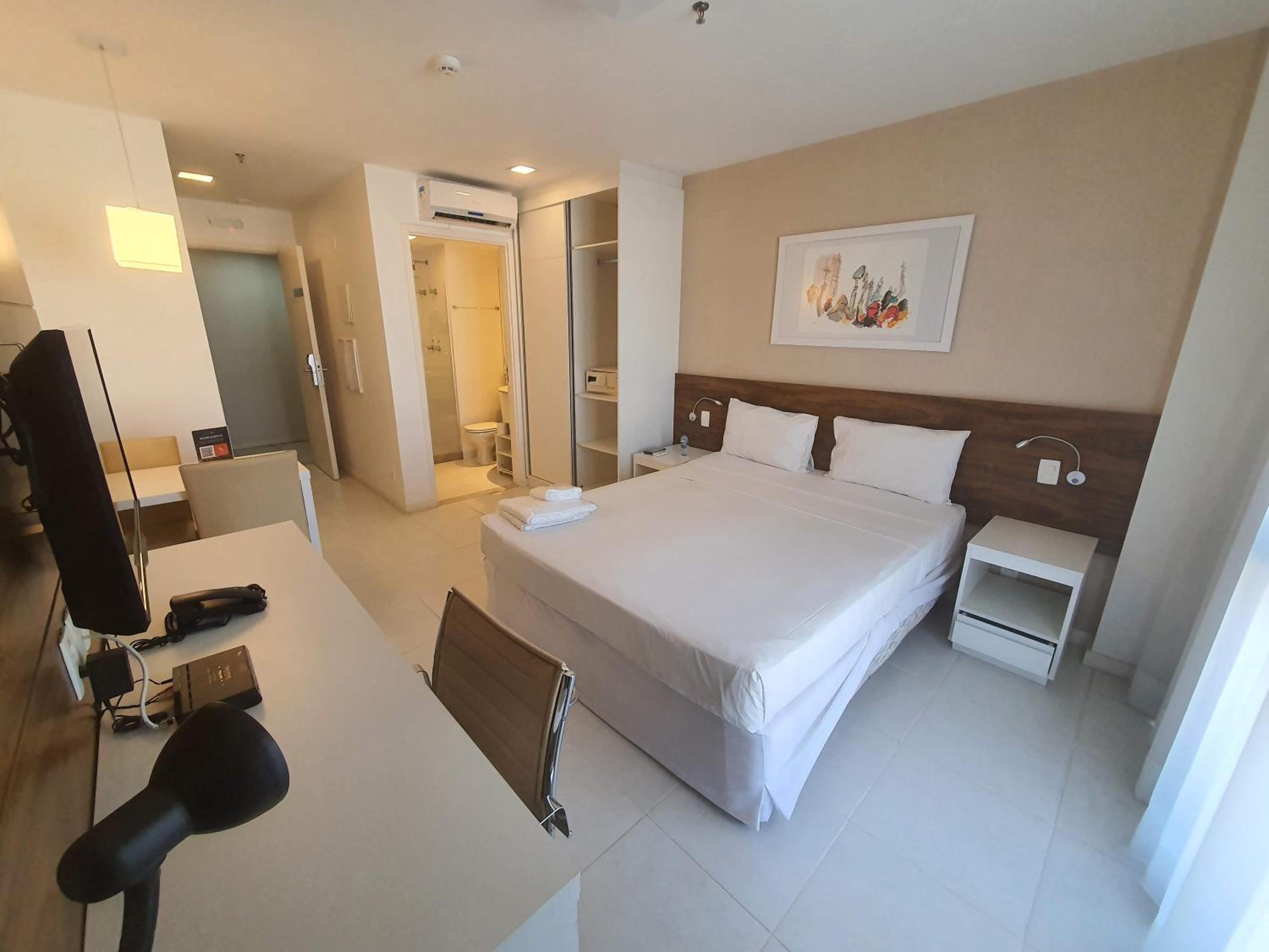 Each 4-star room is equipped with air conditioning, a flat-screen TV, and a private balcony offering picturesque city views. With attentive staff fluent in multiple languages and a prime location near popular attractions, FUSION EXPRESS guarantees a memorable stay. Book now for an unforgettable experience in Brasilia!
