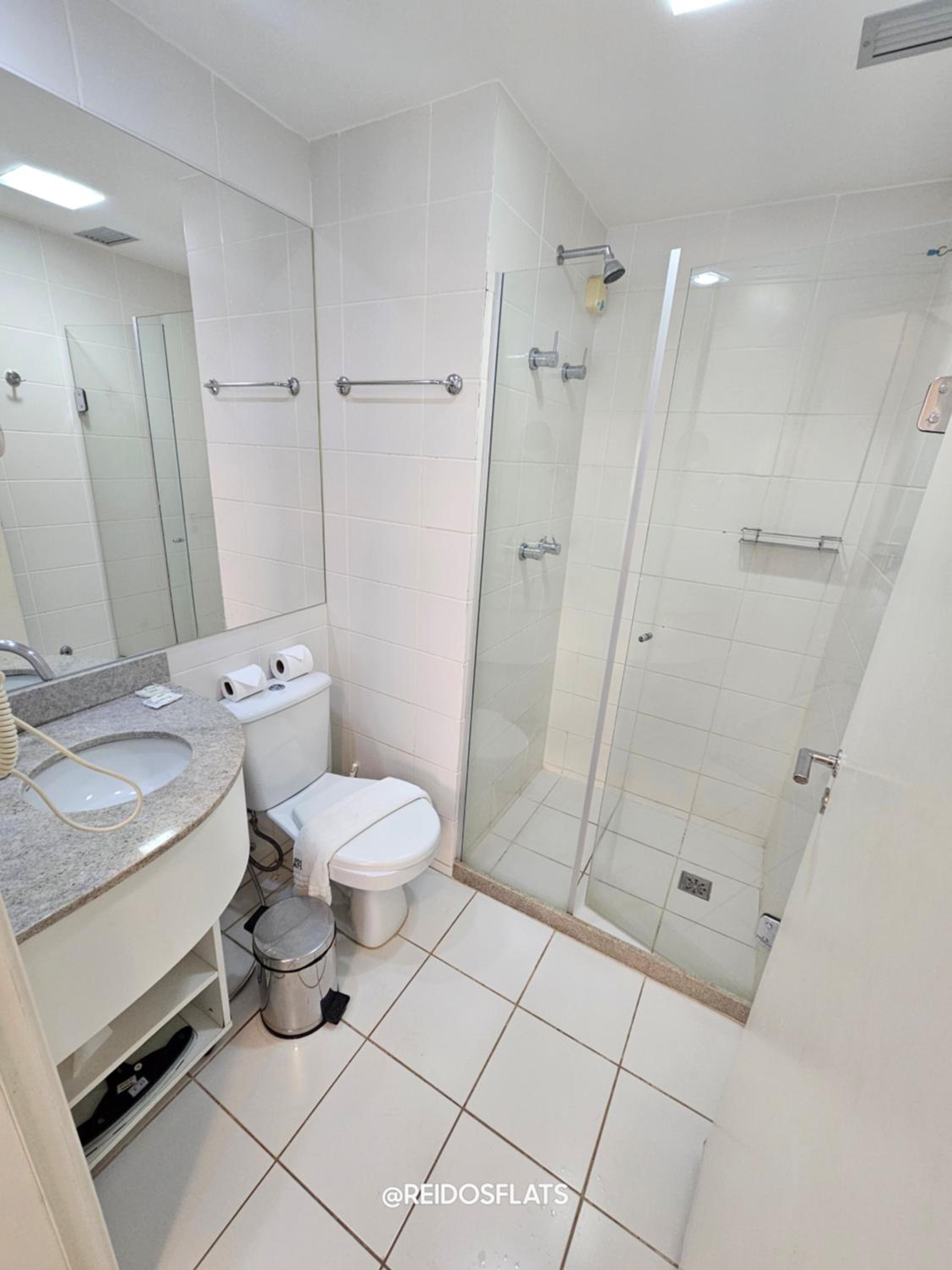 Limpeza do flat, deixou a desejar, chão com muita poeira, banheiro sem ducha higiênica
