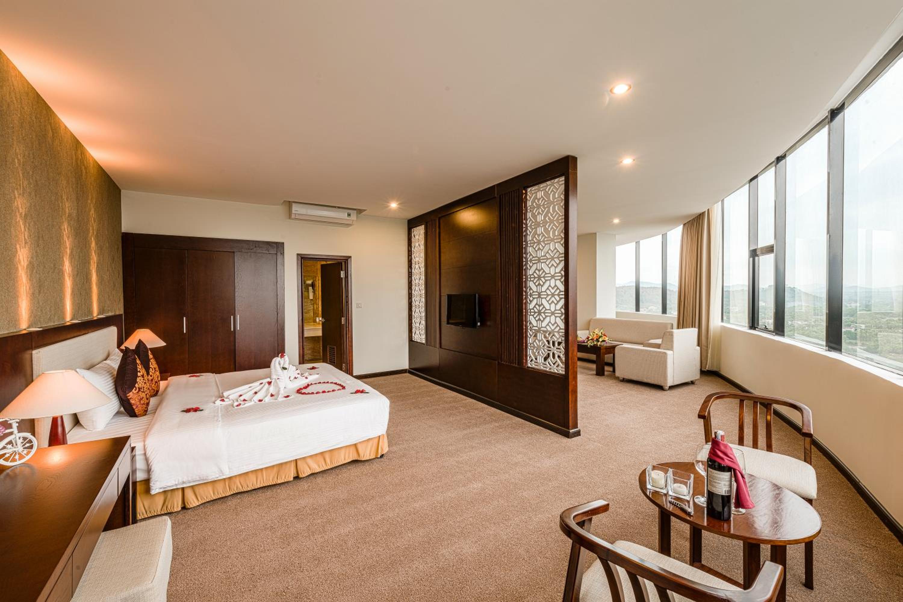 Muong Thanh Grand Ha Tinh Hotel offers air-conditioned rooms with free WiFi, ensuring a comfortable stay for guests. Each room is equipped with a desk and wardrobe, providing convenience and ample storage space.