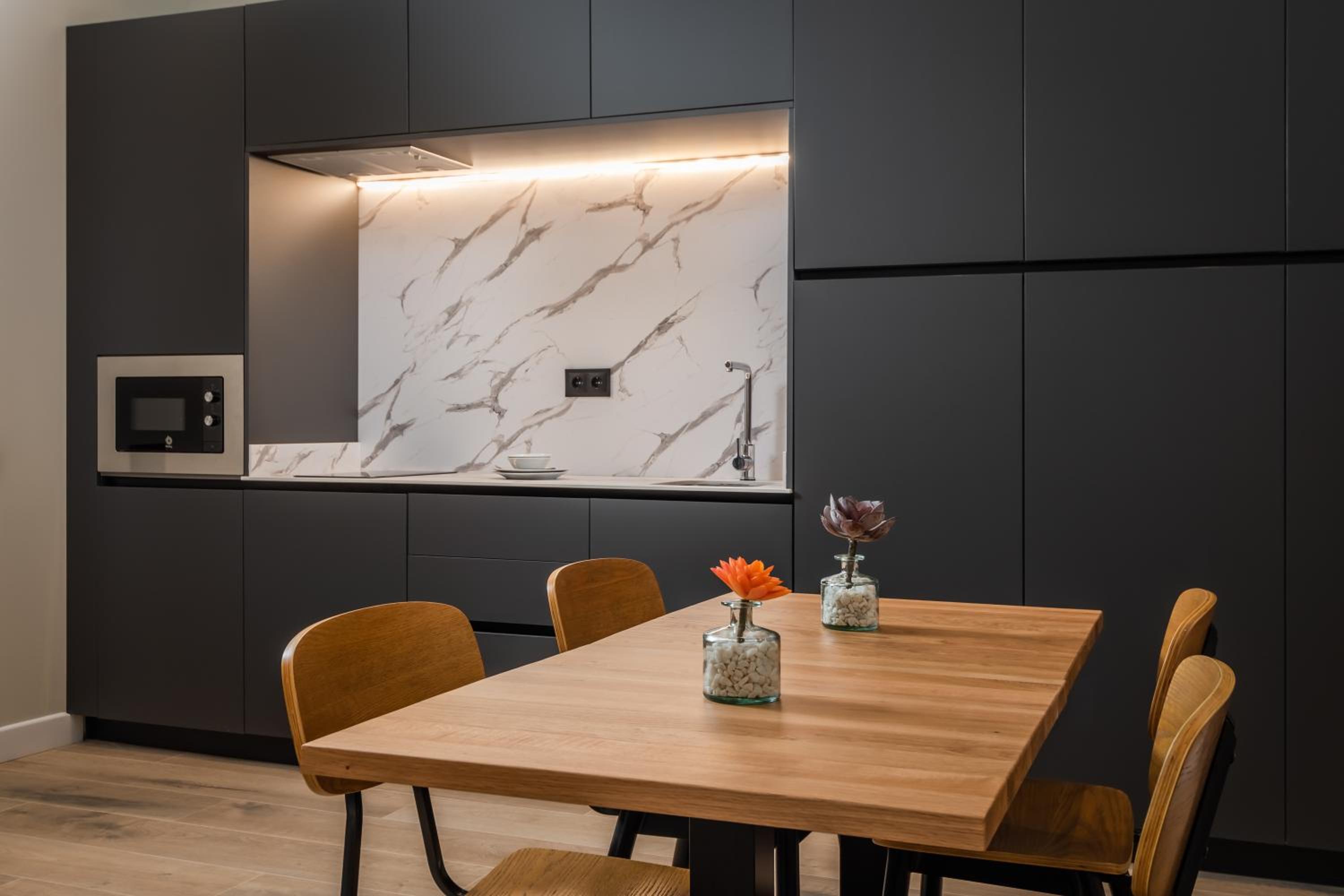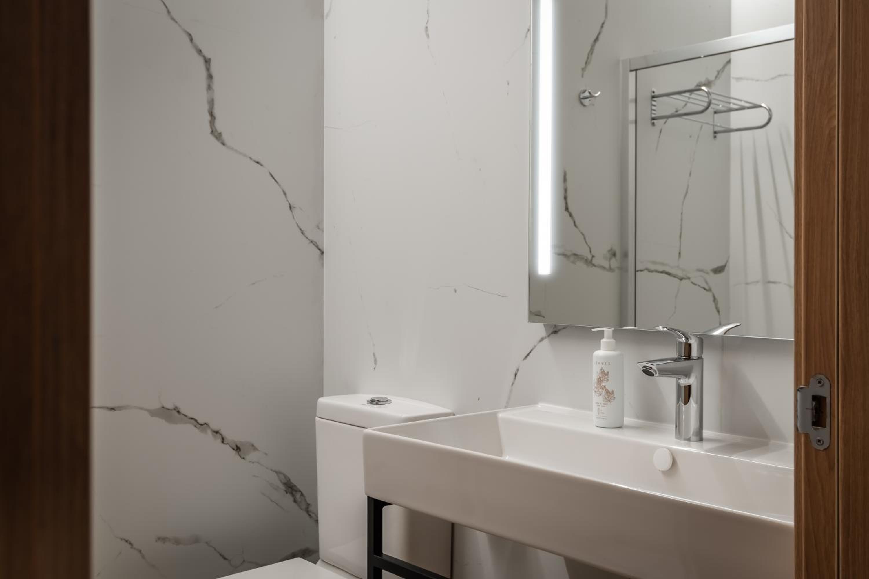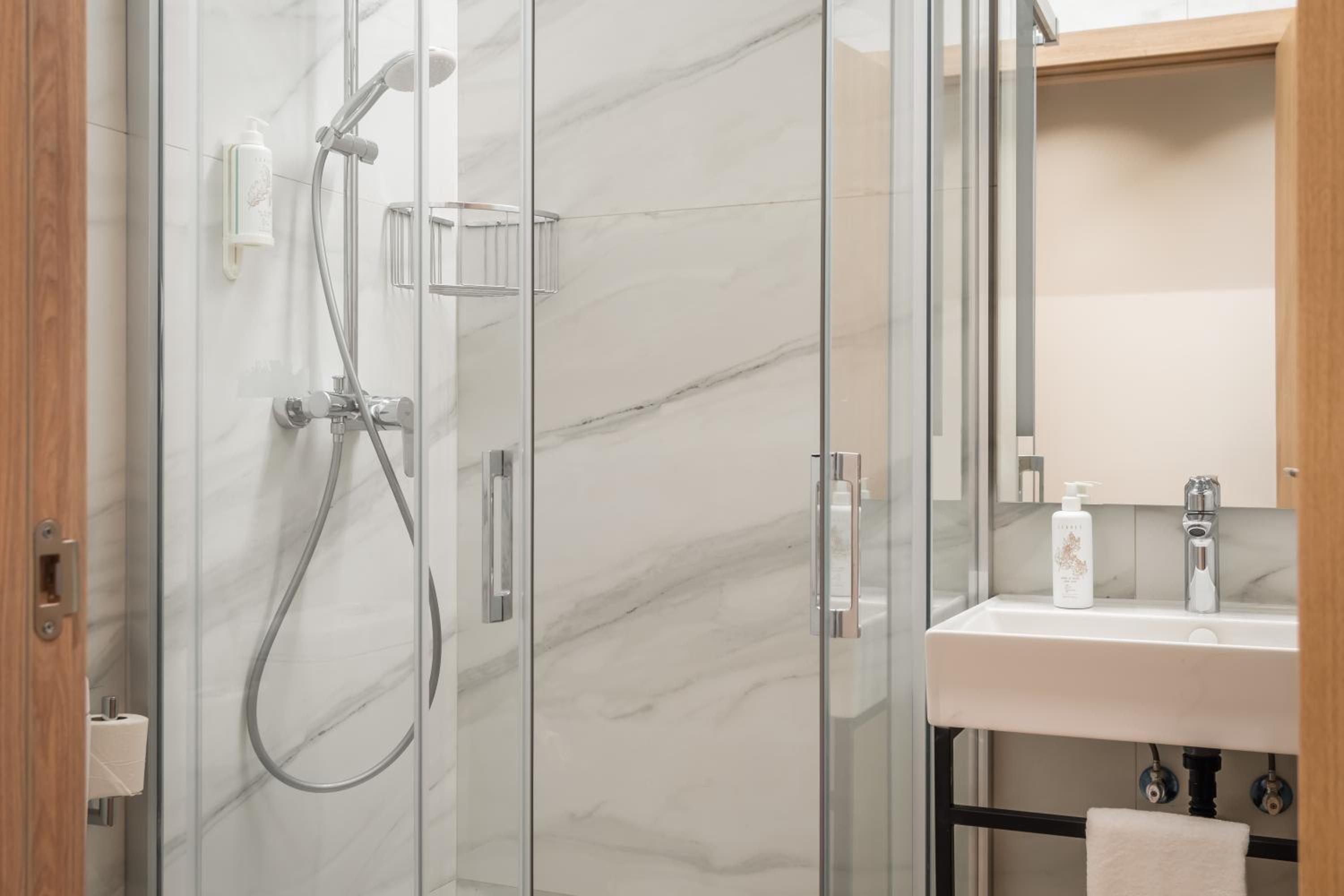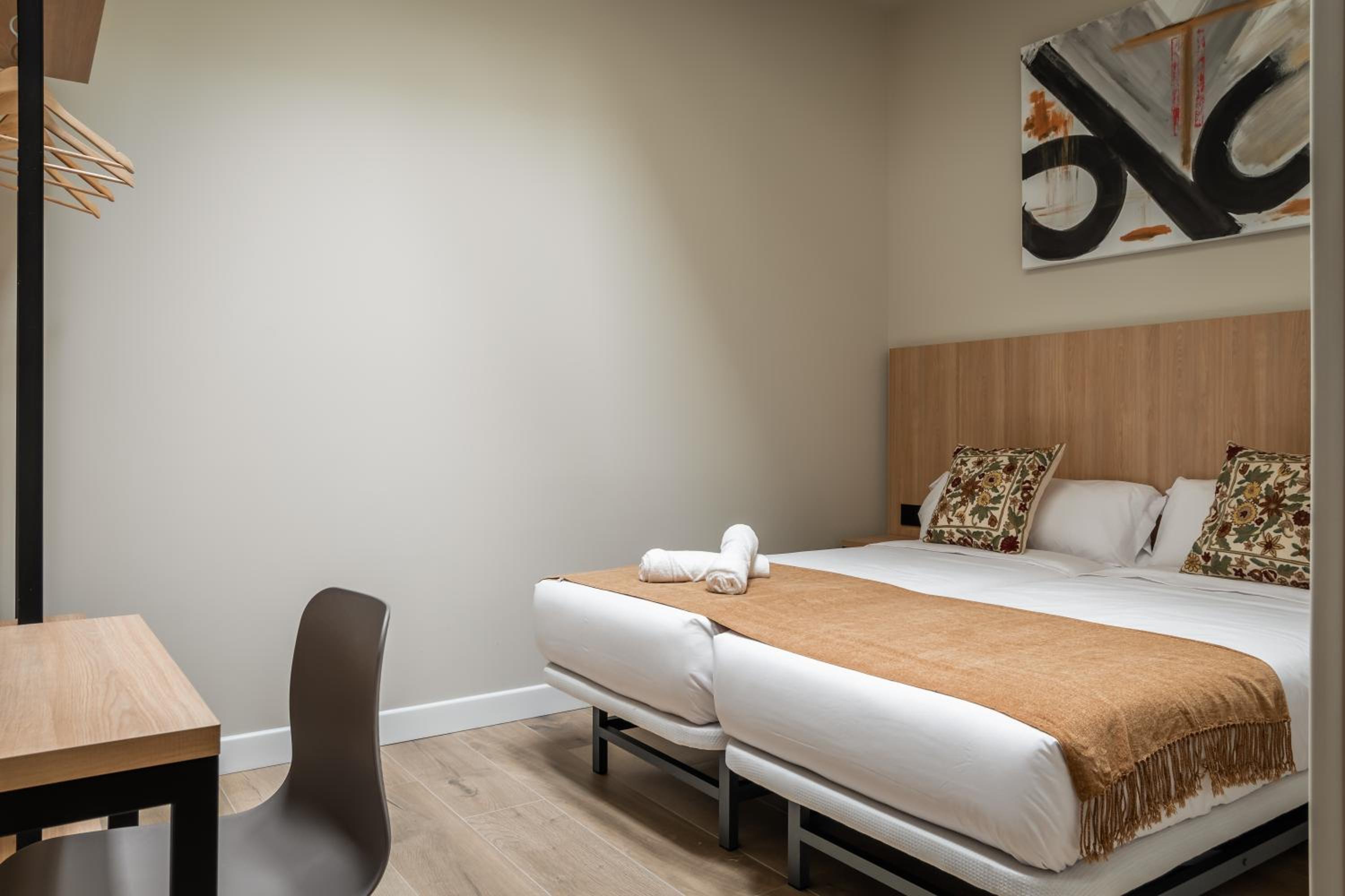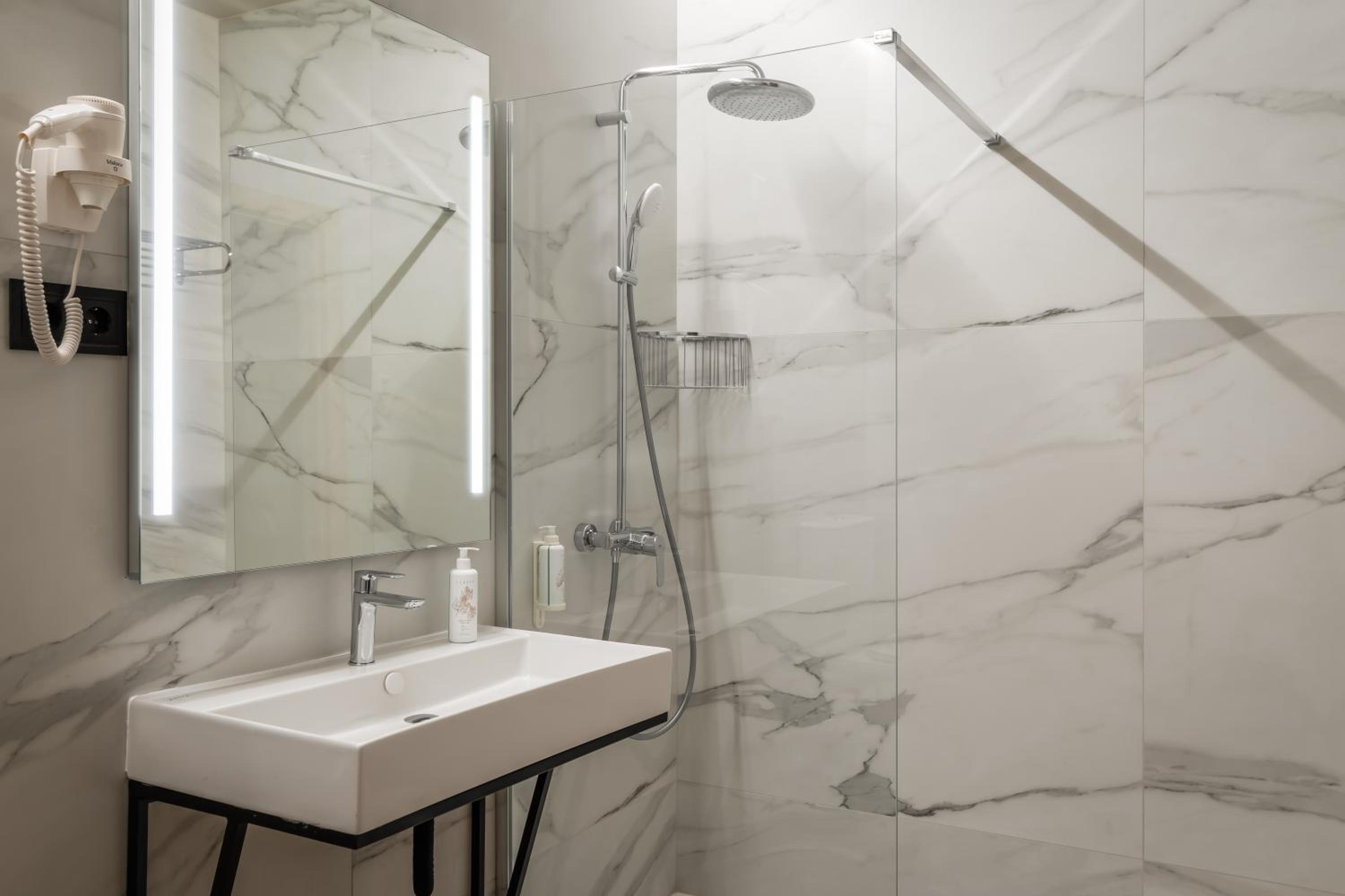 Large room all very new and clean. Complimentary wine and cakes in the reception. Luggage storage also very handy. Close to Metro station - very easy to and from the airport