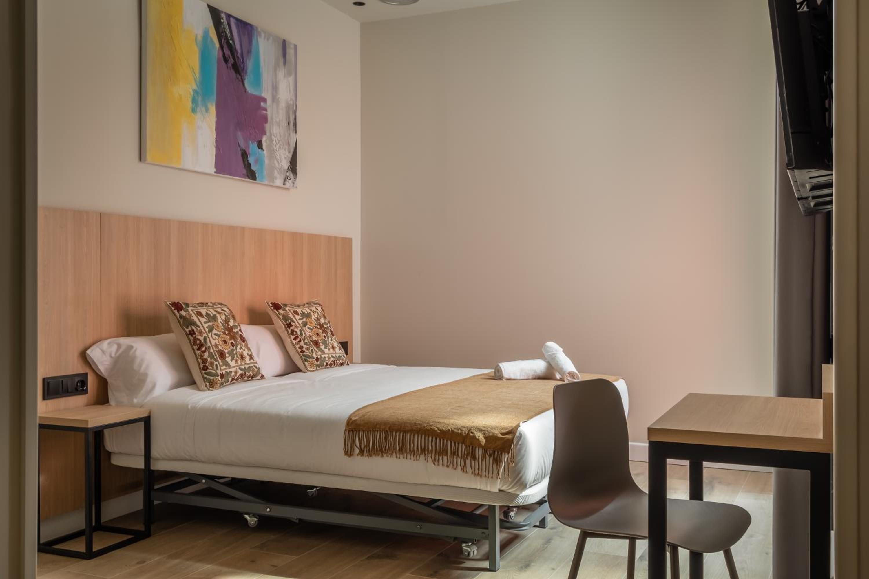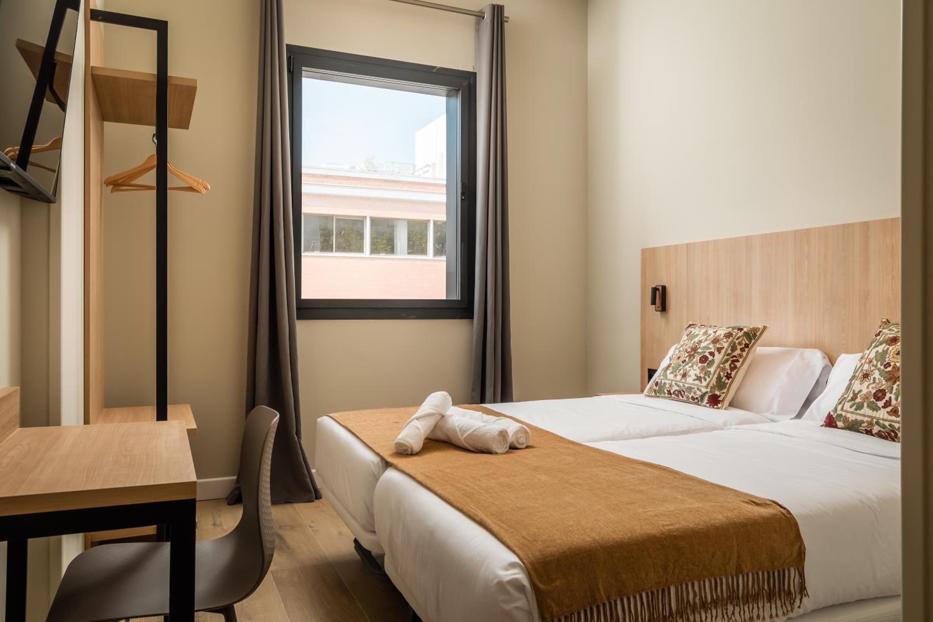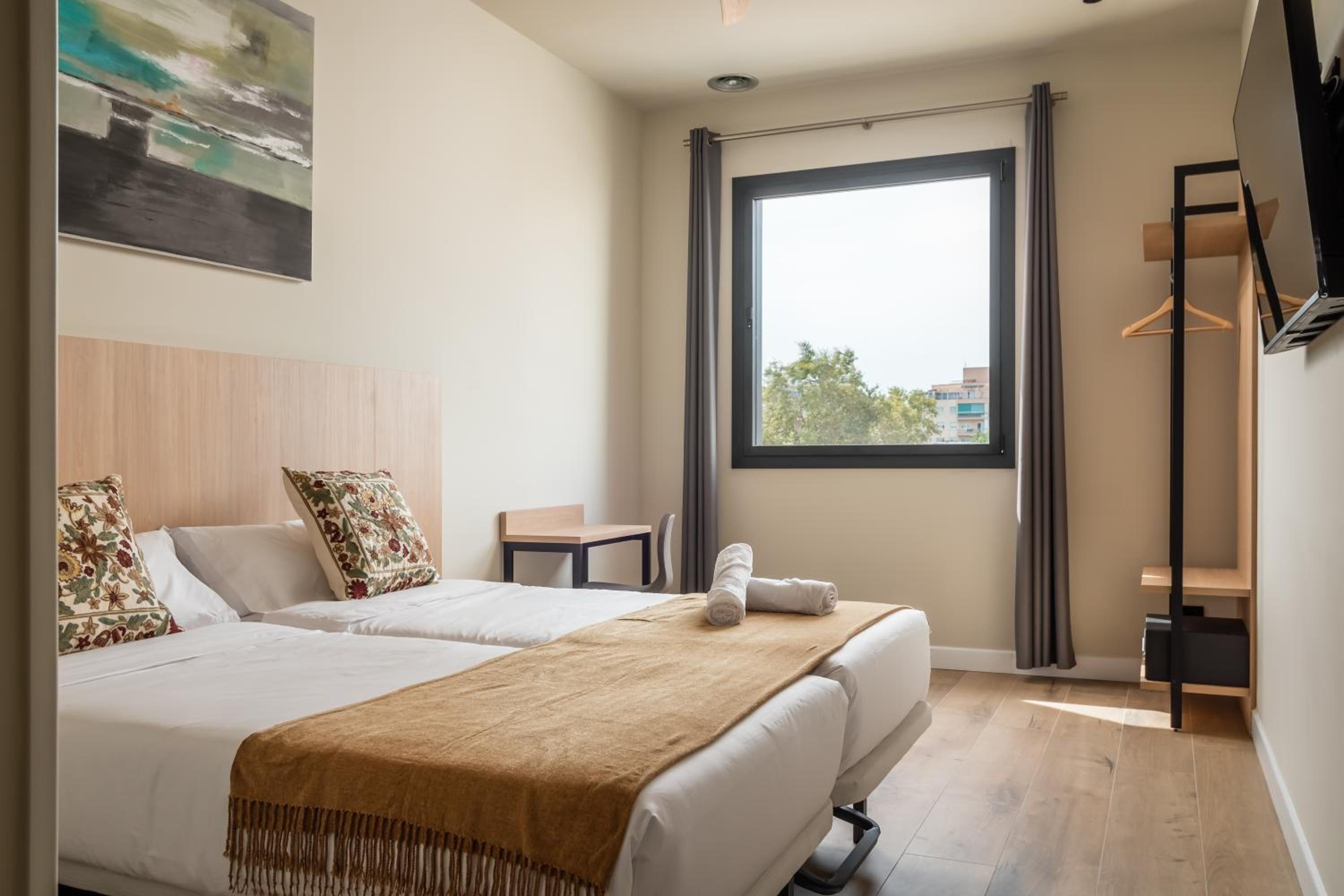 Very nice clean modern hotel. Great bedroom and bathroom. No restaurant (except for breakfast) but they offer complimentary coffee or wine in reception. Very help staff, speaking good English. Only about 3mins from Les Moreres Metro station.