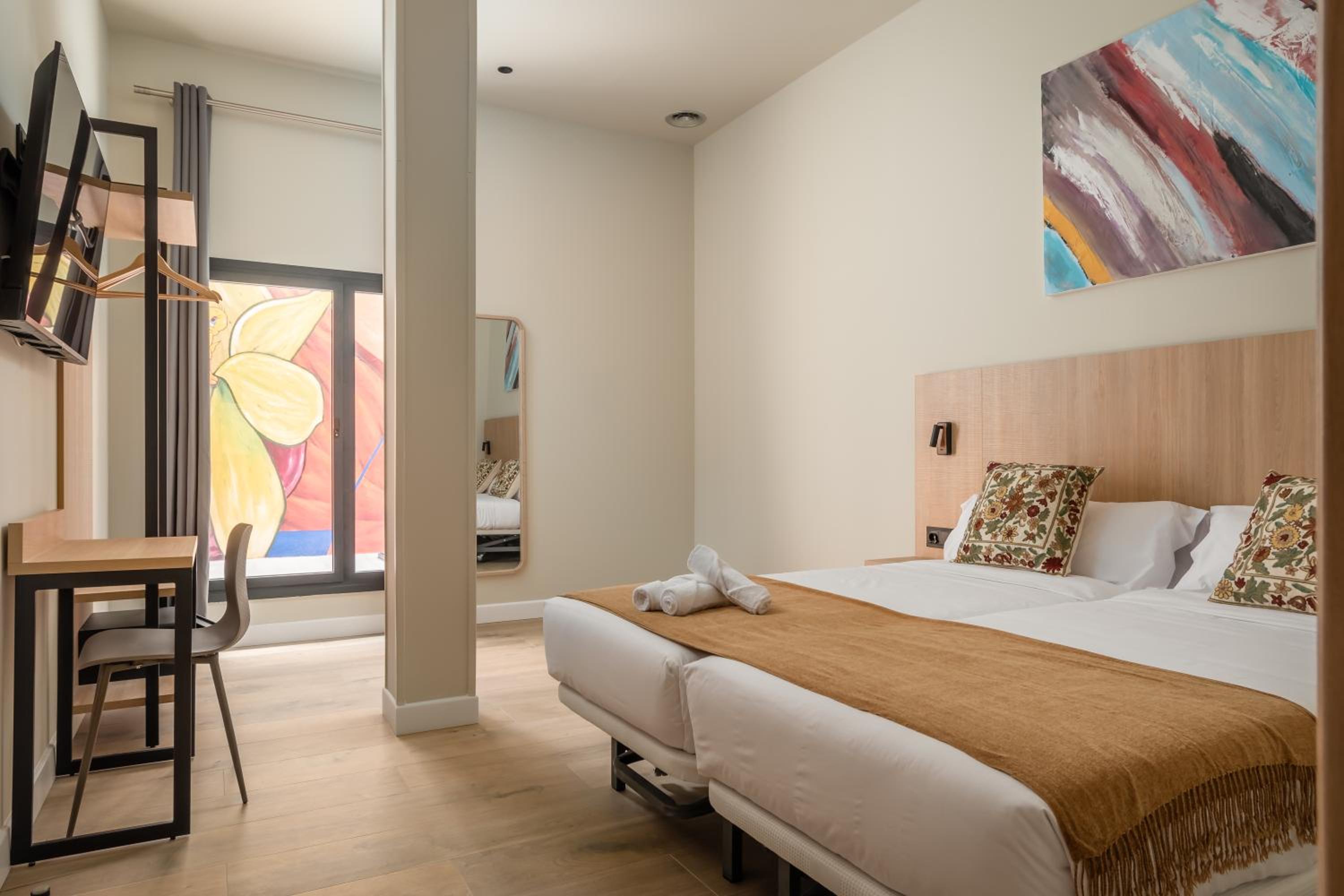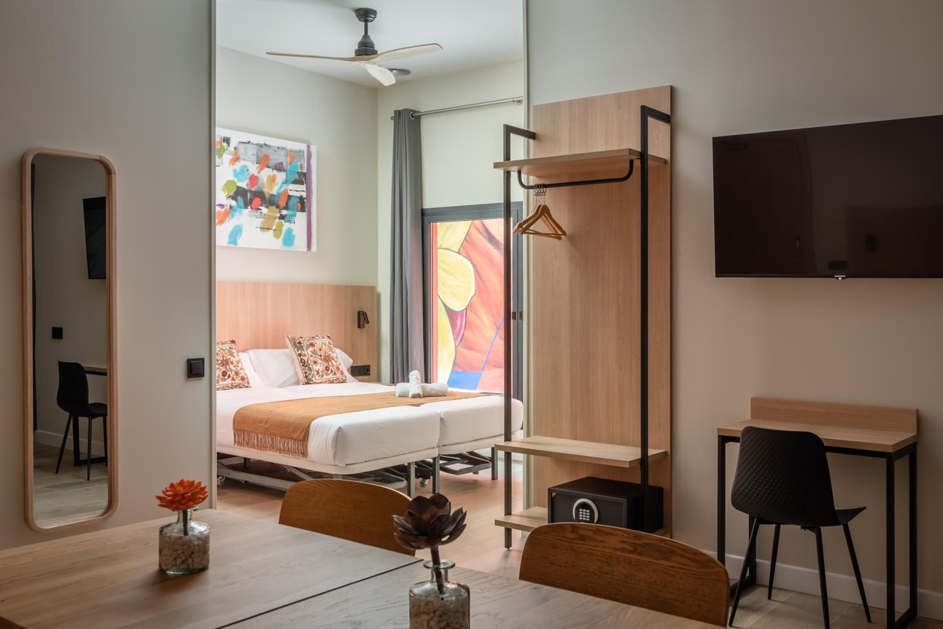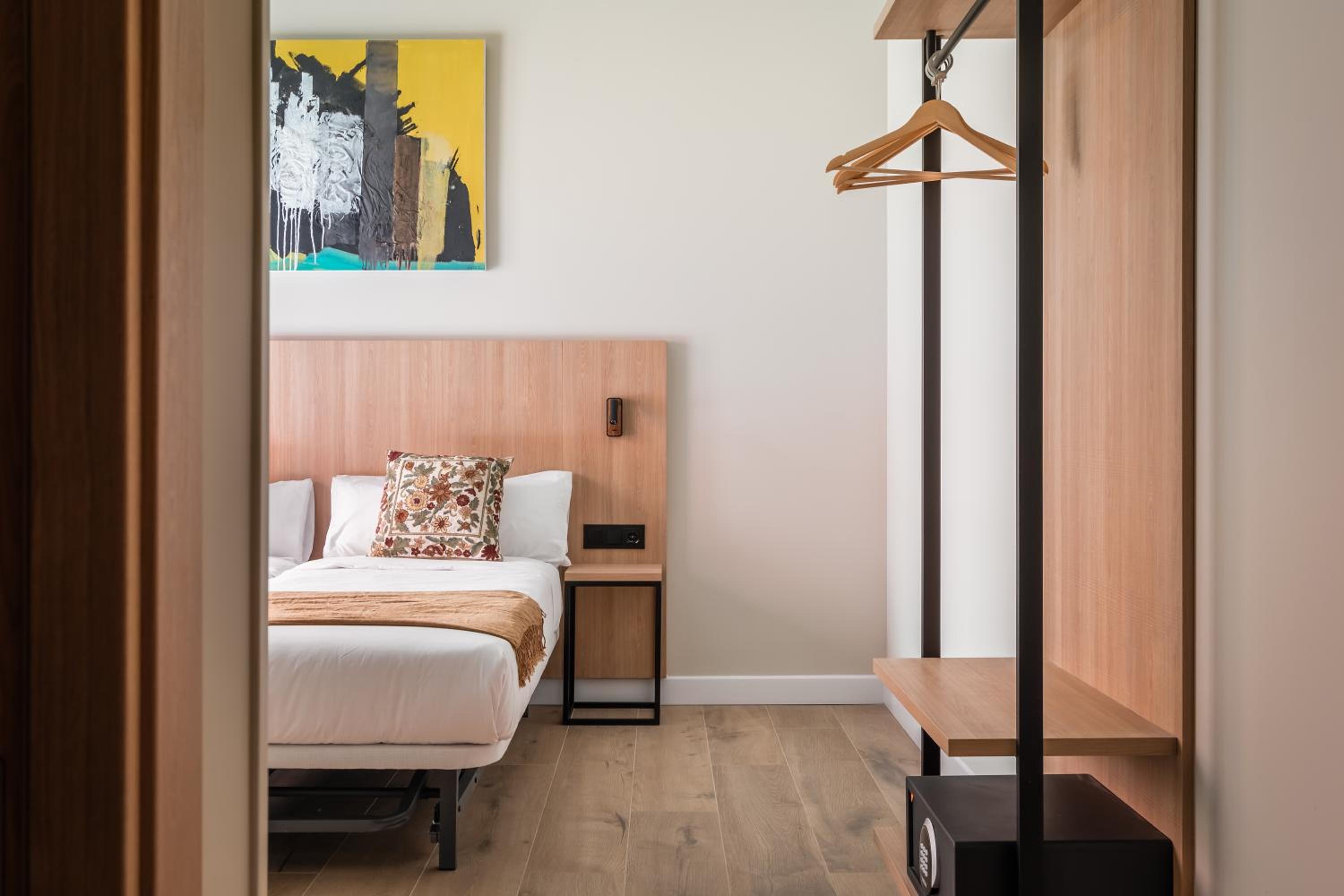 Very nice clean modern hotel. Great bedroom and bathroom. No restaurant (except for breakfast) but they offer complimentary coffee or wine in reception. Very help staff, speaking good English. Only about 3mins from Les Moreres Metro station.