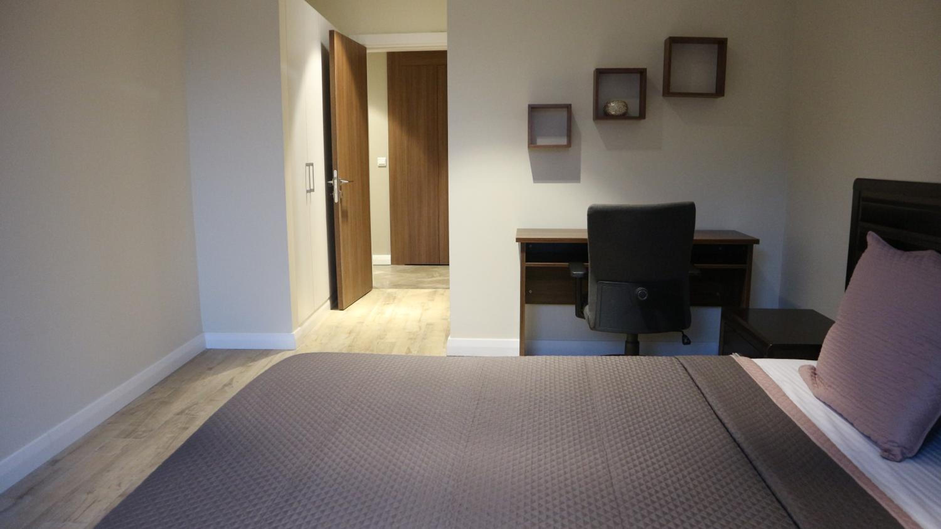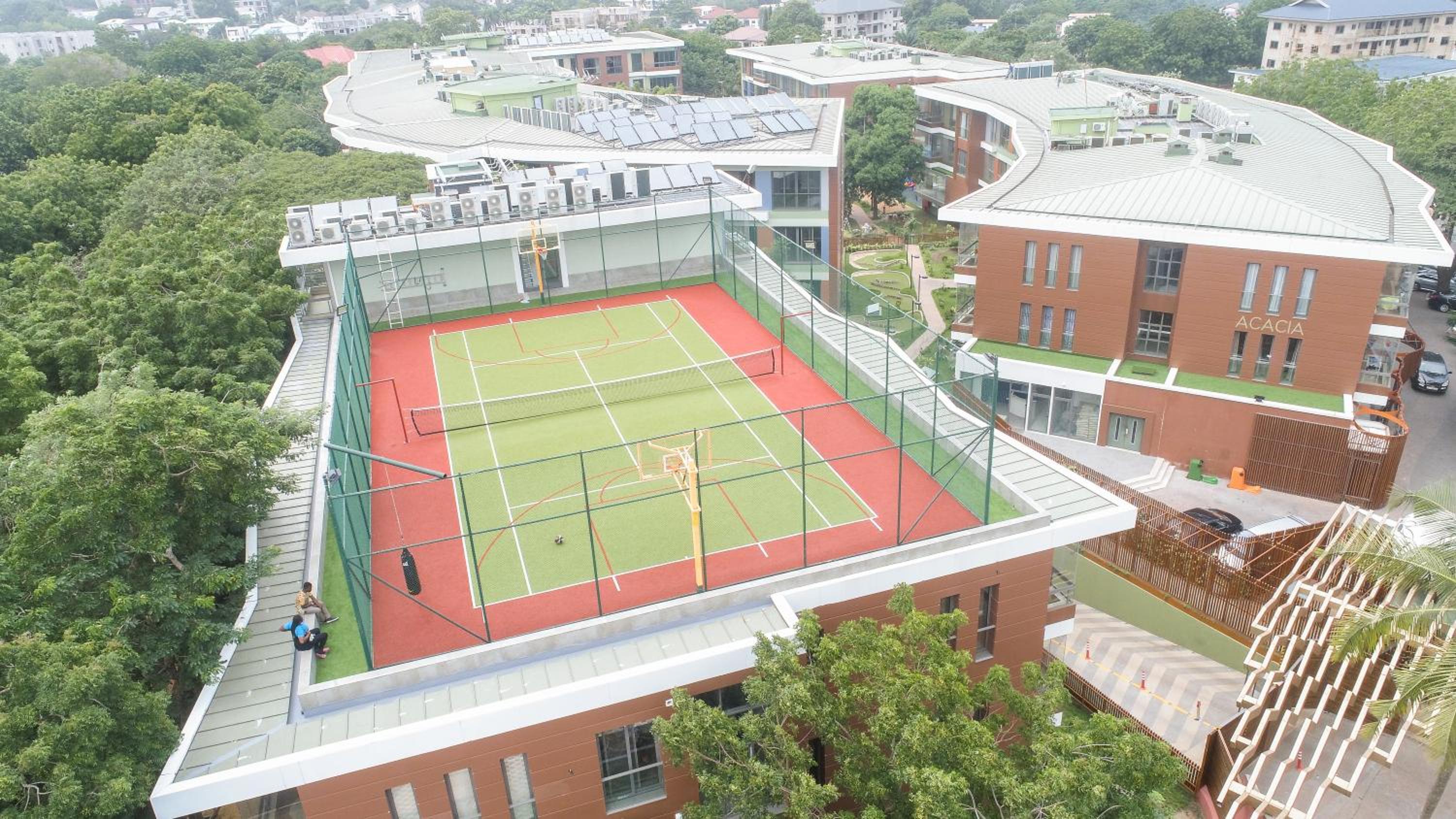 Two of us were visiting Accra on a business trip. The apartment was large and well designed, we each had plenty of privacy, our own bathrooms and the kitchen had everything we needed. There was a lovely little grocery store on the ground level. For breakfast, we were given a fairly large menu to choose from. The staff and clearly the restaurant went out of their way to make sure every extra request was met. The food was delivered to our room every morning. The portions were large enough for two and the food was great.