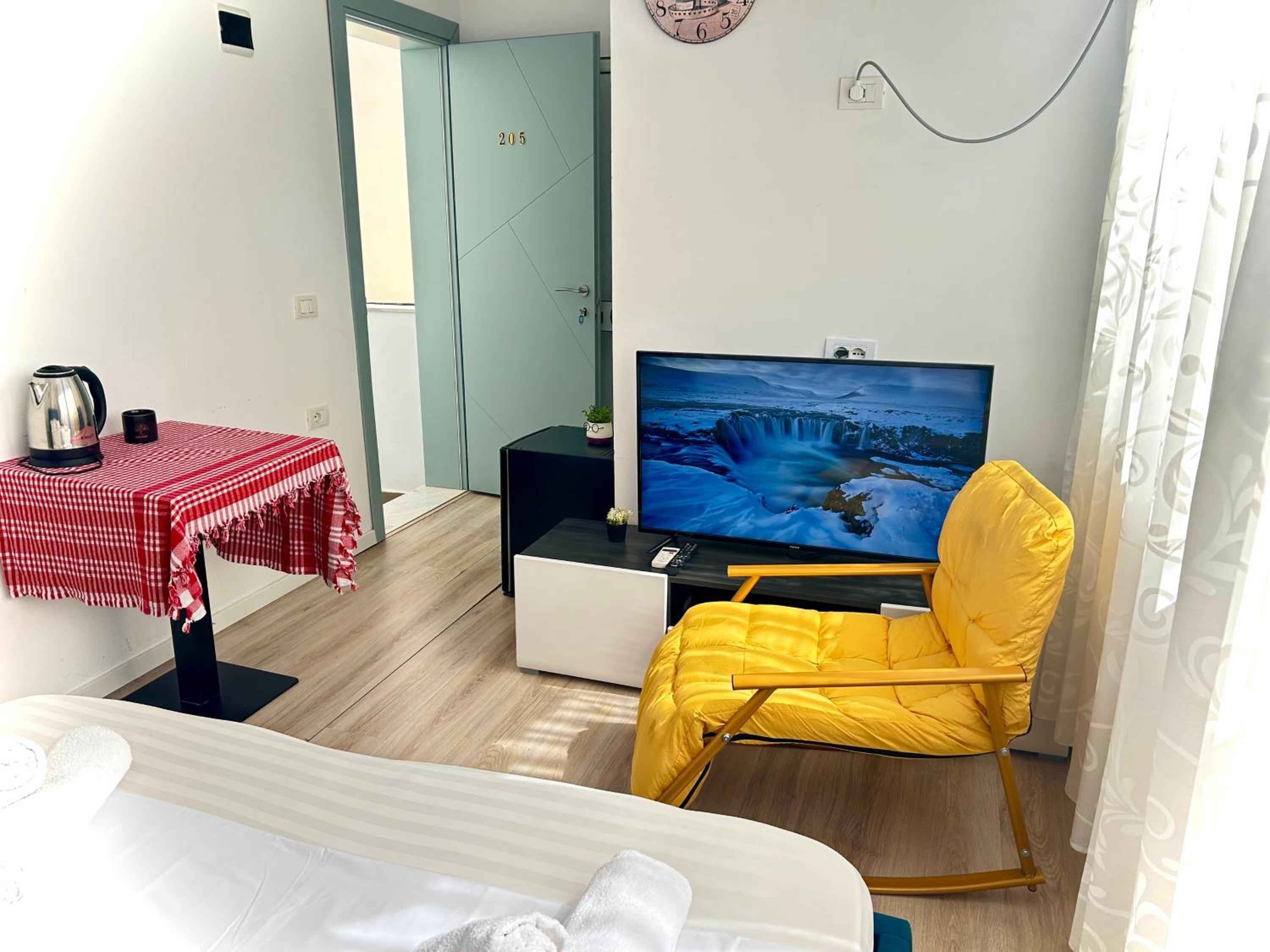 The rooms at Budget Retreat Tirana & Studios are equipped with modern amenities including air conditioning, flat-screen TVs, and private bathrooms. Some rooms even feature a terrace for guests to relax and enjoy the views.