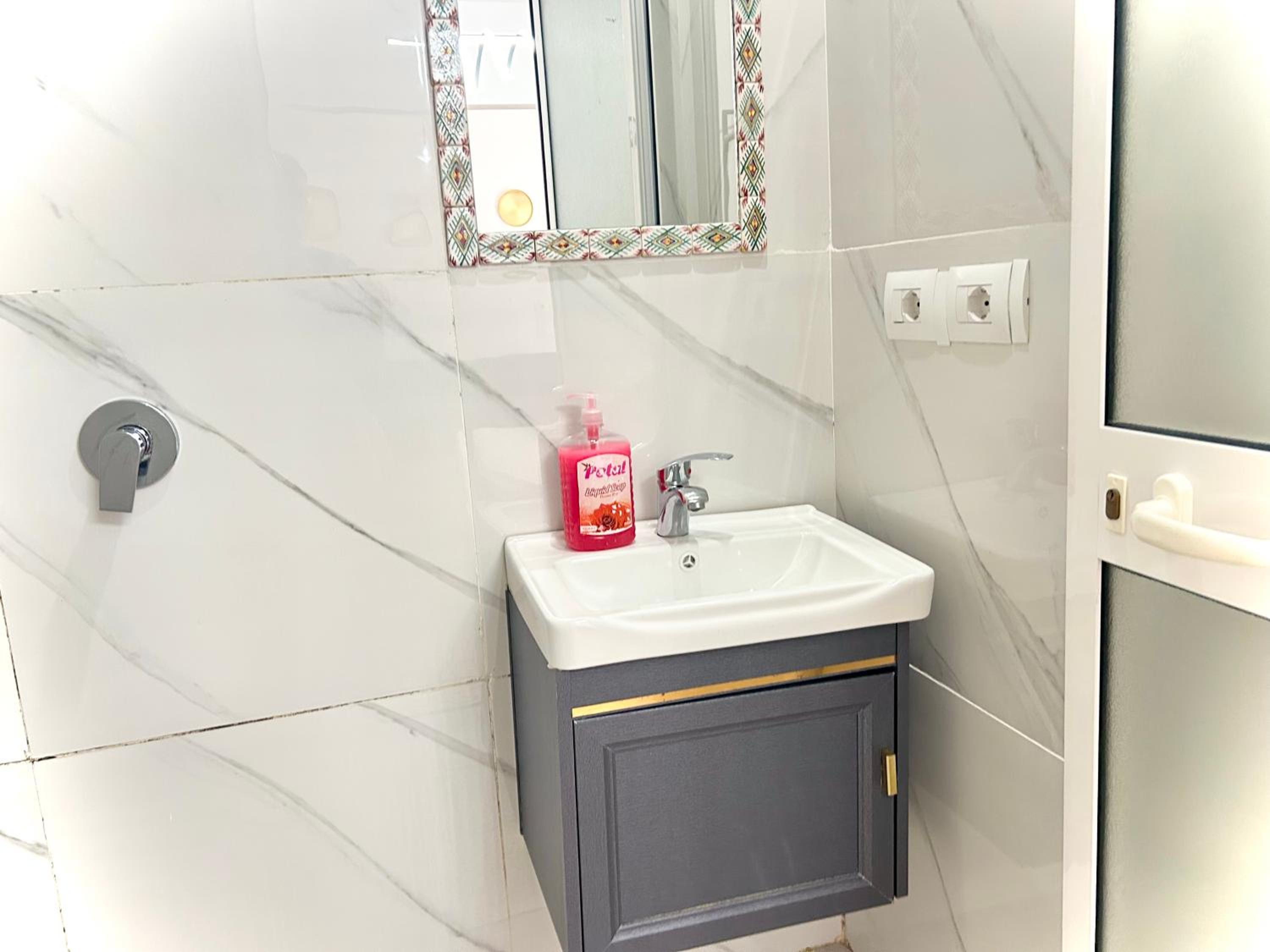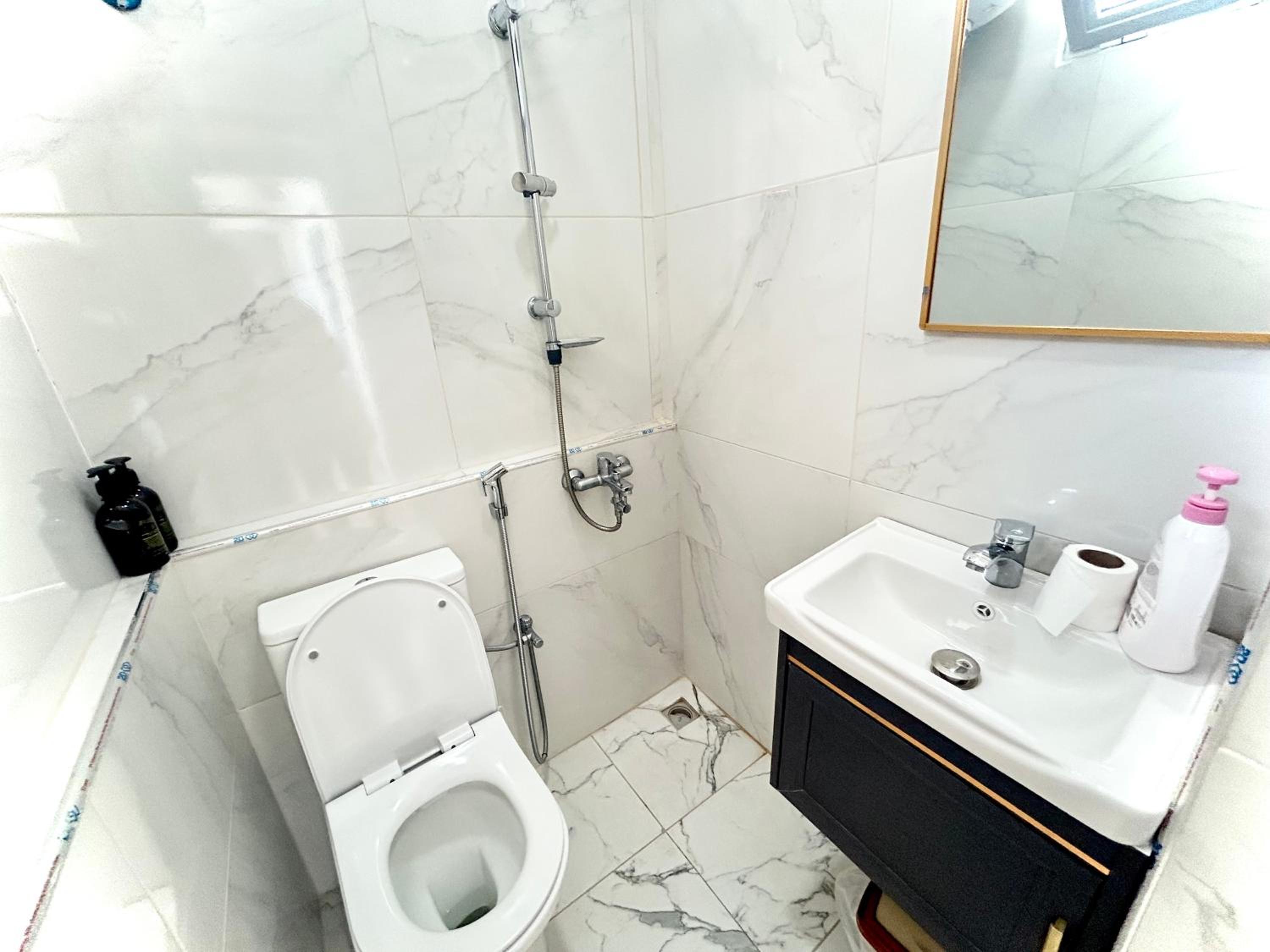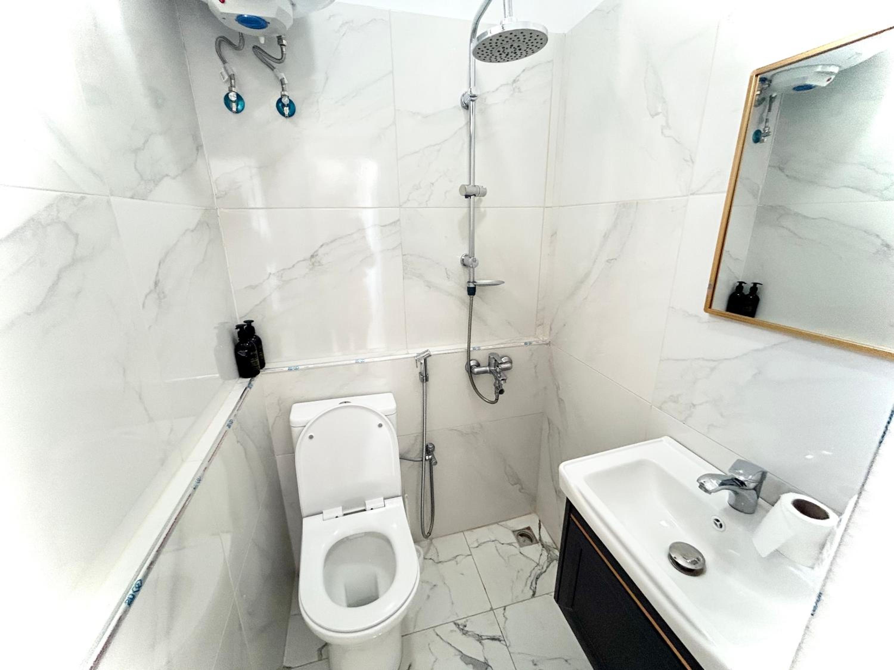 The bathroom is very basic and the hand shower in the corner without any glass requires careful use