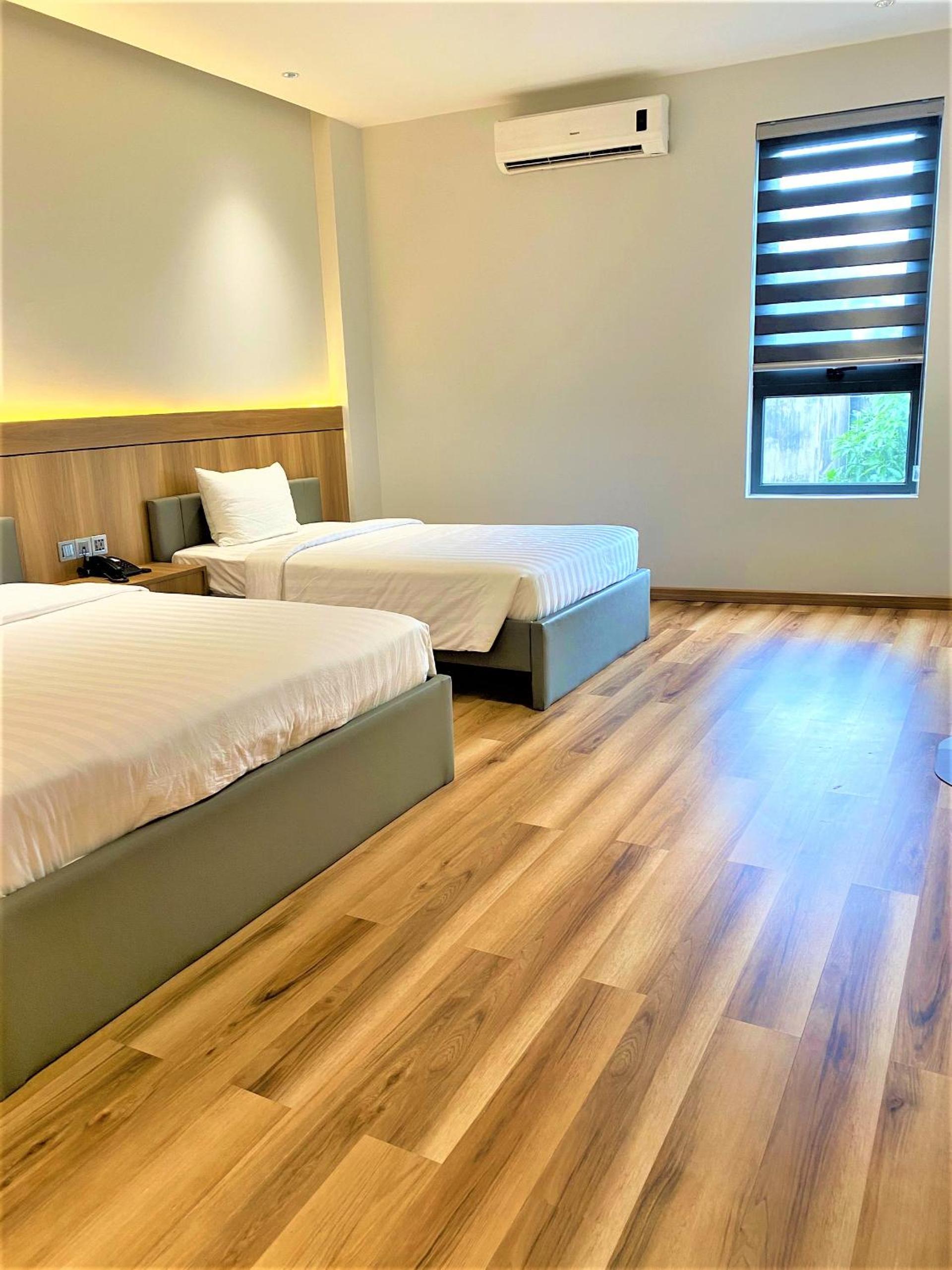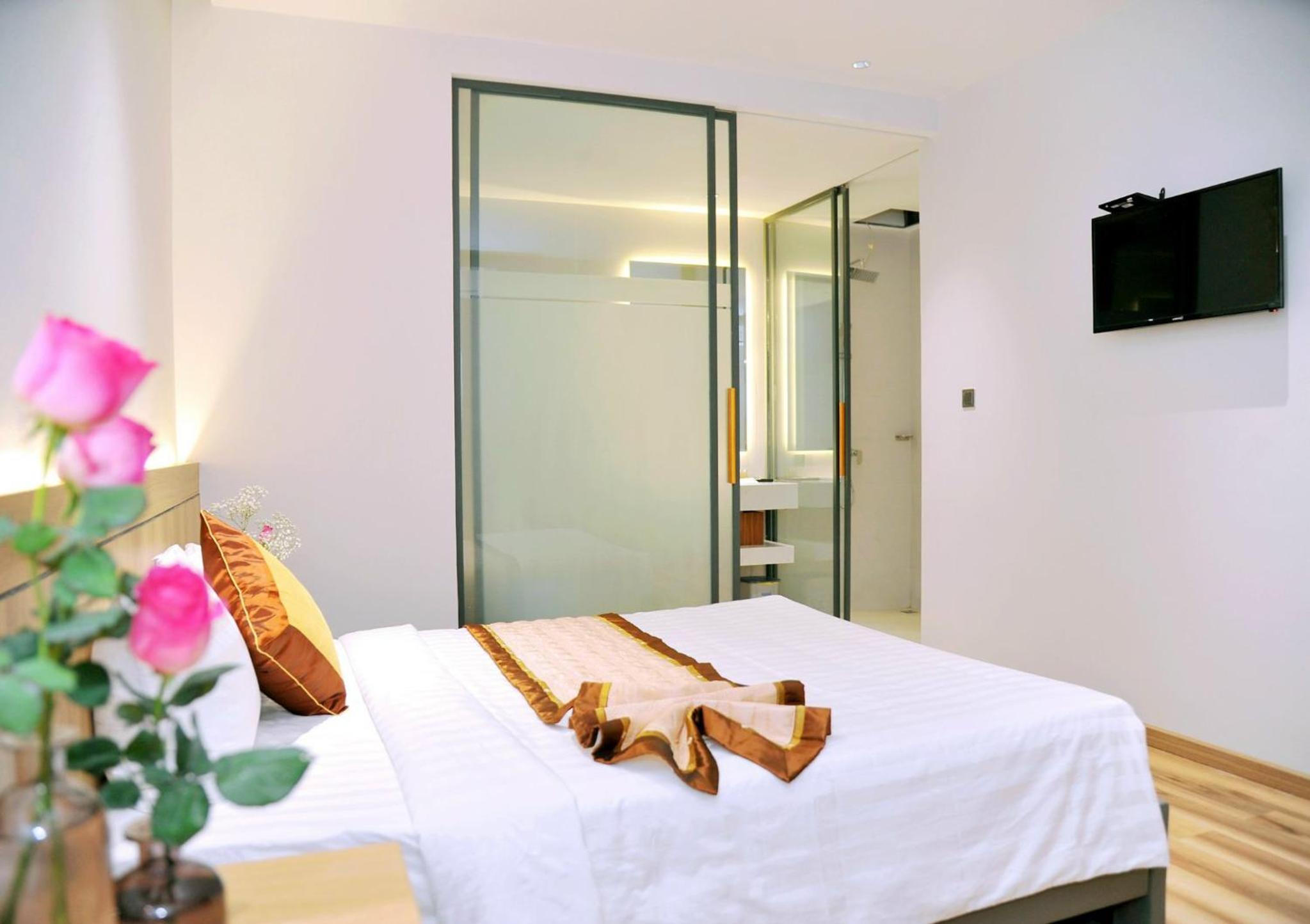 giá phòng khá rẻ so với chất lượng. sạch sẽ rộng rãi toilet tiện nghi, bạn nhân viên thân thiện hỗ trợ nhiệt tình. Mình xin check out trễ tính phí hợp lý. khách sạn trong trung tâm gần chỗ ăn uống nhưng k gần biển lắm. phòng giá rẻ nên nội thất chắc k dc bền lắm, miếng dán ván gỗ bị bong lên nhiều chỗ rồi.