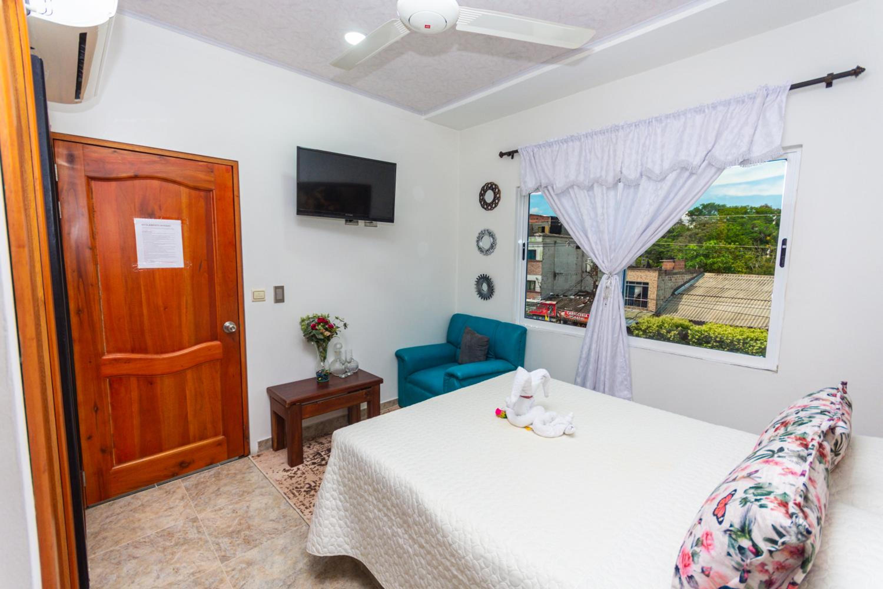 El servicio del personal fue pésimo. Solicitar algo era pedir más que un favor. La actitud no es agradable por parte de algunas personas y el mal genio caracteriza a dos de las mujeres. Pagué cuarto con cama doble y la primera noche nos dieron cuarto con dos camas sencillas con el compromiso de que al siguiente día nos darían la habitación con cama doble. Al siguiente día nos cambiaron la habitación donde había cama semidoble y una sencilla. Las habitaciones no tienen privacidad auditiva y la primera noche escuchamos a una pareja teniendo relaciones sexuales. Los televisores de ambas habitaciones en las que estuvimos o no tenían control remoto o el control no servía.