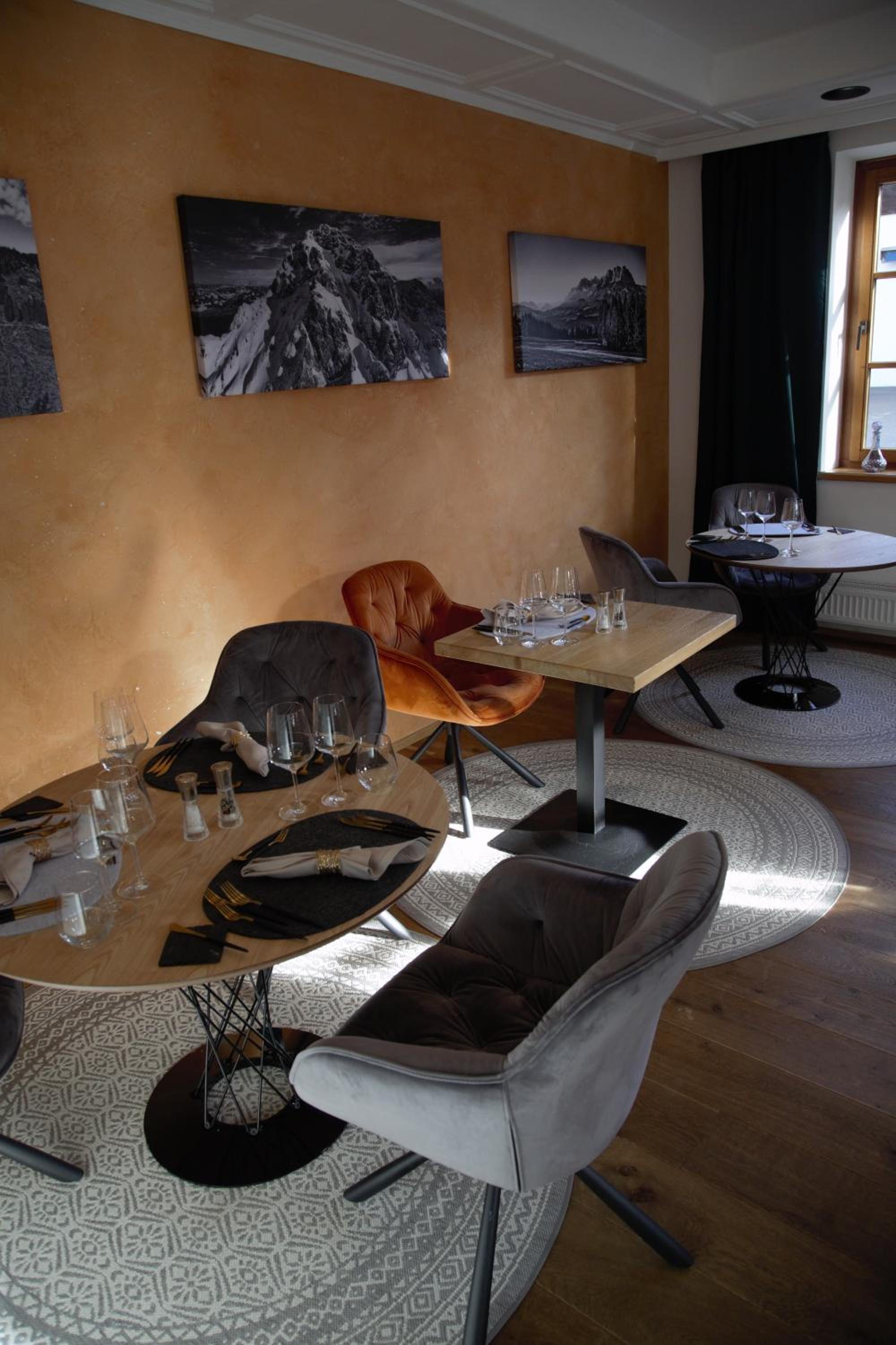 The Hotel is quality. Plenty of parking and motorcycle parking up front. Breakfast is excellent. Hotel location is perfect and only 5-minute walk to the main center of town. You do not need a car once you park your car since everything is a 5 minute walk. The gondola up the mountain is also 5 minutes away. The building is of high-quality with nice furnishings and a wonderful staff.