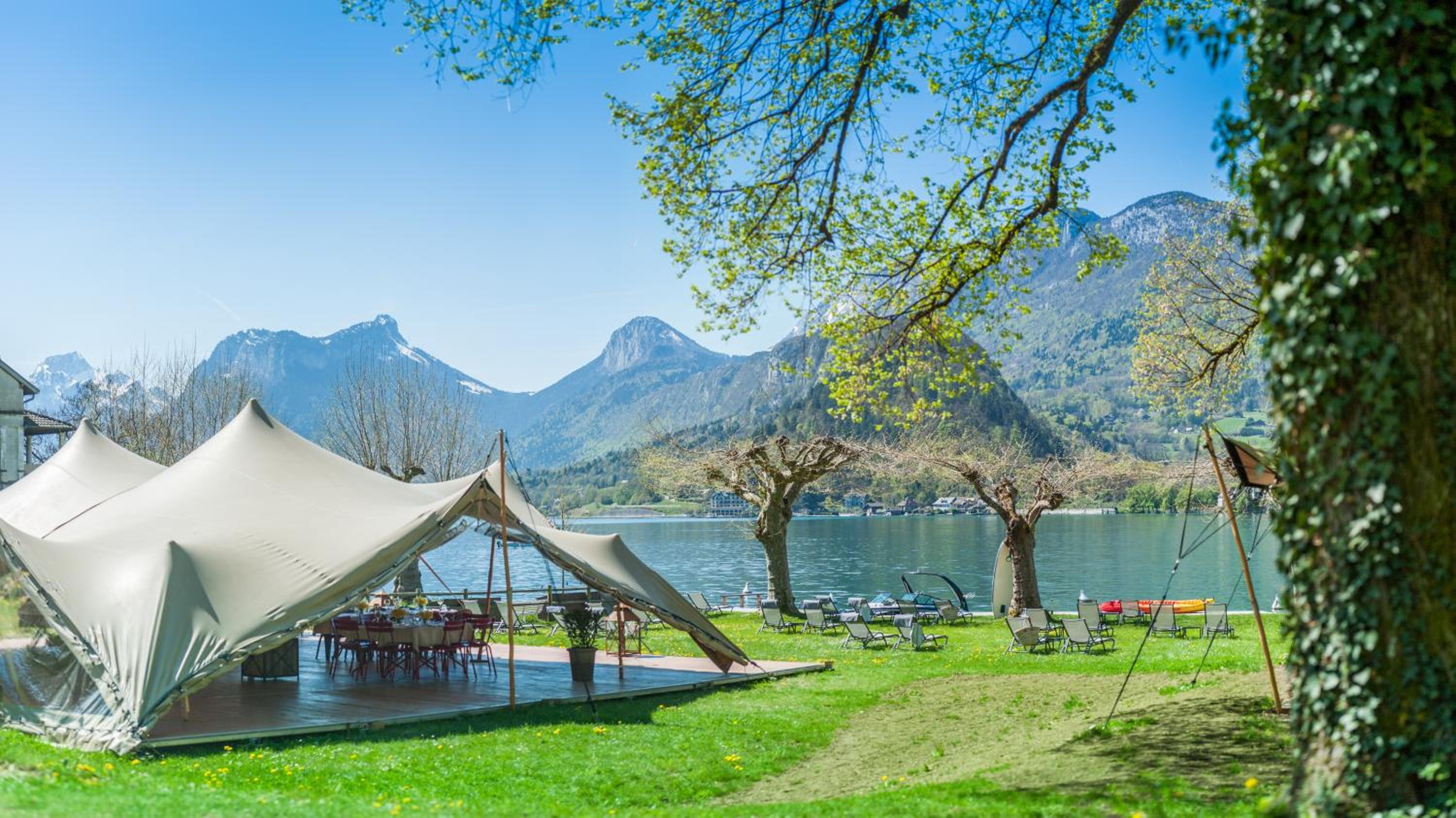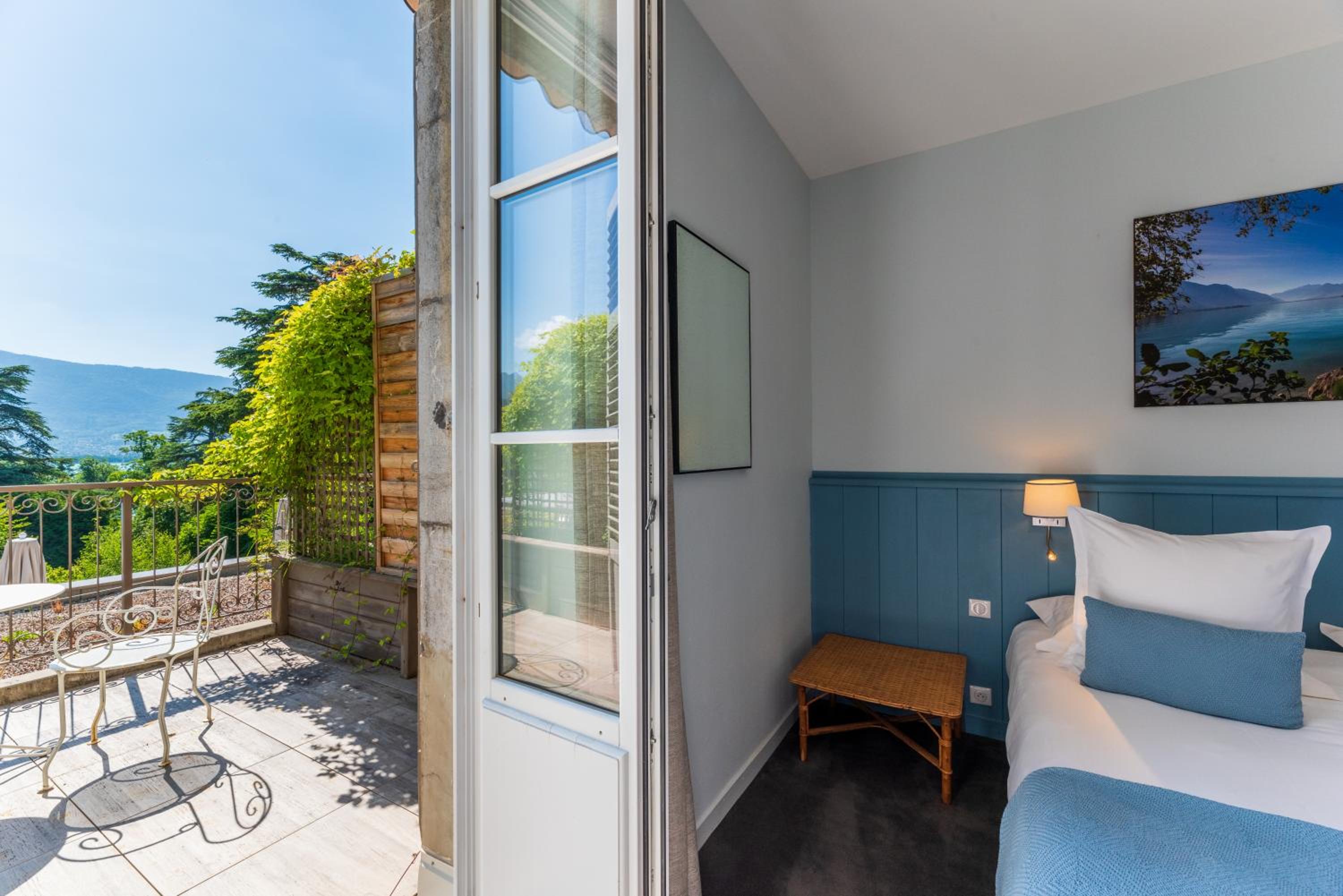 Indulge in breathtaking views of the mountains, park, and Lake Annecy from our modern rooms. Each room features a flat-screen TV, private bathroom, and some even offer a balcony or terrace to soak in the beauty of the surroundings.